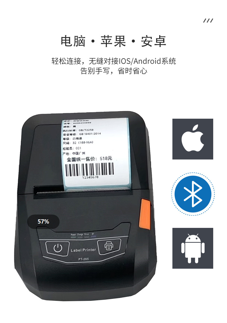 58MM 휴대용 라벨 기계 대형 종이 창고 용량 간단한 빠른 고화질 인쇄 사무실 홈 휴대용 배송 마크 인쇄스토어 가기