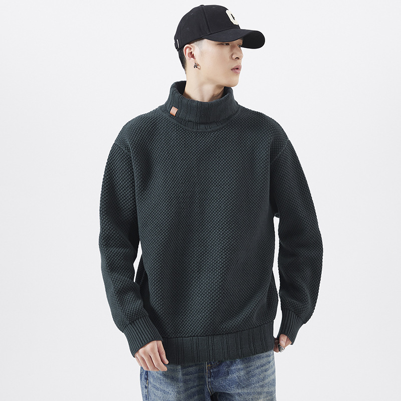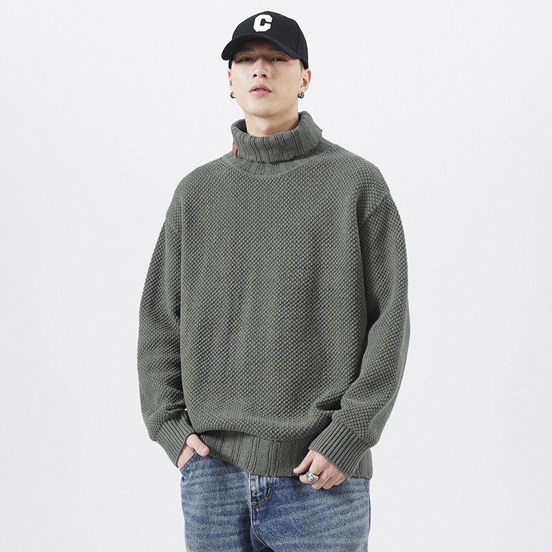 미국 스타일의 트렌디 한 브랜드 터틀넥 스웨터 남성용 가을 및 겨울 느슨한 캐주얼 니트 스웨터 솔리드 컬러 레트로 긴 소매 스웨터
