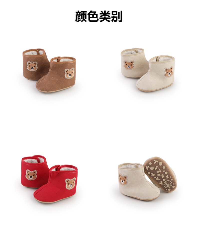 겨울 0-1 세 소년과 소녀 아기 유아 신발 아기 신발 귀여운 만화 따뜻한 기모 아기 신발