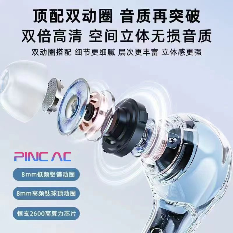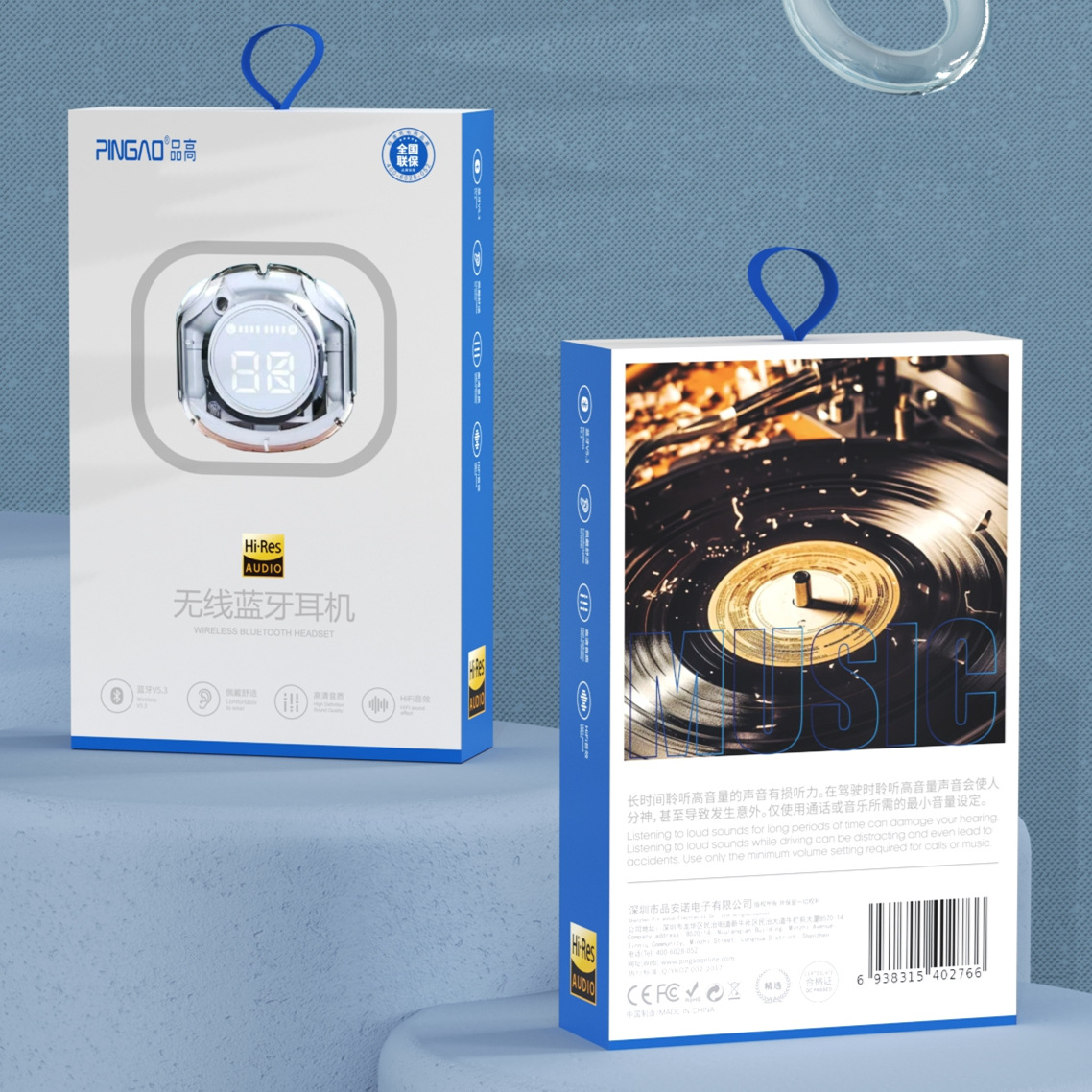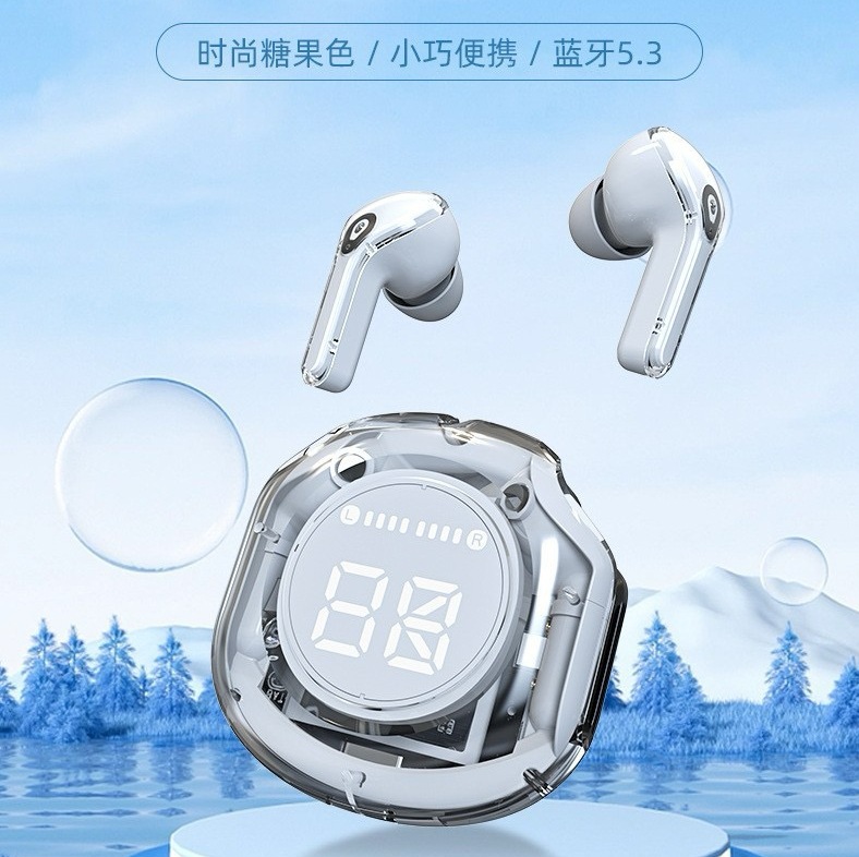 폭발성 무선 블루투스 헤드셋 투명 디지털 디스플레이 창조적 인 TWS 스포츠 게임 바이노럴 블루투스 헤드셋