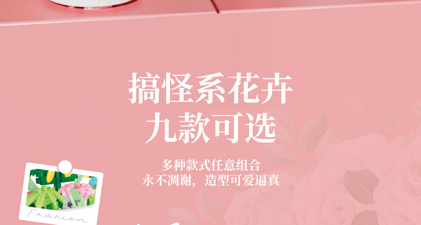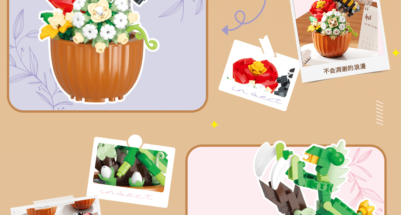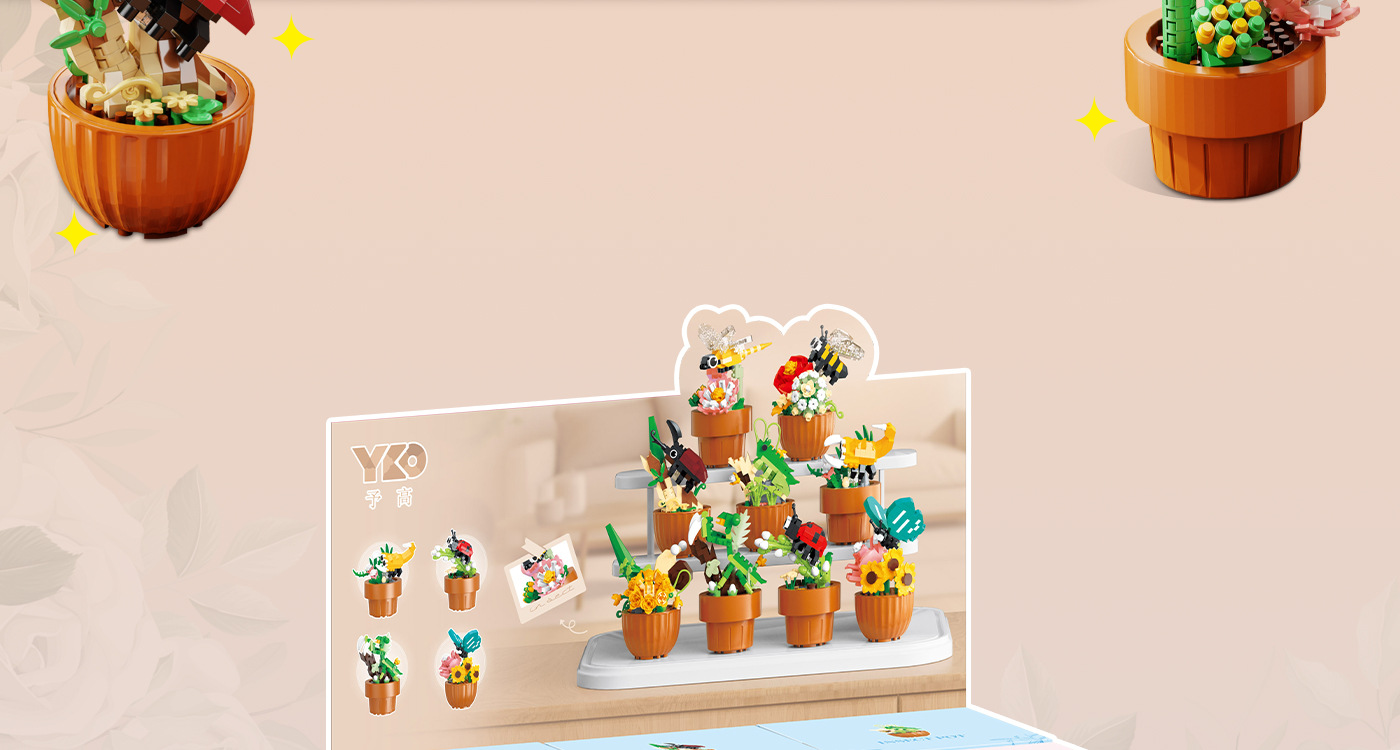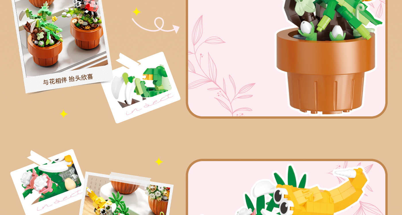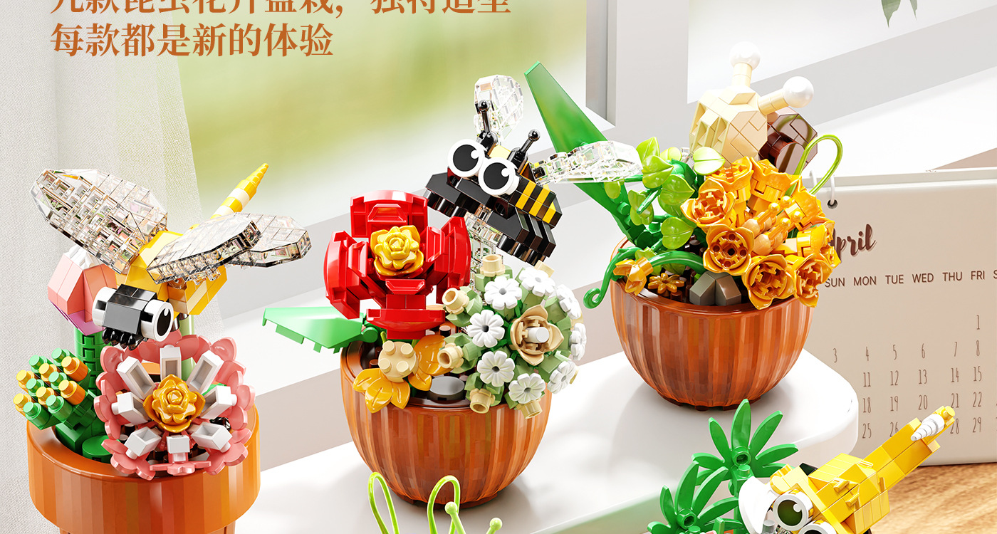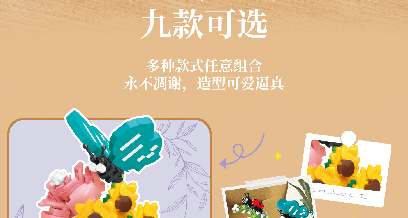 【货号名称】:予高搞怪花+昆虫盆栽积木