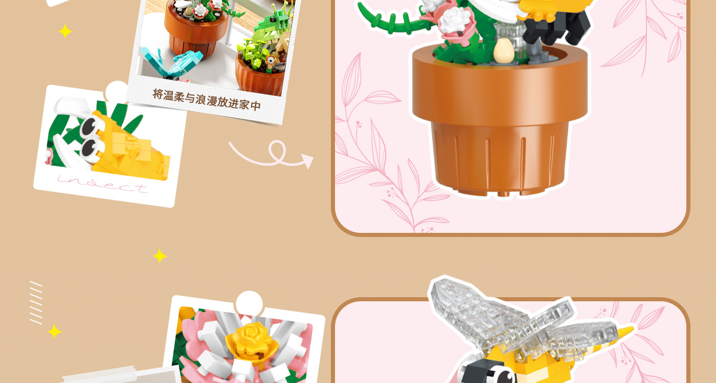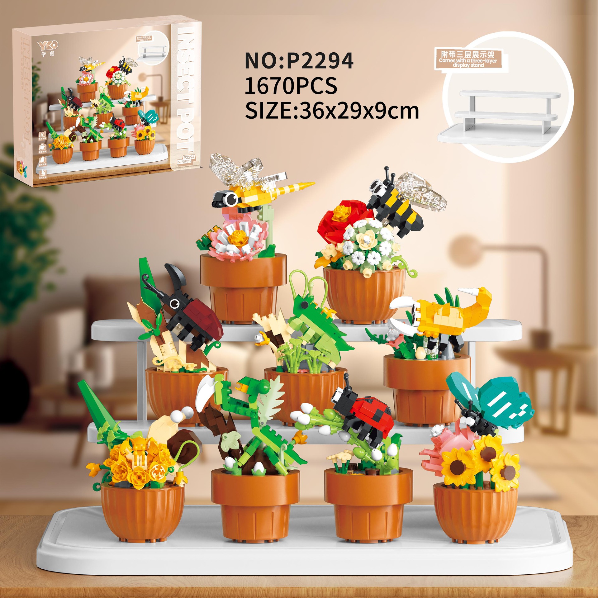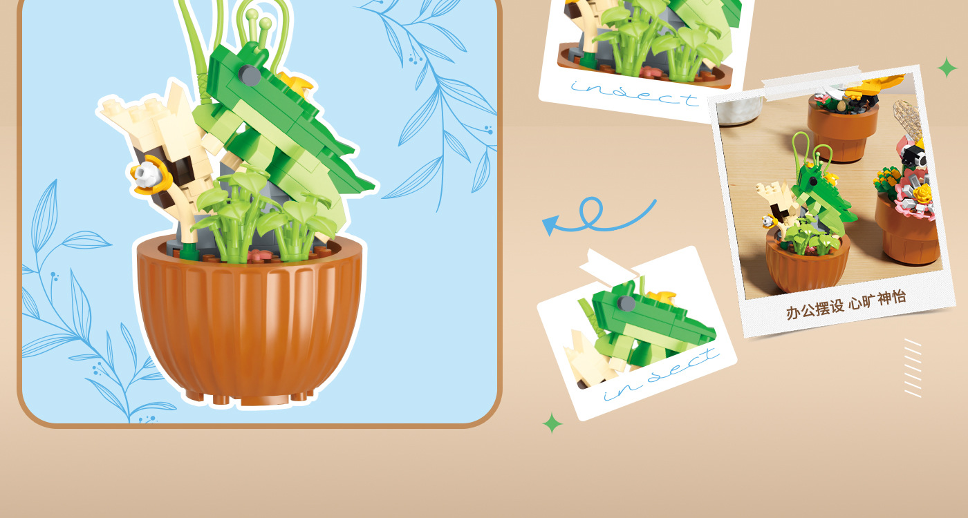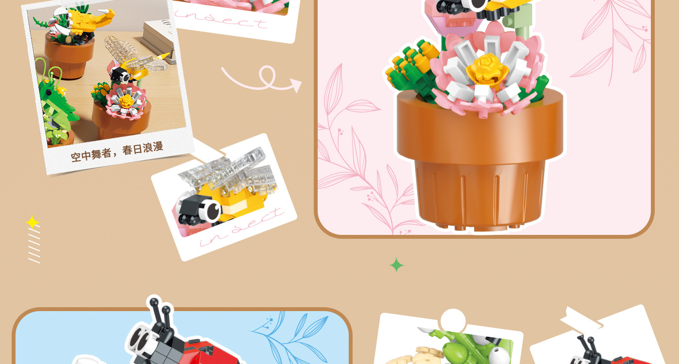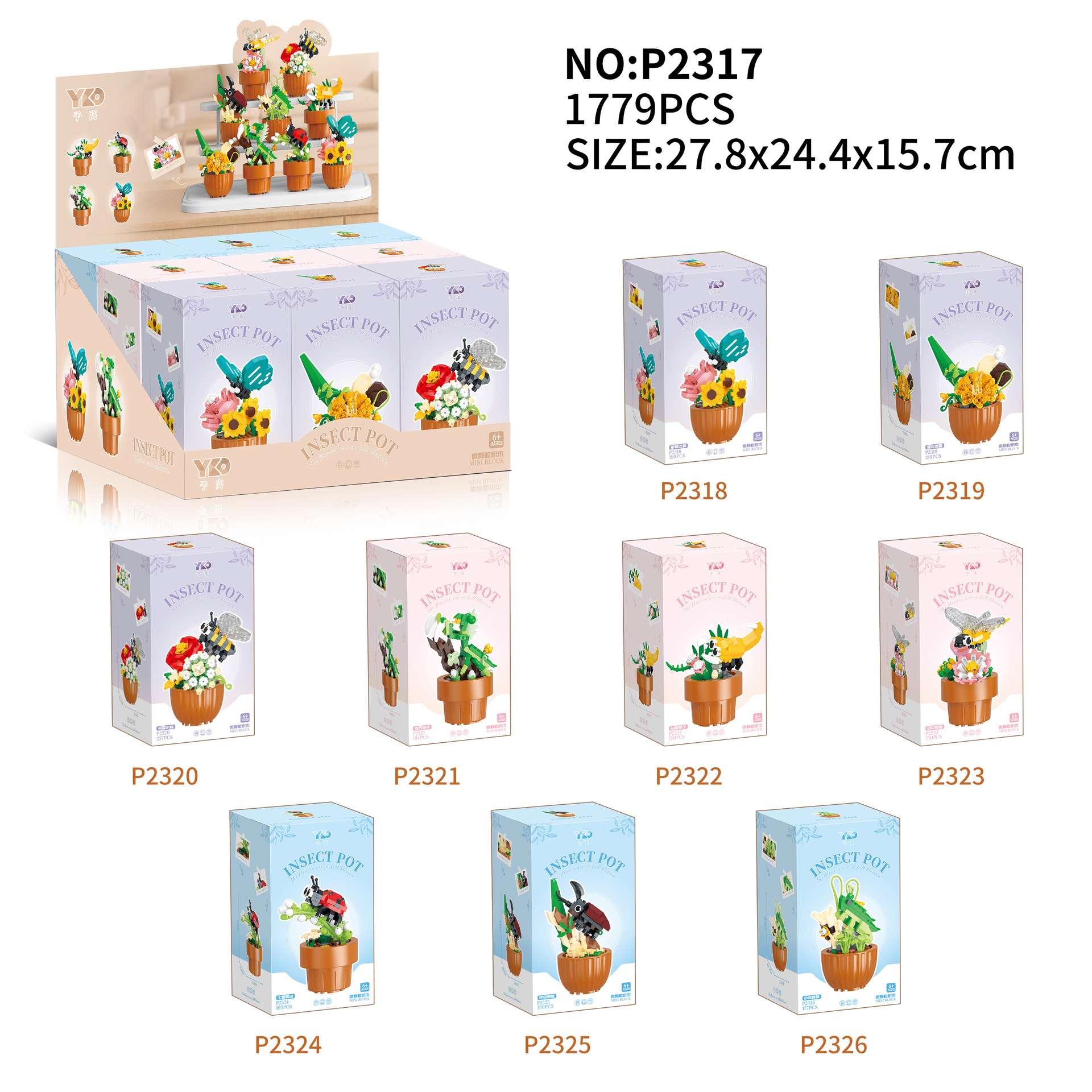 【货号名称】:予高搞怪花+昆虫盆栽积木