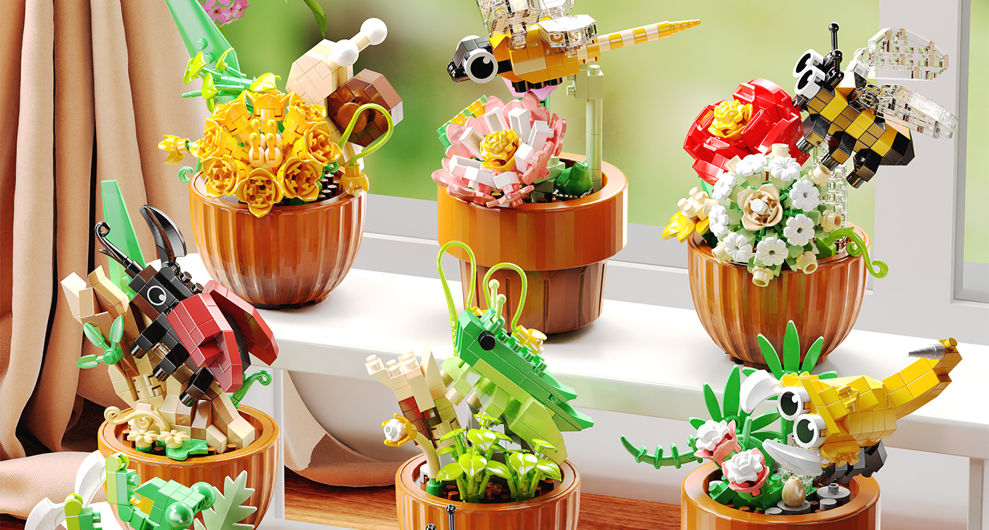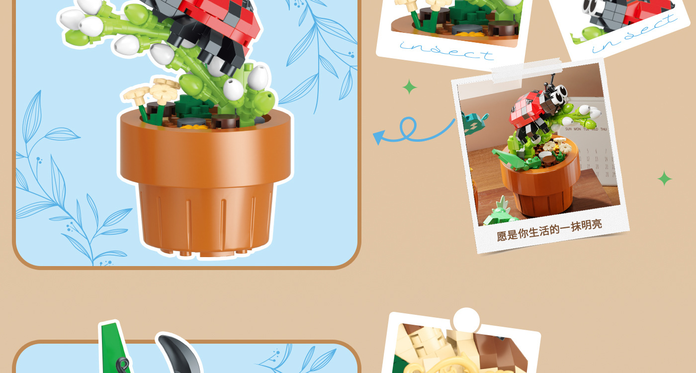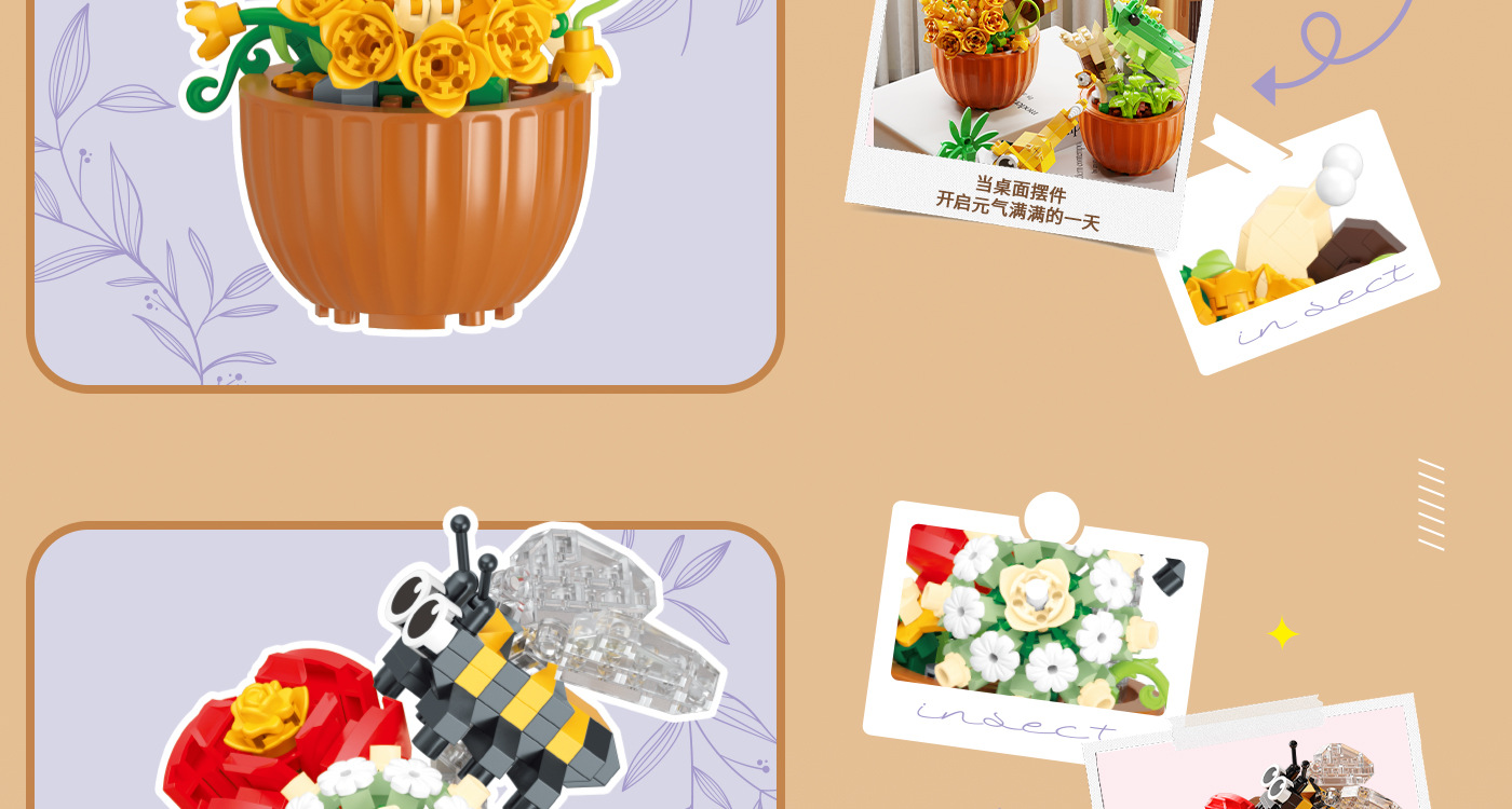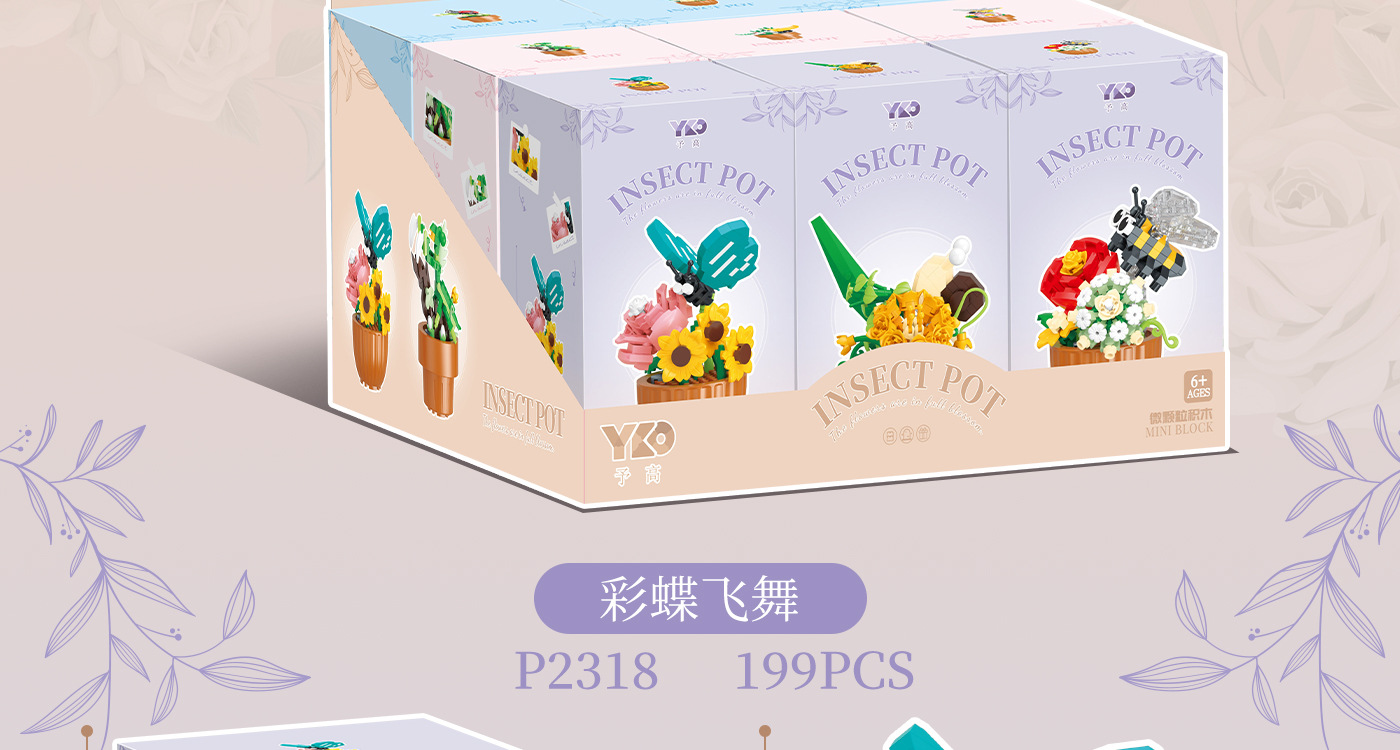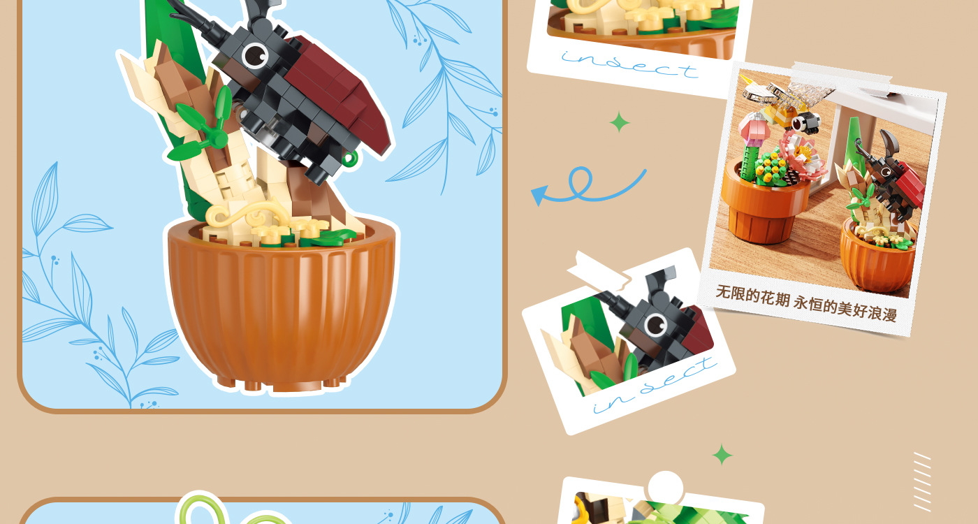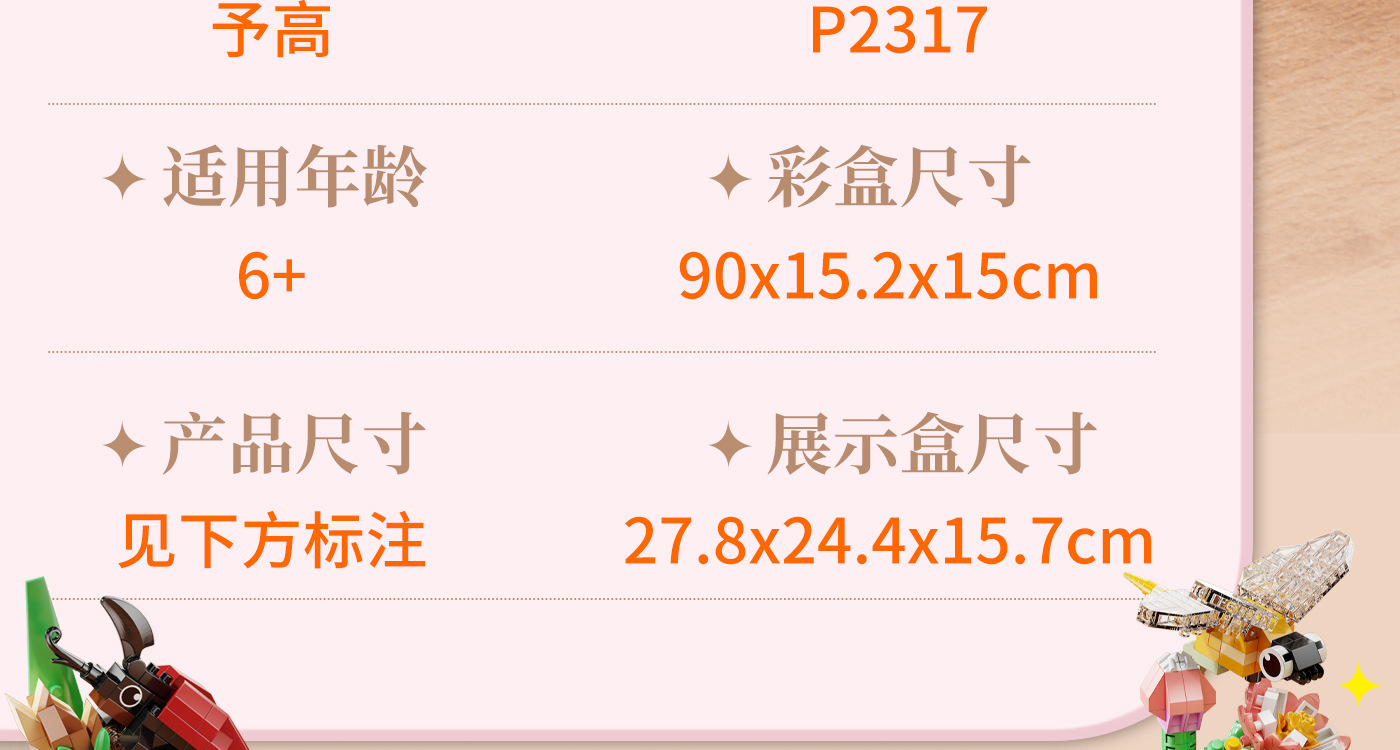 【货号名称】:予高搞怪花+昆虫盆栽积木