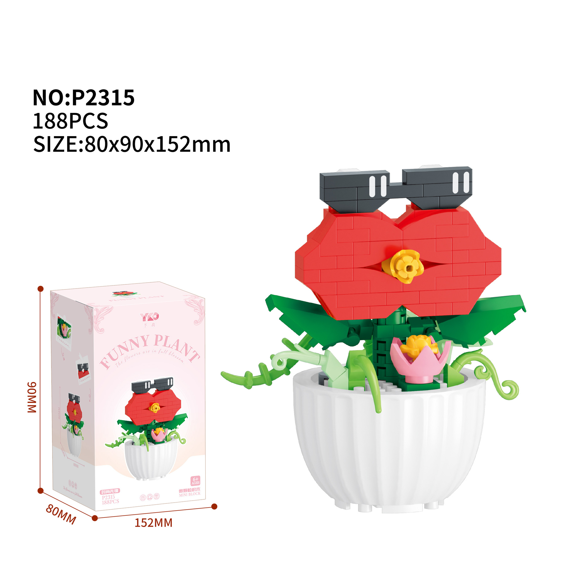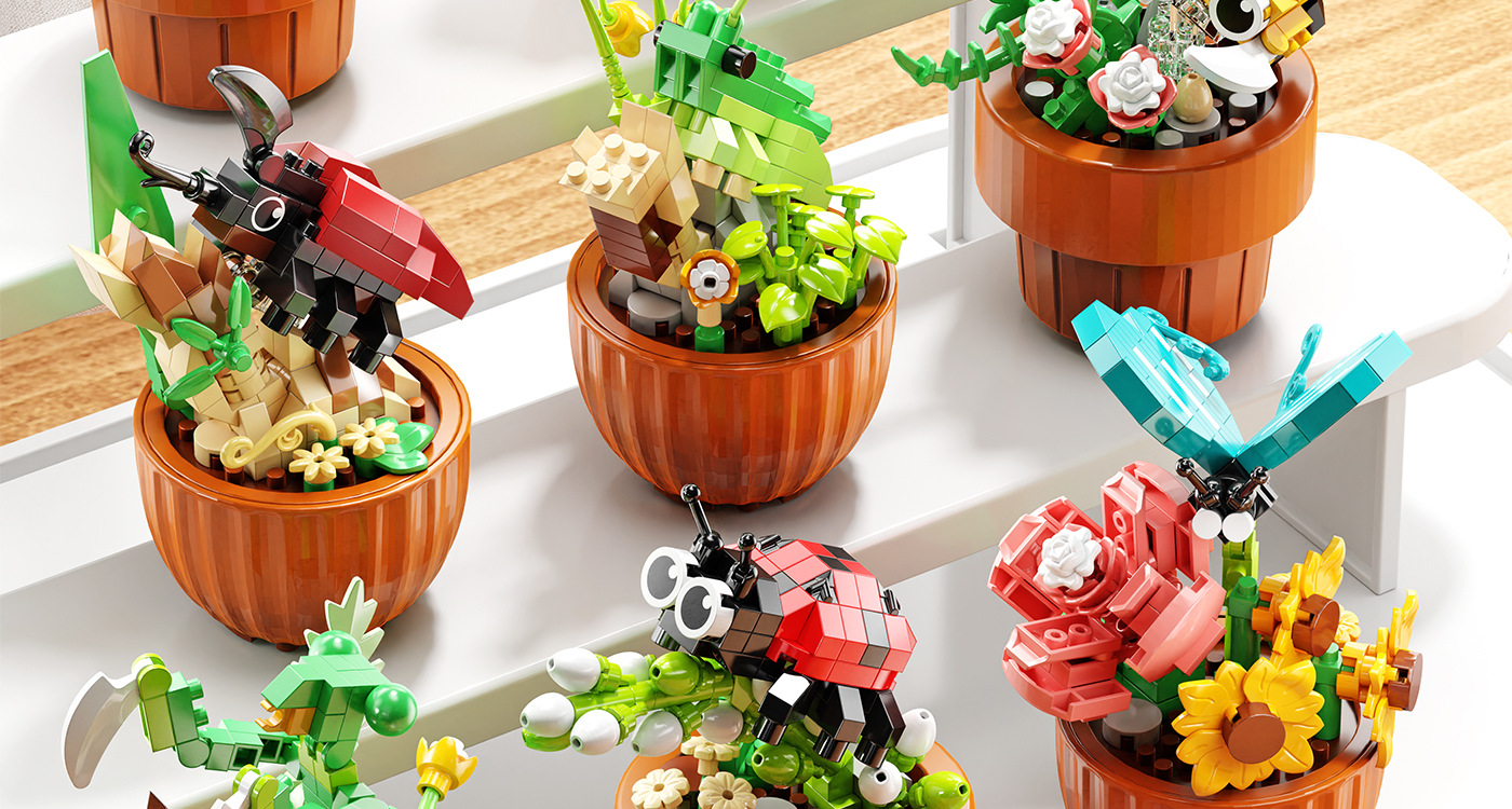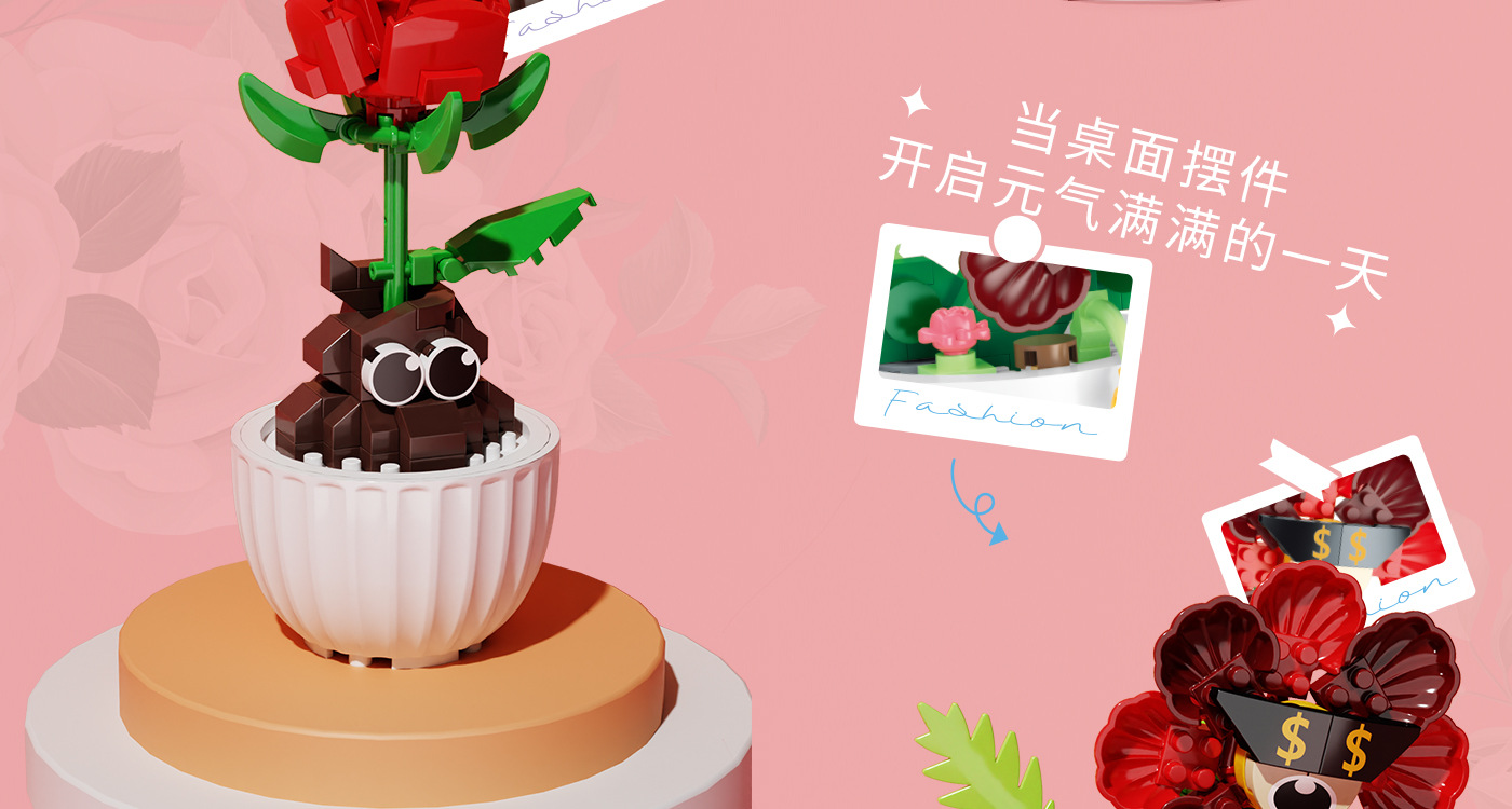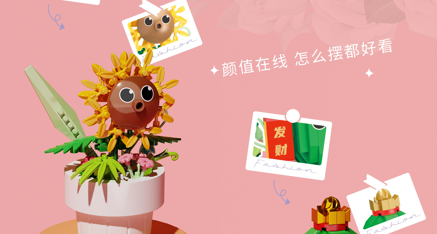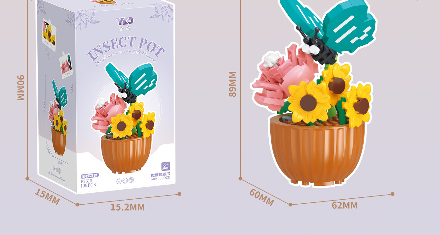 【货号名称】:予高搞怪花+昆虫盆栽积木