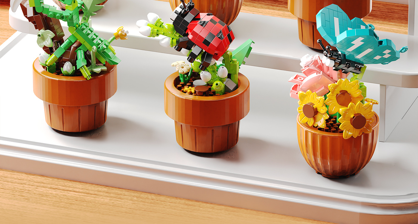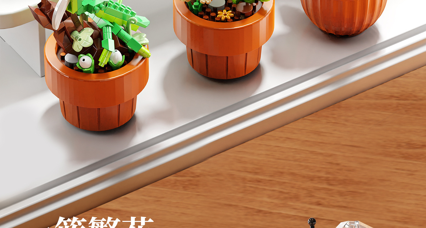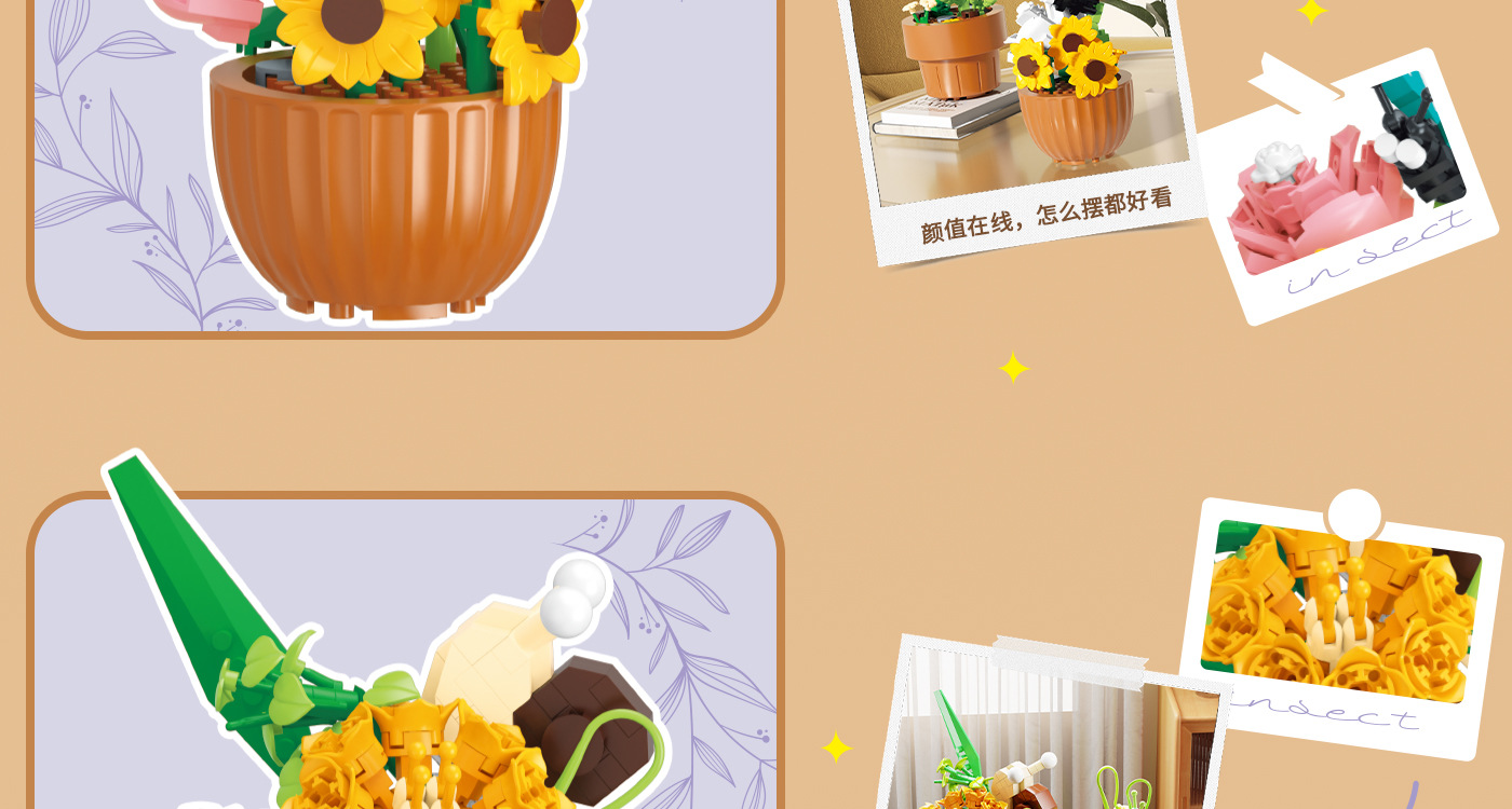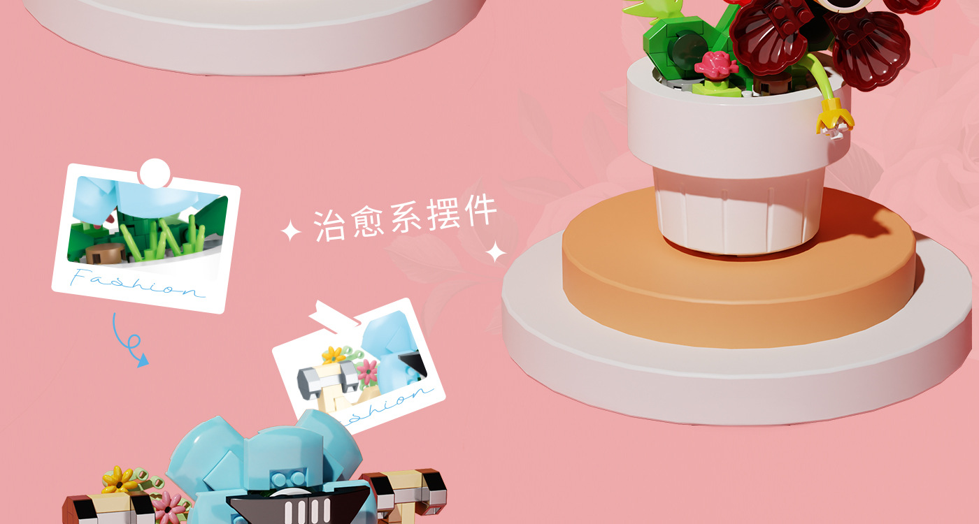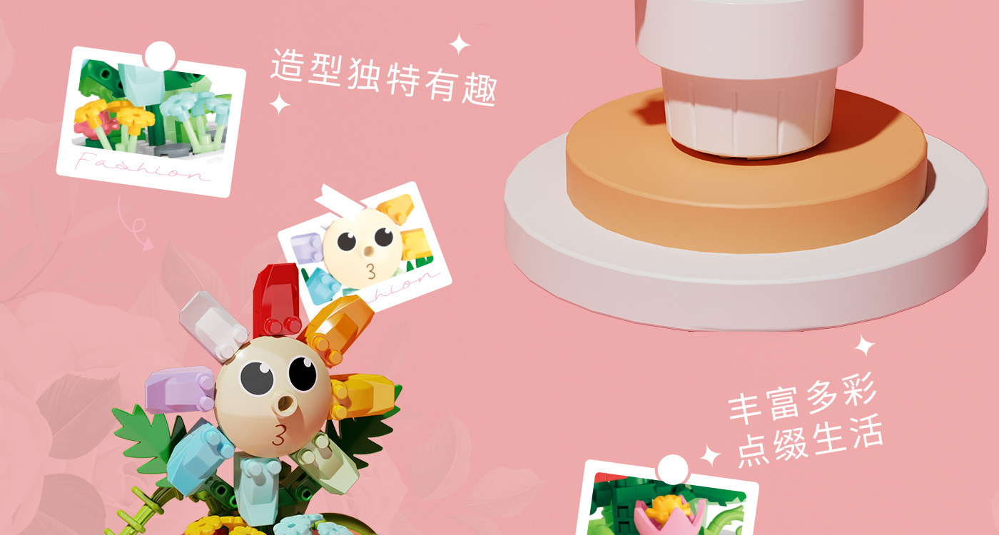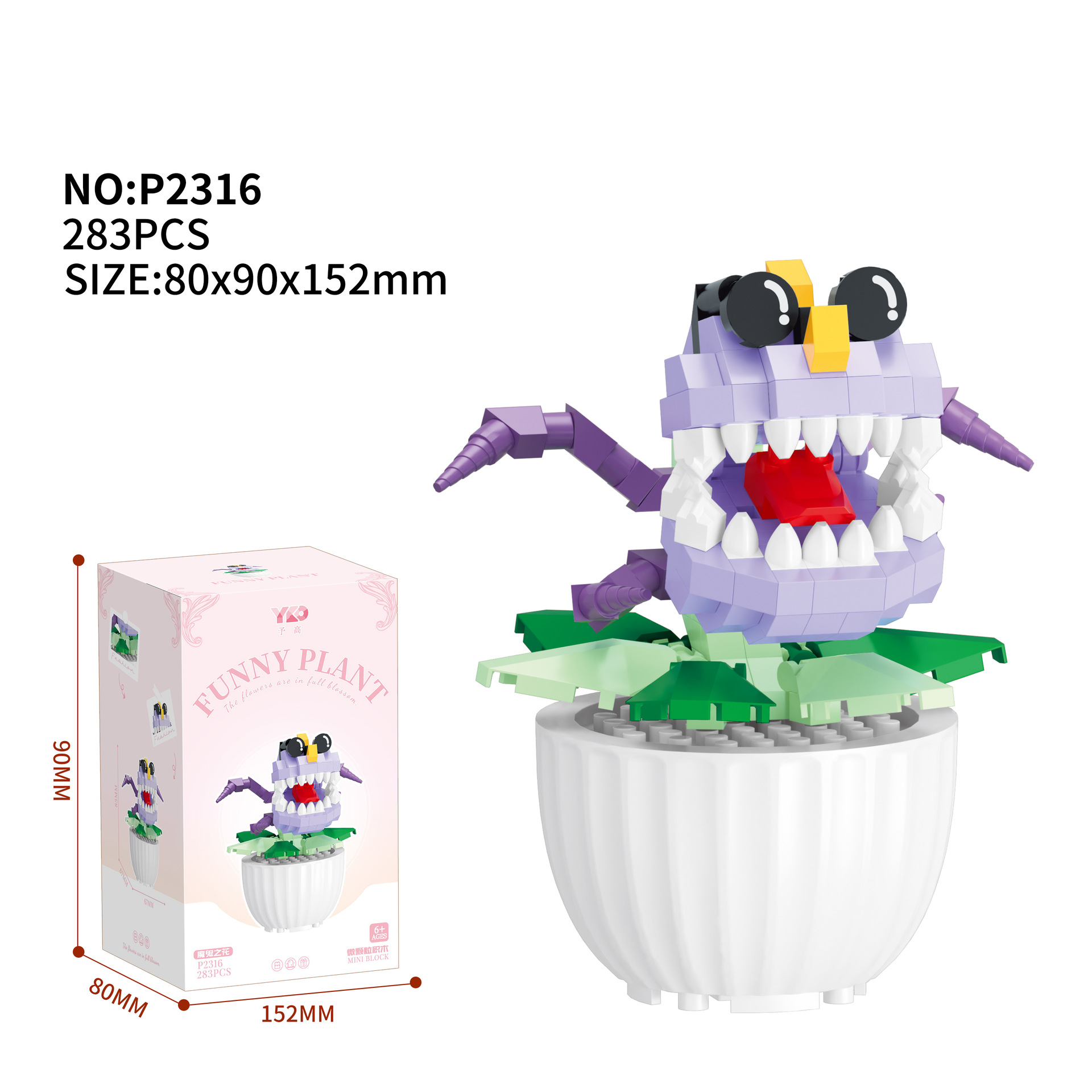 【货号名称】:予高搞怪花+昆虫盆栽积木