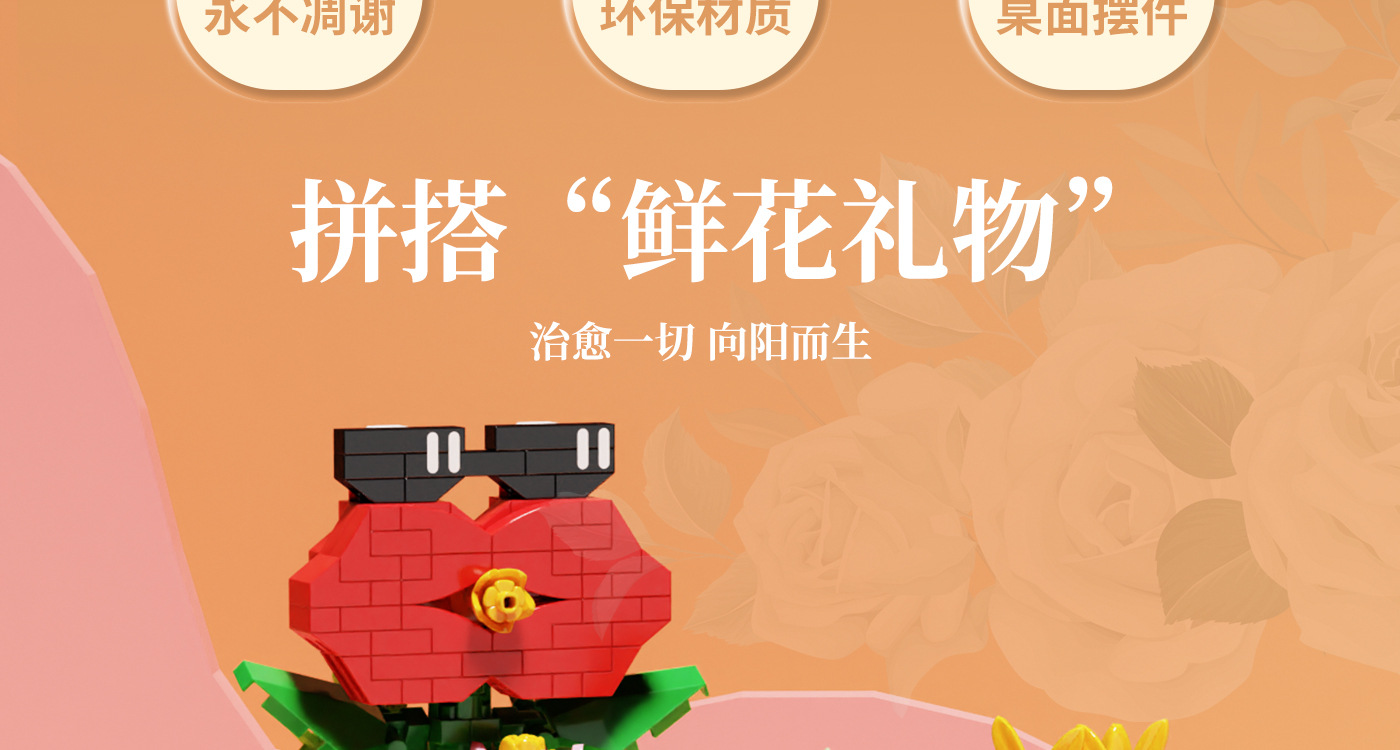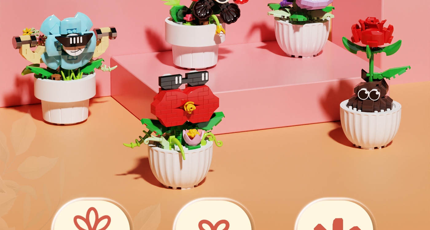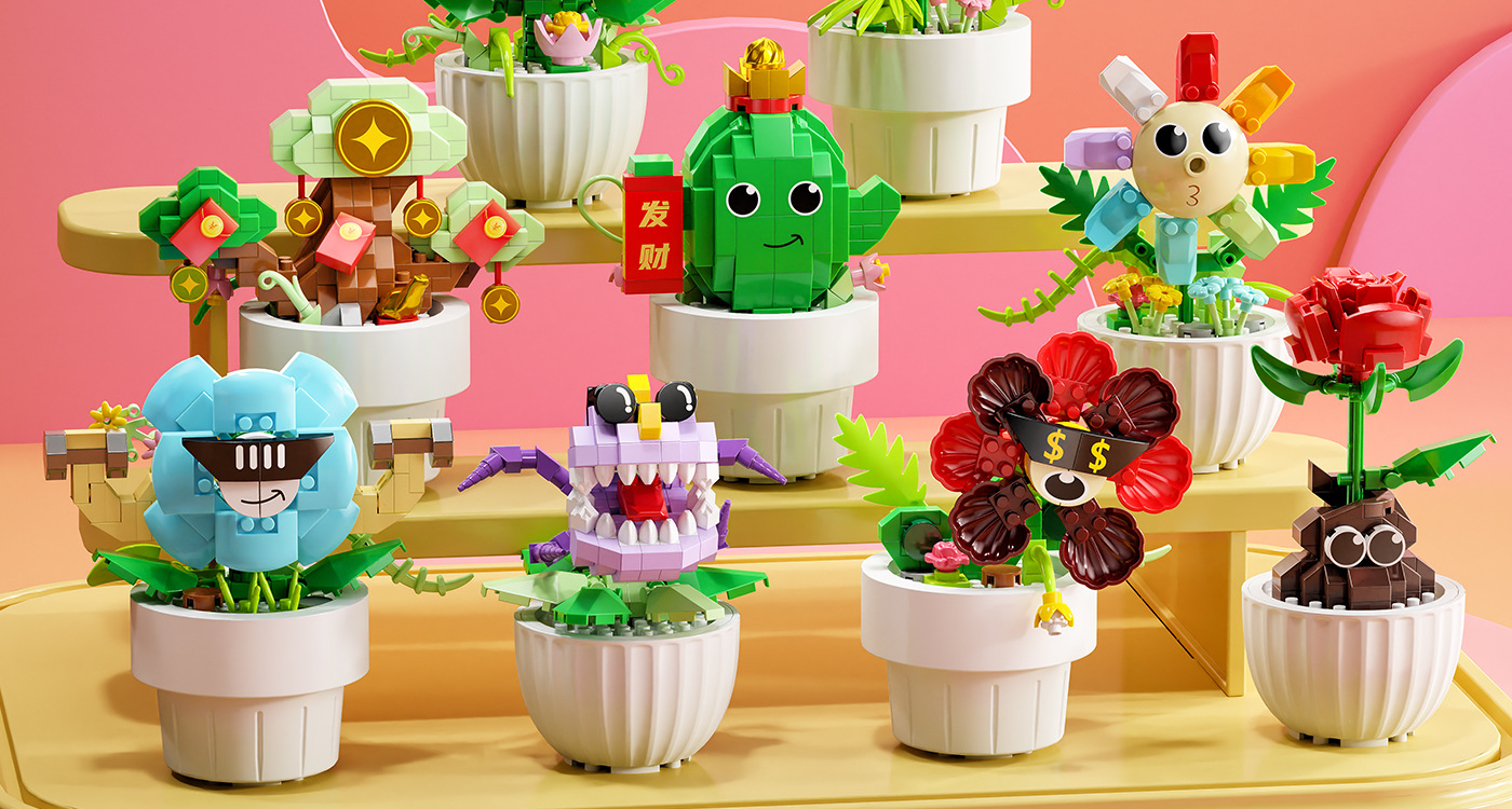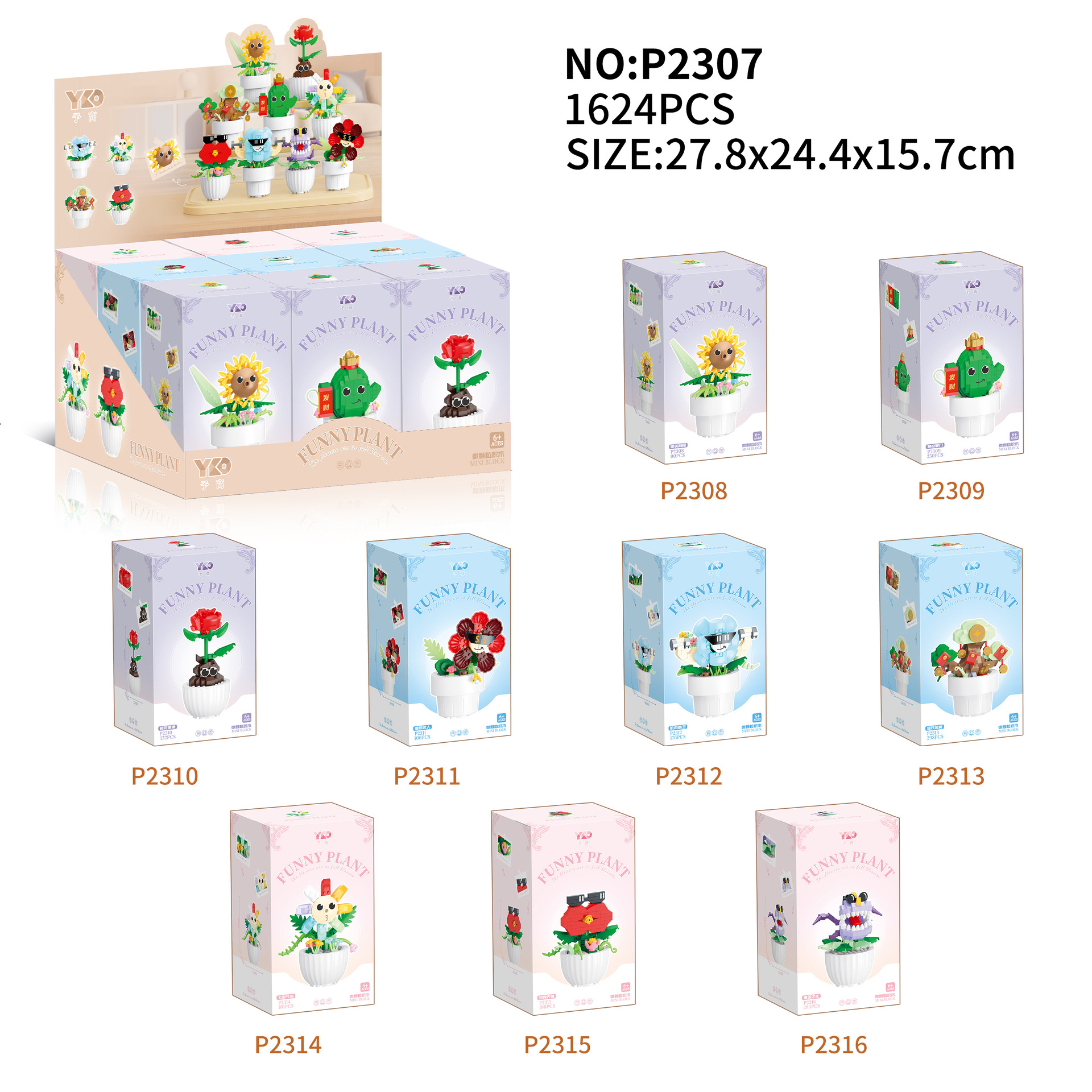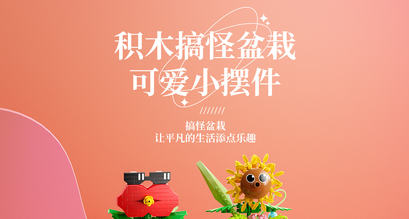 【货号名称】:予高搞怪花+昆虫盆栽积木