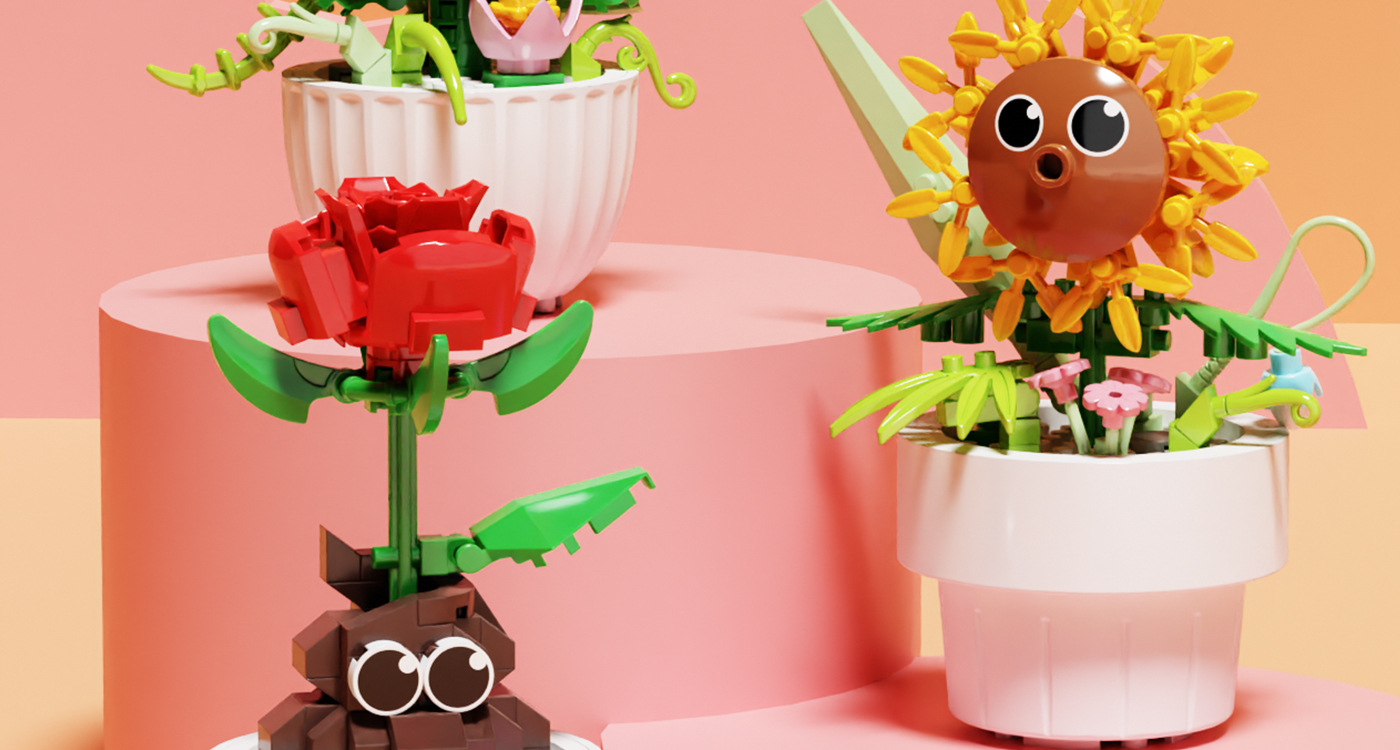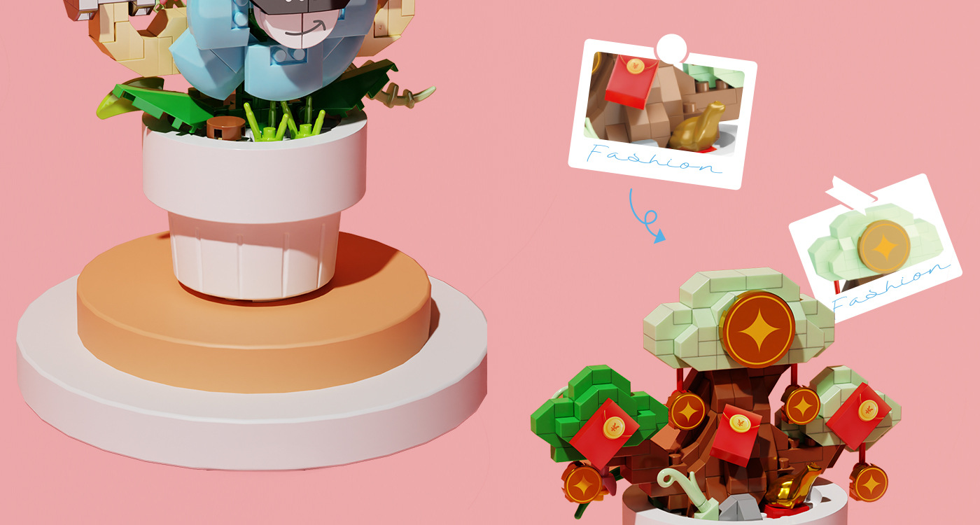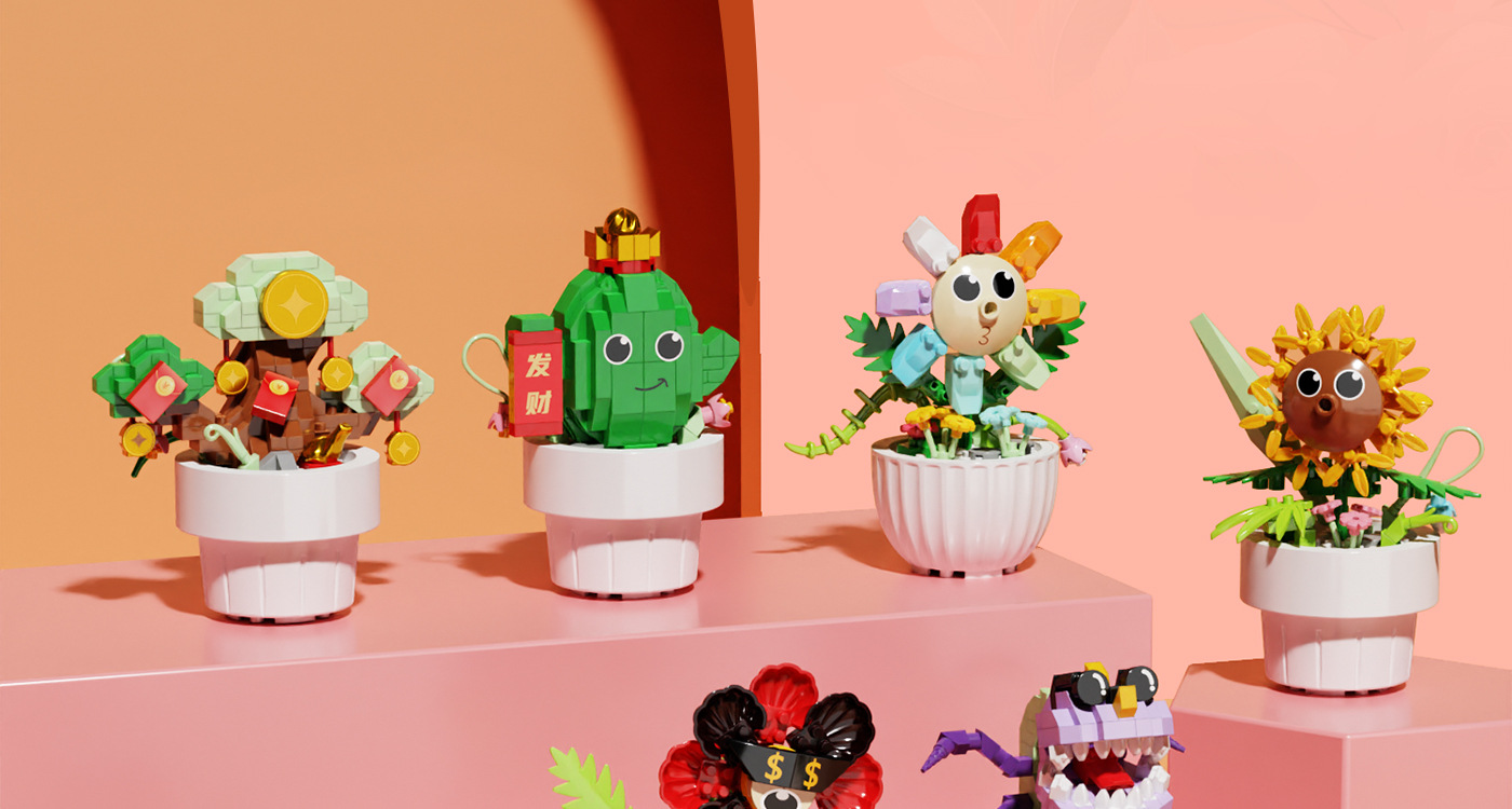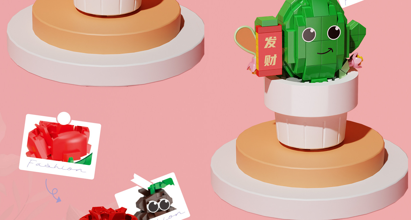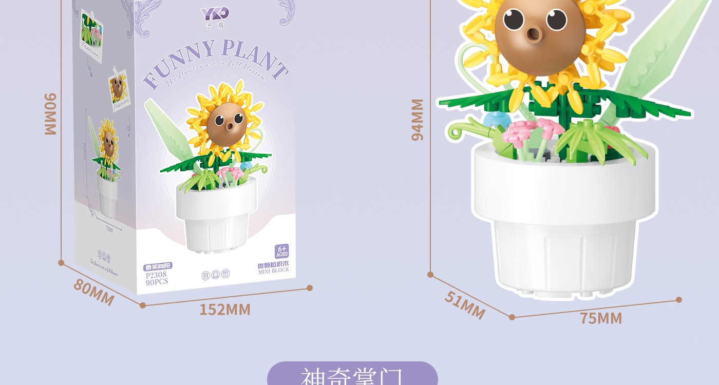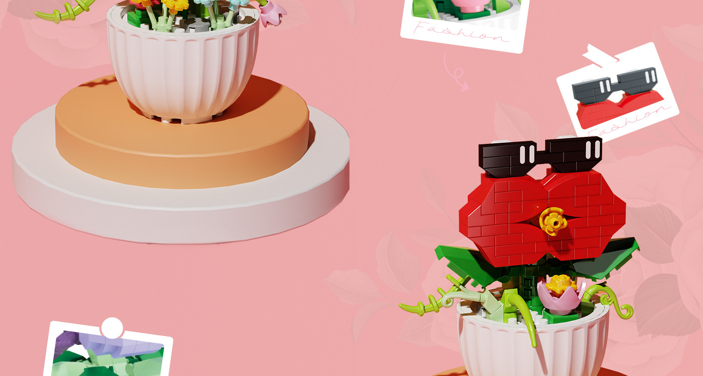 【货号名称】:予高搞怪花+昆虫盆栽积木