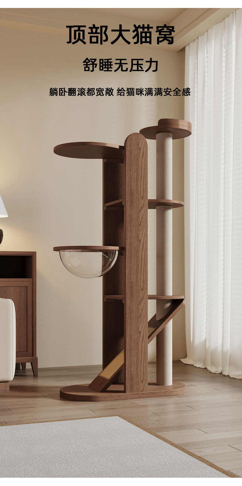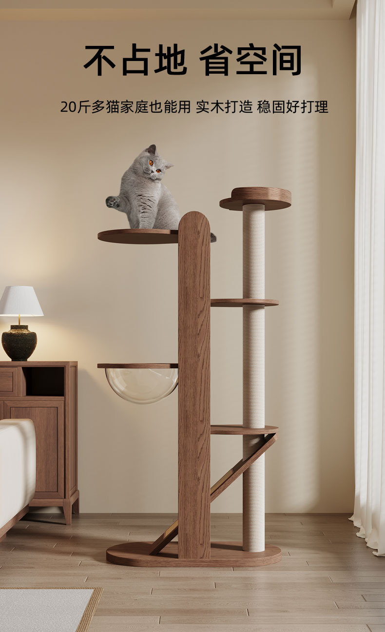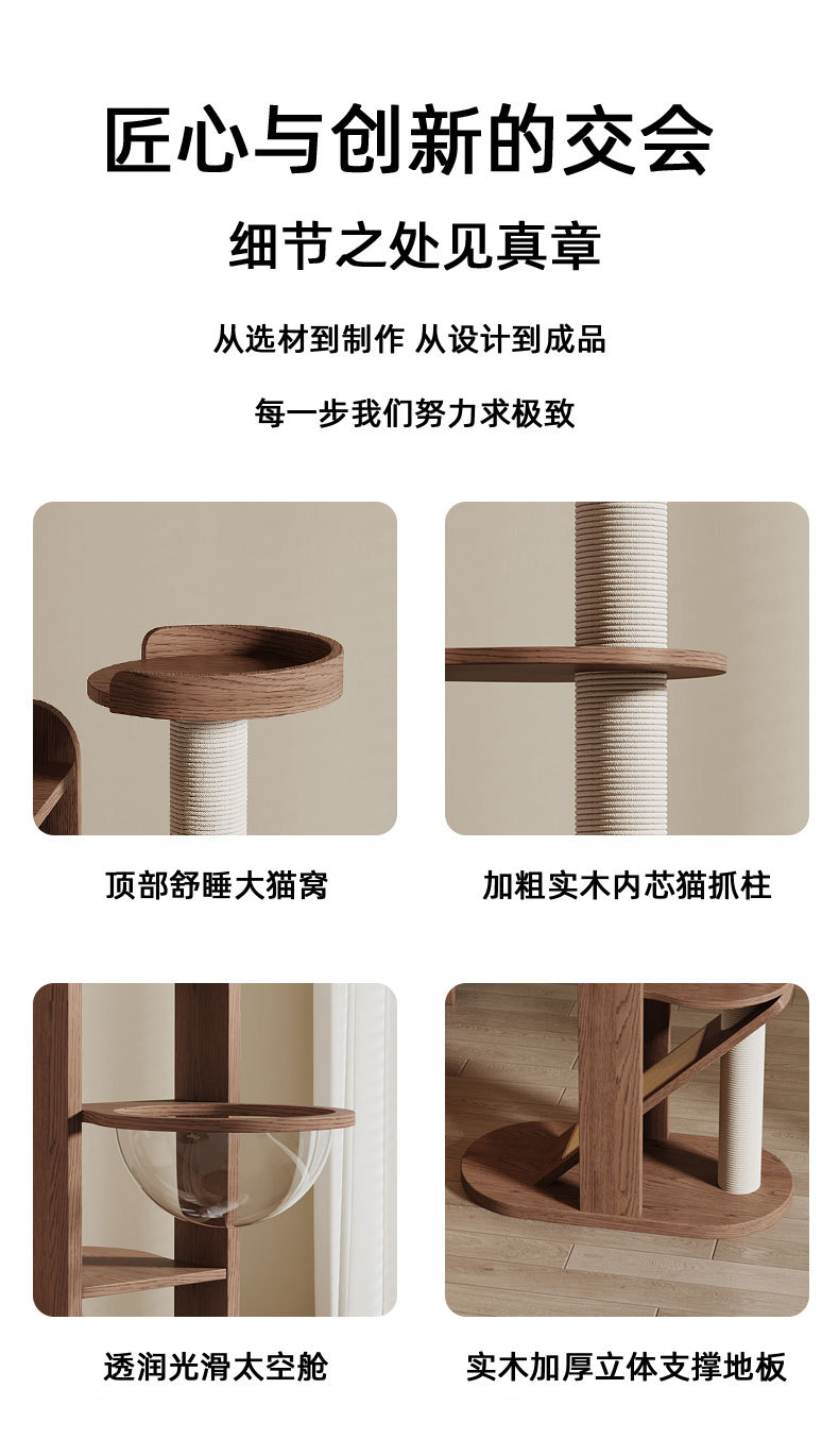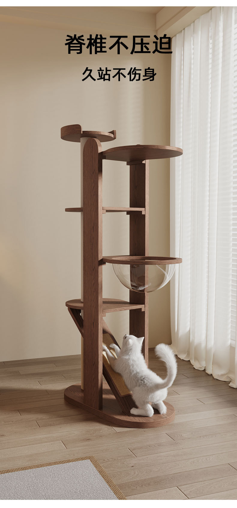 • 원목 고양이 클라이밍 프레임 [우주 캡슐 스타일] - 월넛 컬러