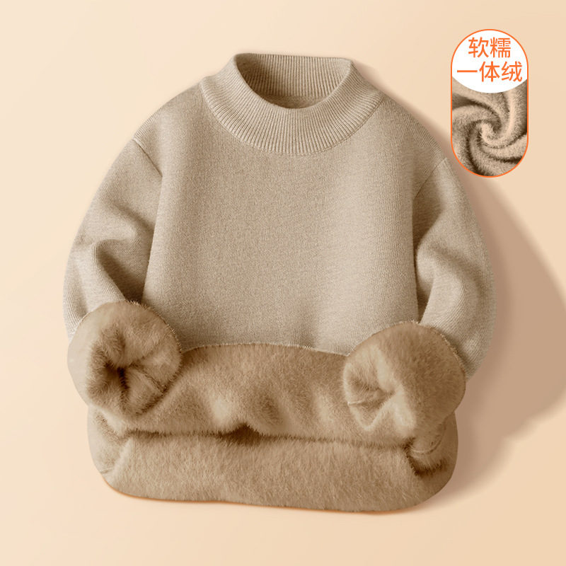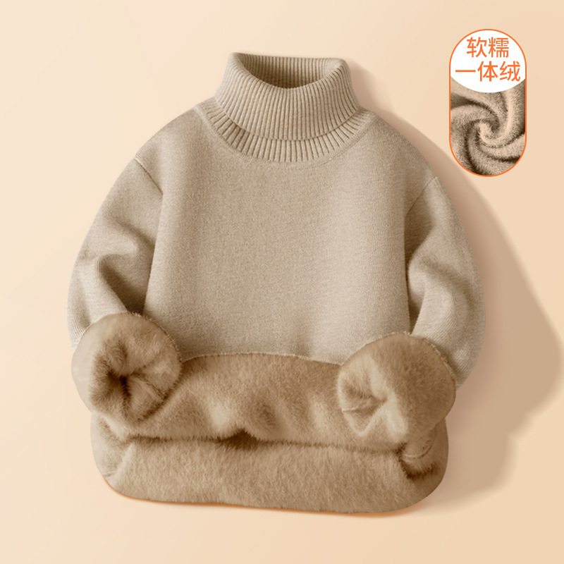 기모 두꺼운 아동복 소년 클래스 스웨터 어린이 원피스 벨벳 니트 셔츠 아기의 하이 칼라 베이스 셔츠