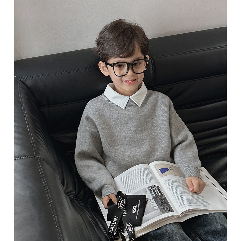 기모 두꺼운 아동복 소년 클래스 스웨터 어린이 원피스 벨벳 니트 셔츠 아기의 하이 칼라 베이스 셔츠스토어 가기