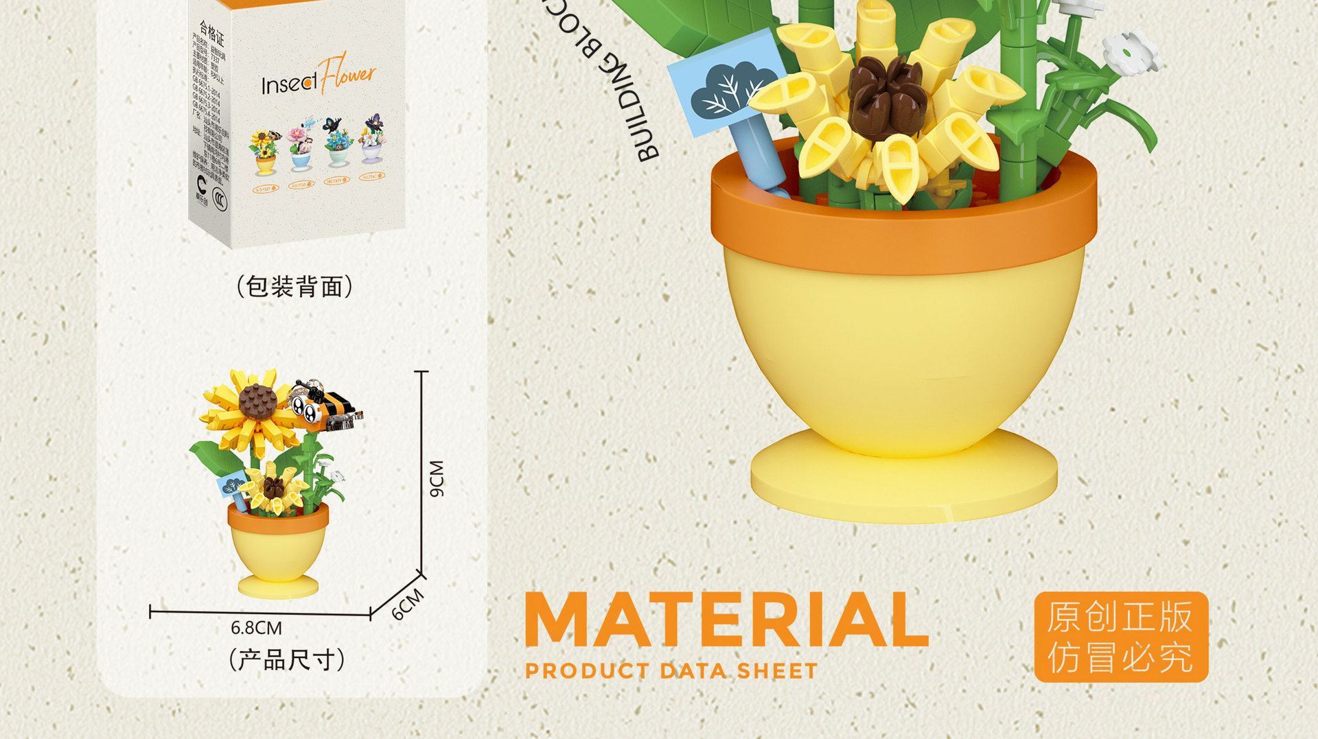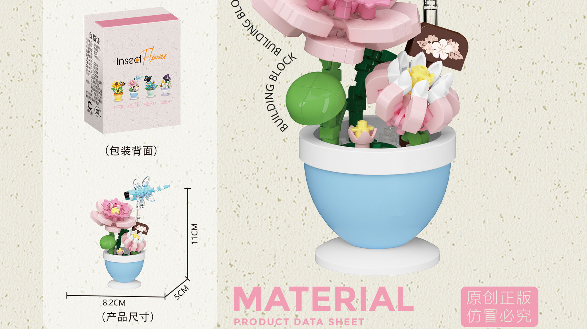 [도매 세대] 꽃 마법사 시리즈 시뮬레이션 화분에 담긴 꽃 조립 빌딩 블록 레고 장식품 선물