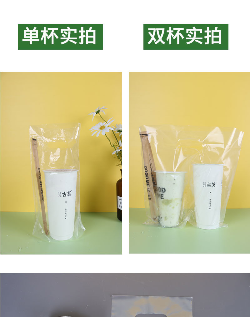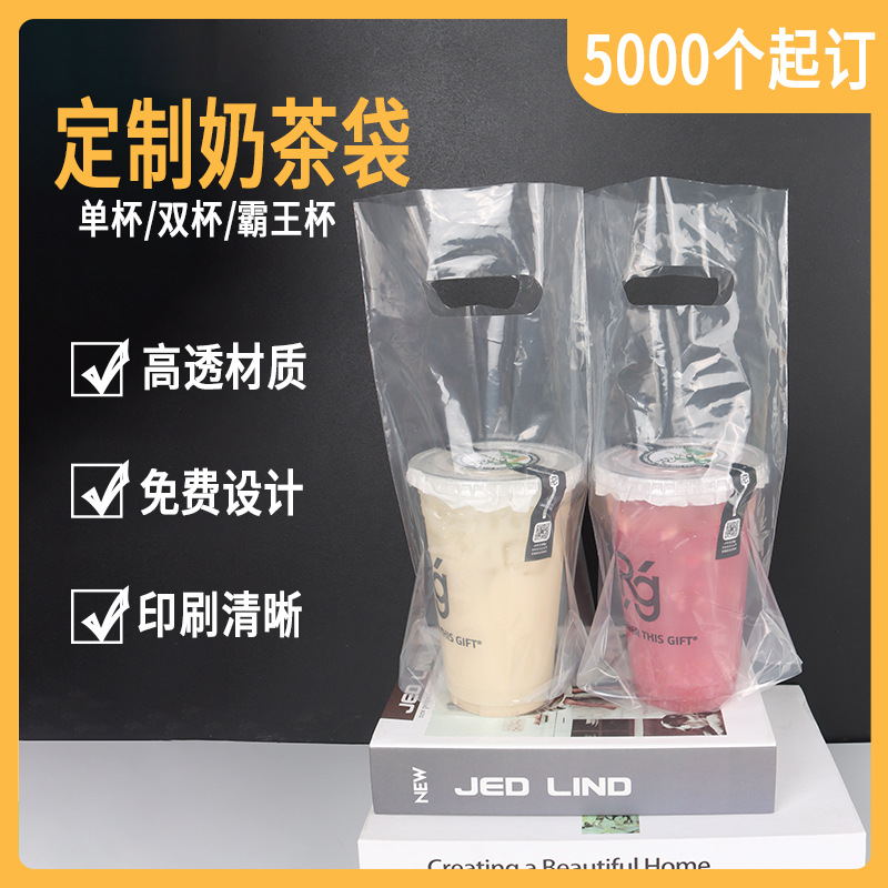 밀크 티백 맞춤형 두꺼운 싱글 및 더블 컵 커피 백 투명 밀크 티 포장 백 과일 차 음료 휴대용 비닐 봉투스토어 가기