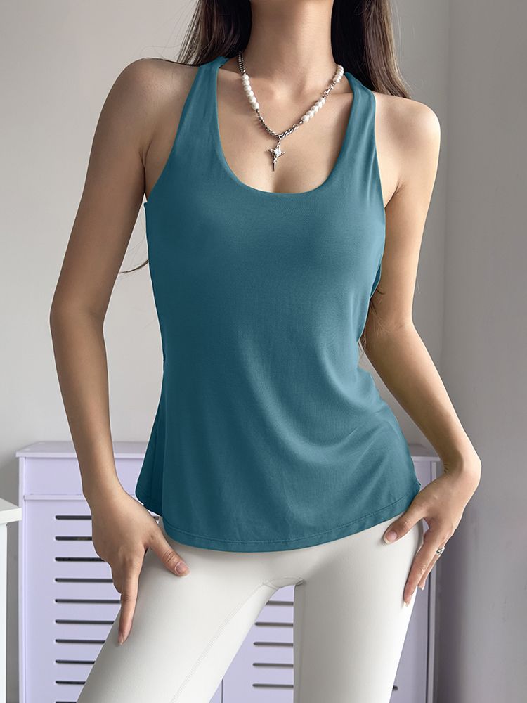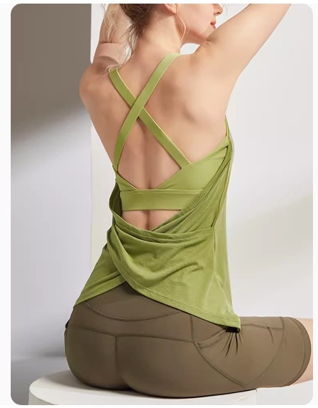 가슴 쿠션으로 가짜 투피스 요가 조끼 섹시한 달리기 훈련 아름다운 뒤 필라테스 피트니스 민소매 탑