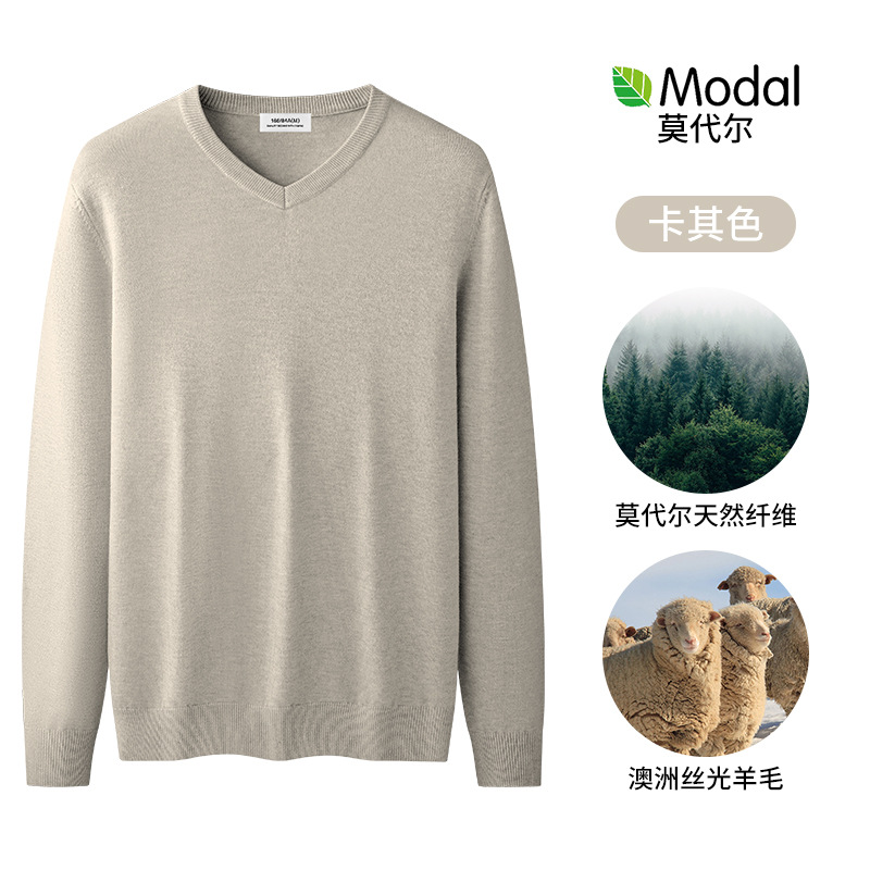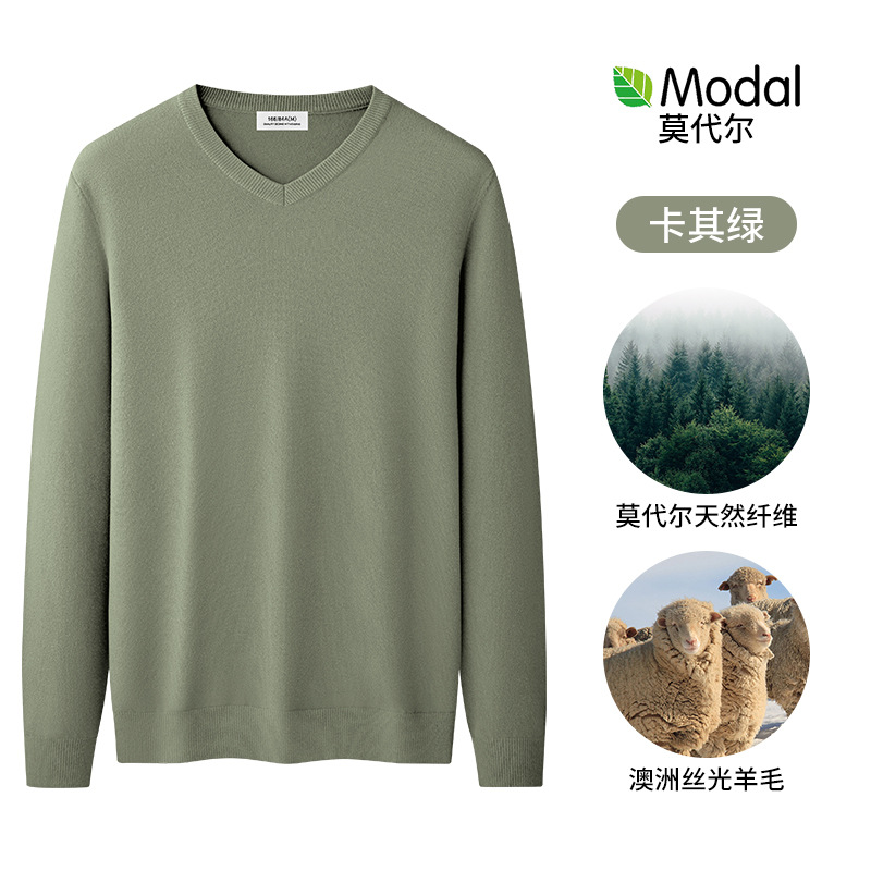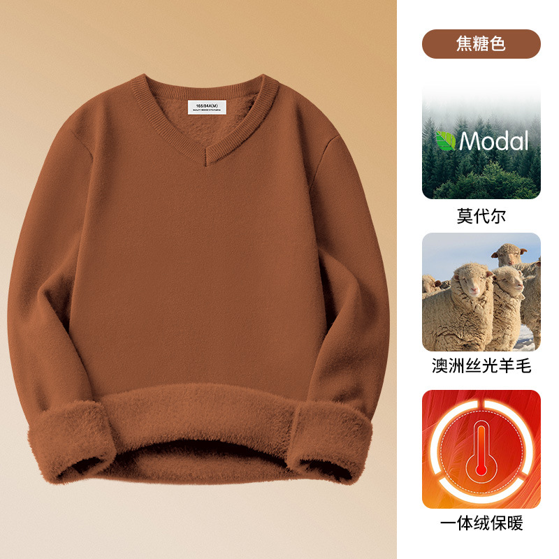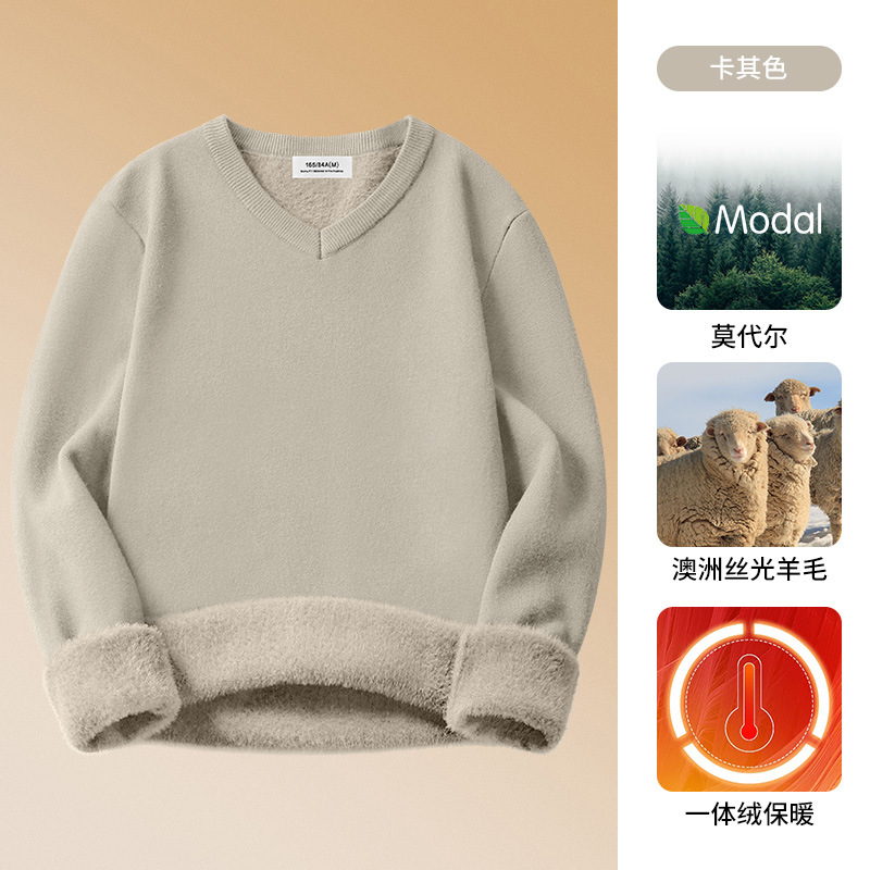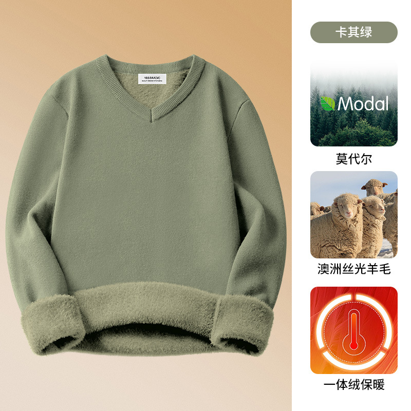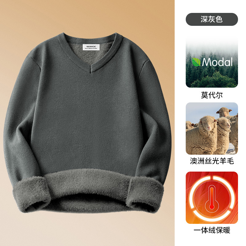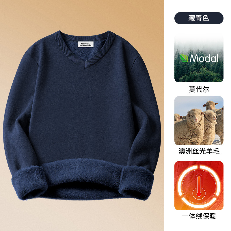 양모 모달 남성용 치킨 하트 칼라 가을과 겨울 기모 남성용 두꺼운 니트 스웨터 V 넥 원피스 플리스베이스 셔츠