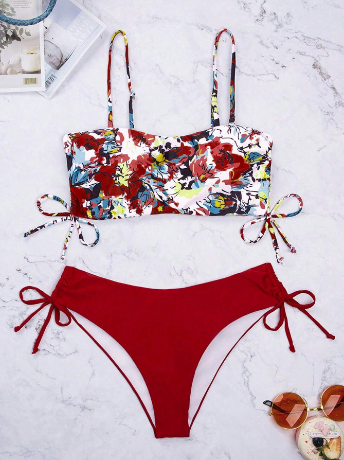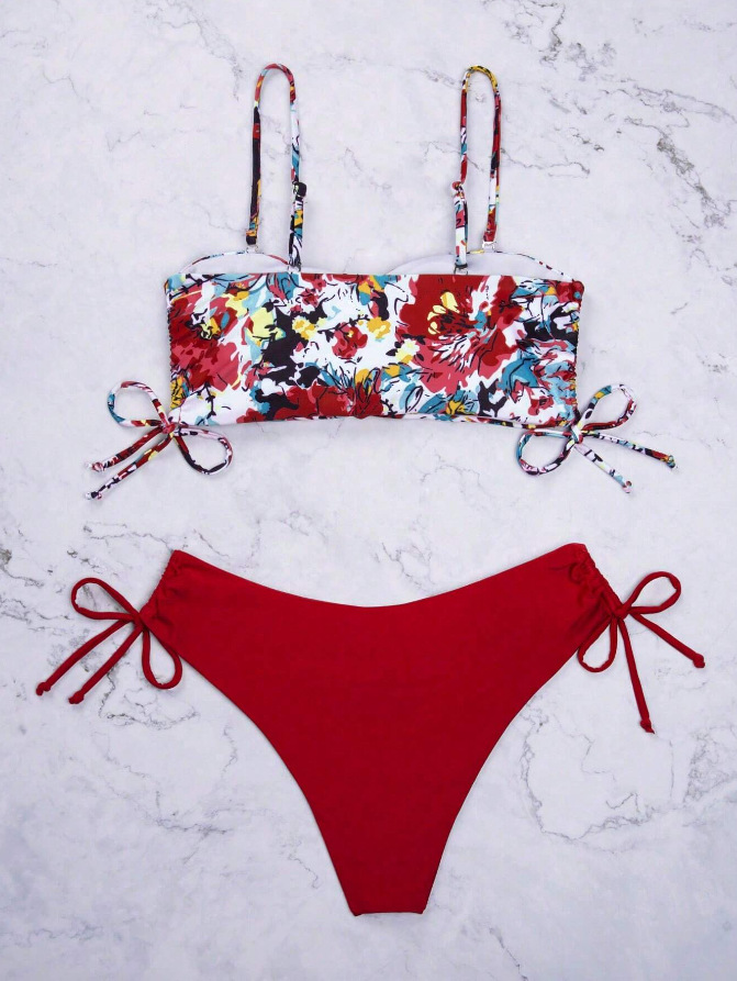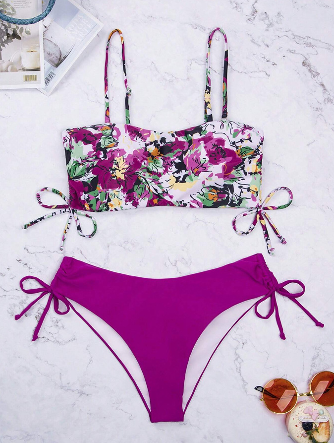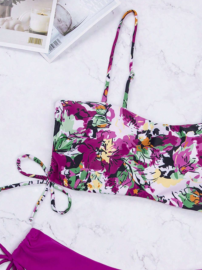2025 꽃 섹시 비키니 수영복 여성의 새로운 유럽 및 미국 대외 무역 높은 허리 비키니 비치 스플릿 수영복스토어 가기
