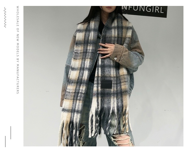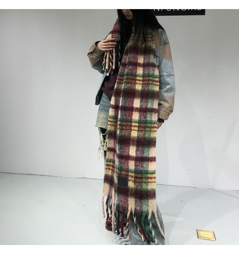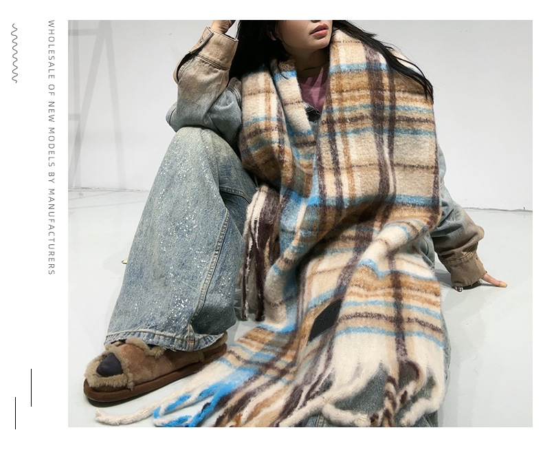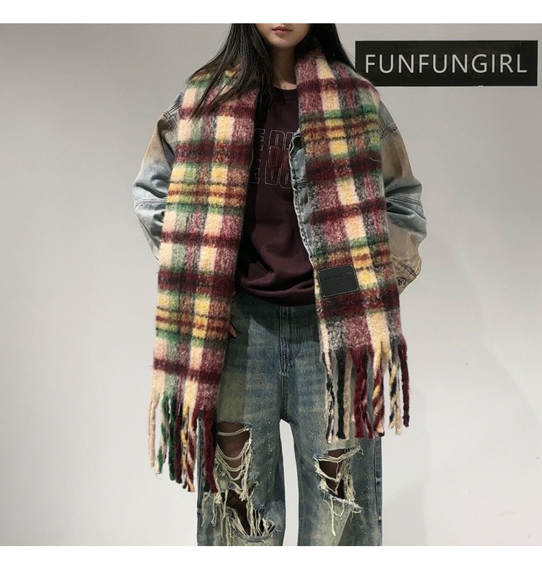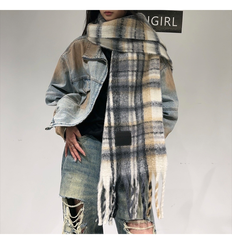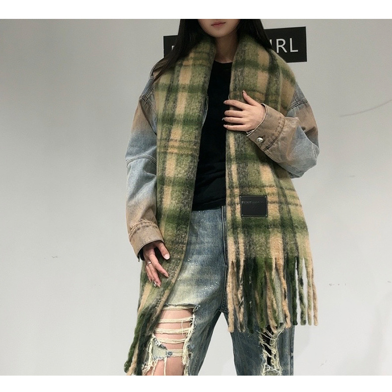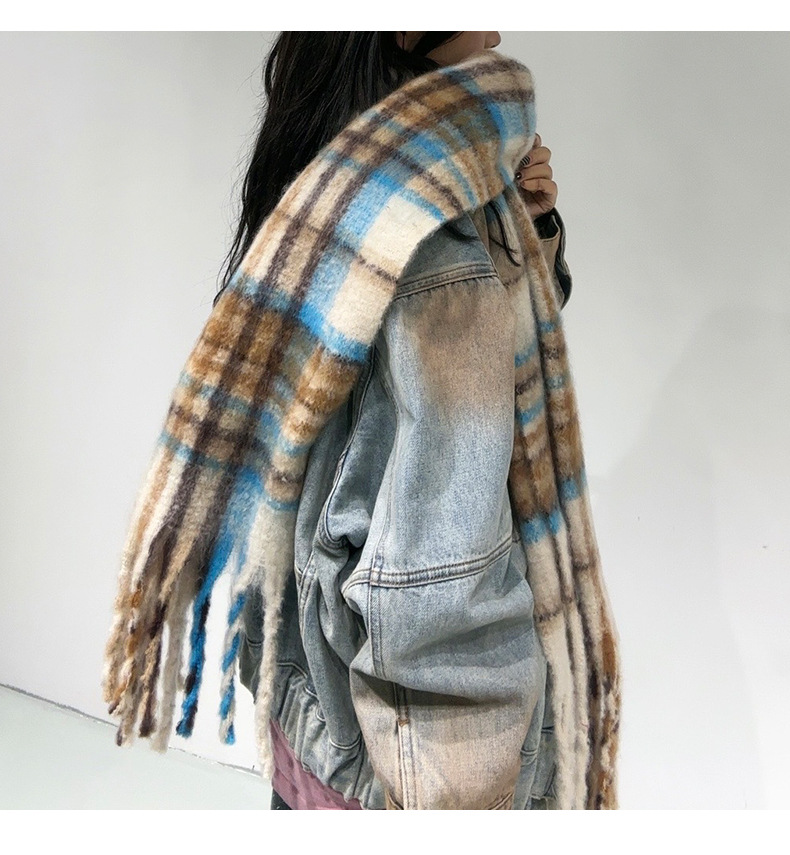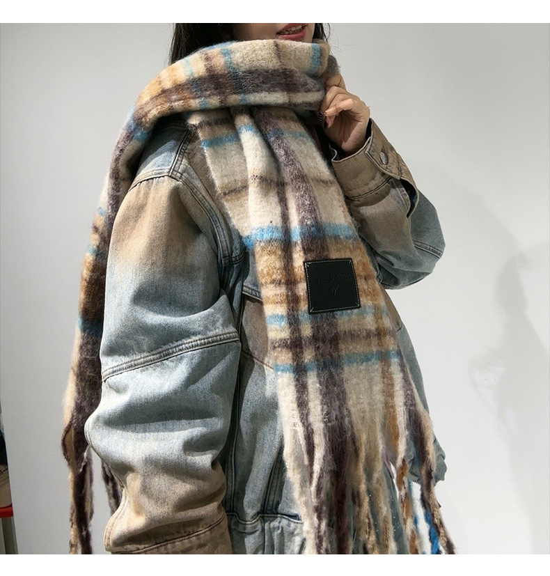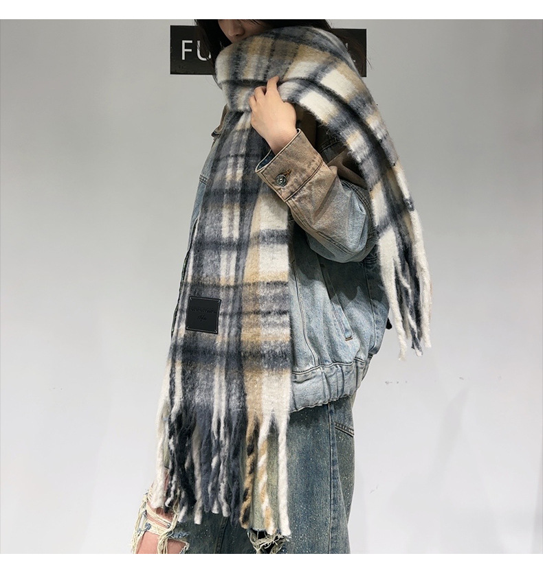 새로운 격자무늬 배색 스카프 여성용 가을 겨울 고급스러운 두꺼운 보온 목도리 패셔너블하고 다재다능한 프린지 숄 스카프스토어 가기