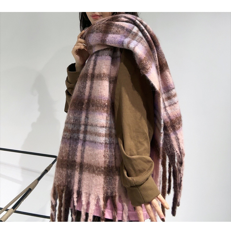 새로운 격자무늬 배색 스카프 여성용 가을 겨울 고급스러운 두꺼운 보온 목도리 패셔너블하고 다재다능한 프린지 숄 스카프