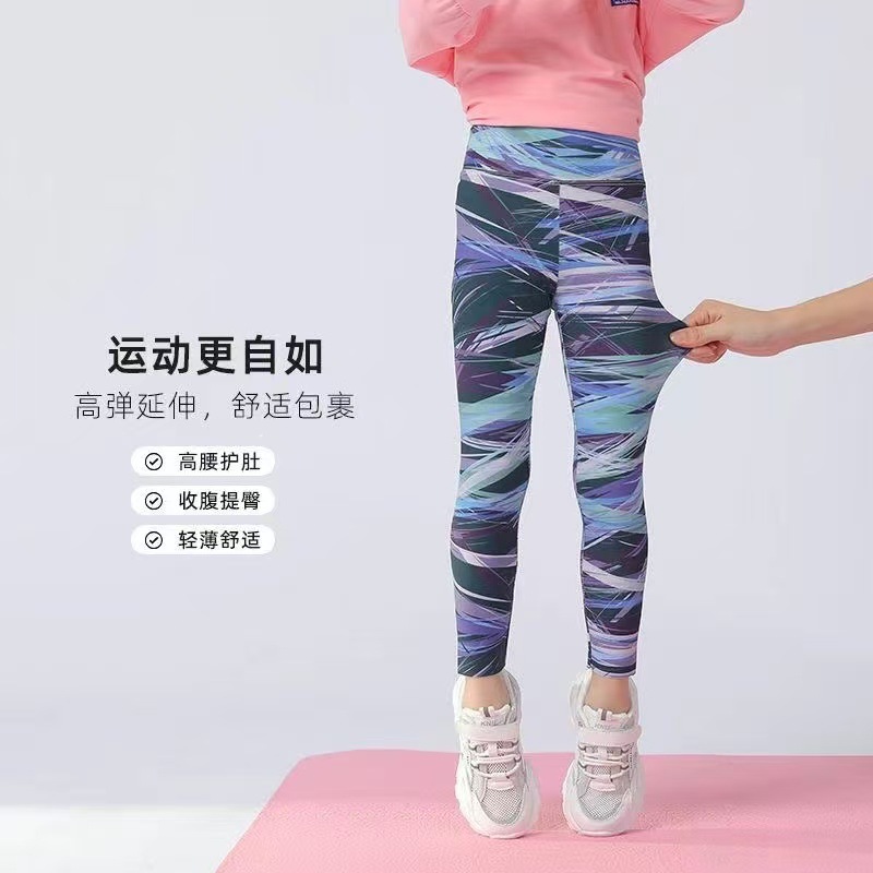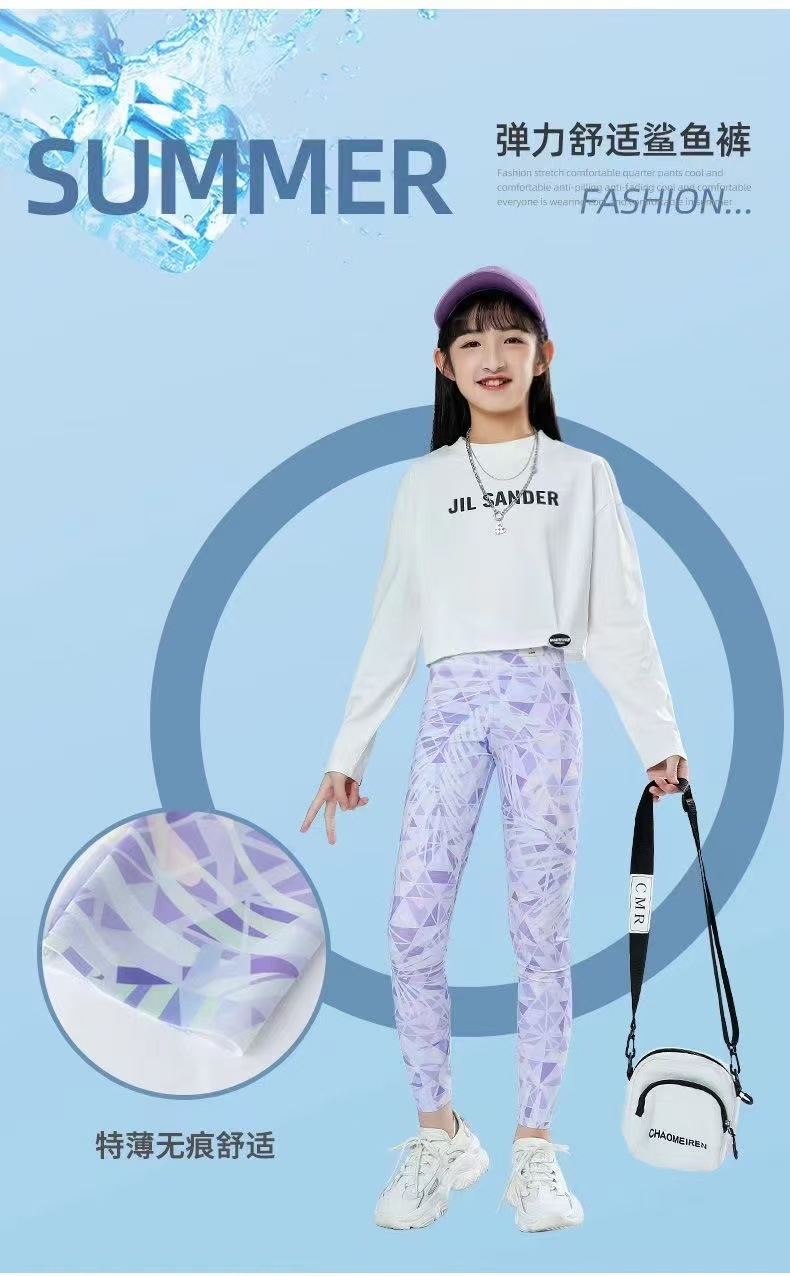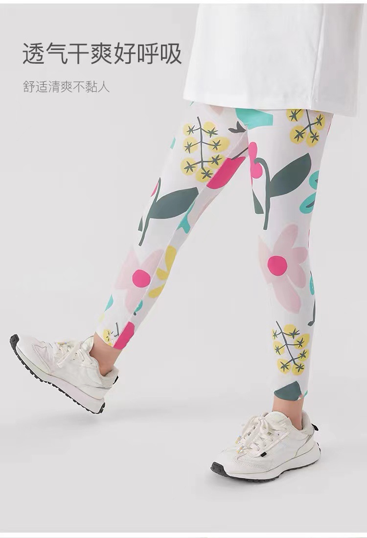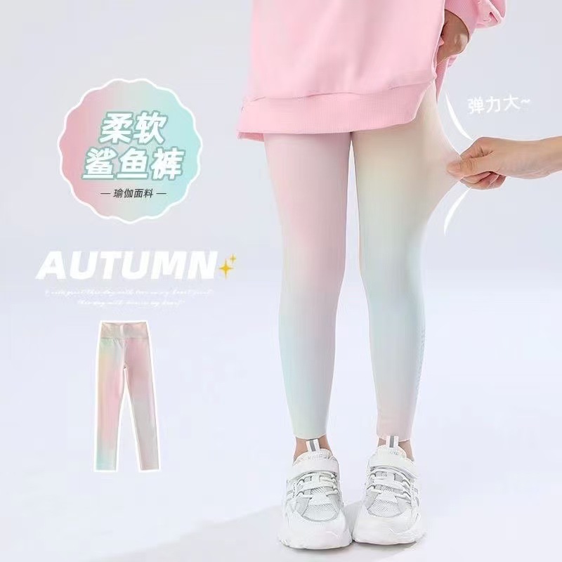 소녀 레깅스 아이스 실크 봄과 여름 얇은 요가 상어 중 큰 어린이 다채로운 외부 착용 스포츠 봄과 가을 어린이 바지스토어 가기