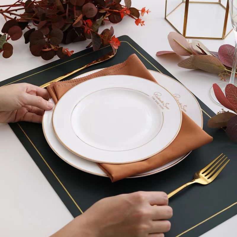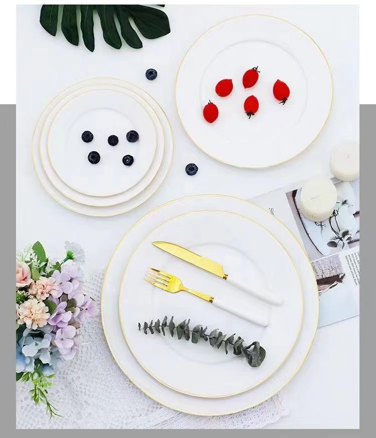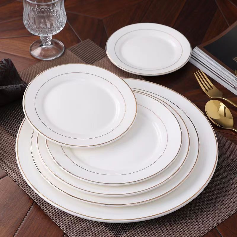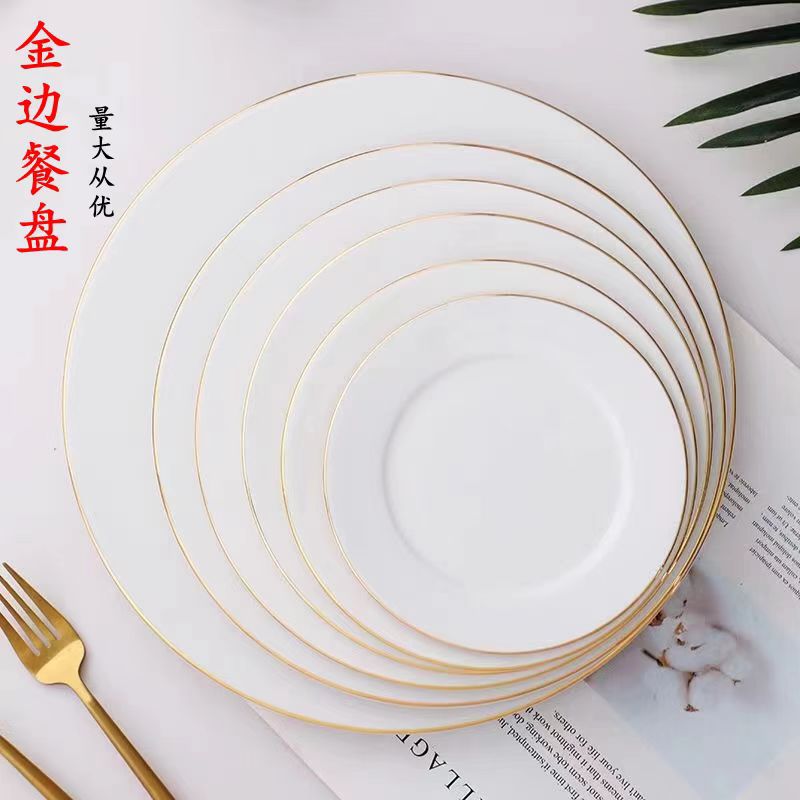 제조업체 도매 중추절 골드 테두리가 있는 본차이나 접시, 가정용 순백색 세라믹 접시, 서양식 디저트 접시, 스테이크 접시, 호텔 접시스토어 가기