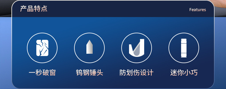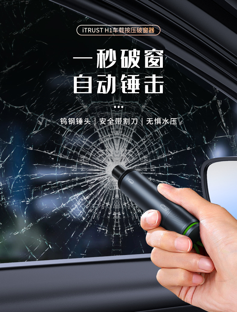 LeiBen 자동차 안전 망치 자동차 다기능 유리 깨진 창 유물 자동차 스트라이커 휴대용 키 체인 1 초