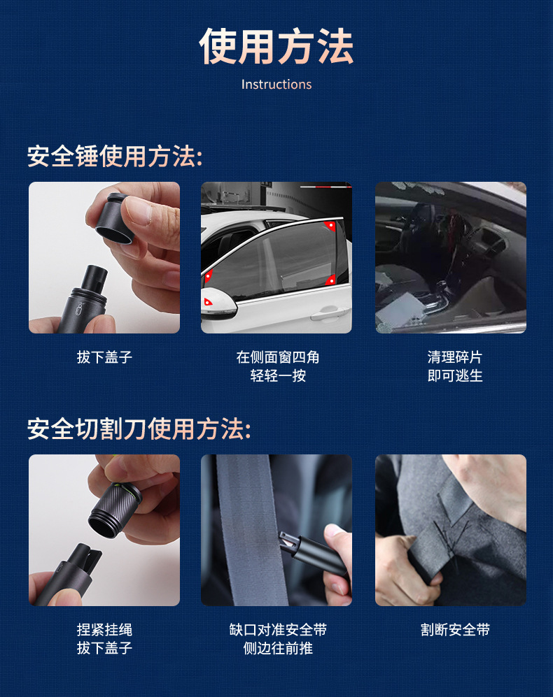 LeiBen 자동차 안전 망치 자동차 다기능 유리 깨진 창 유물 자동차 스트라이커 휴대용 키 체인 1 초스토어 가기