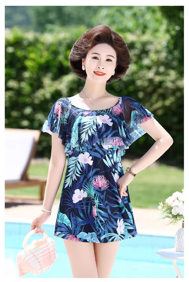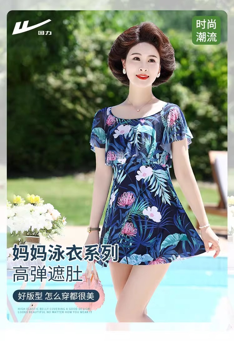Huili 어머니 수영복 여성 중년 및 노인 2024 배 슬리밍 온천 원피스 스커트를 덮는 새로운 플러스 사이즈 고기스토어 가기
