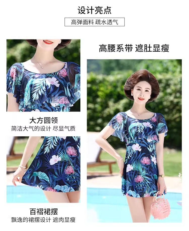 Huili 어머니 수영복 여성 중년 및 노인 2024 배 슬리밍 온천 원피스 스커트를 덮는 새로운 플러스 사이즈 고기