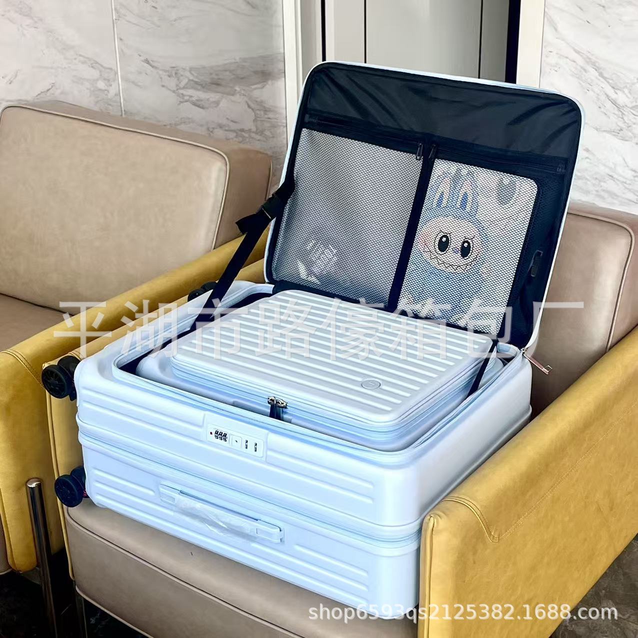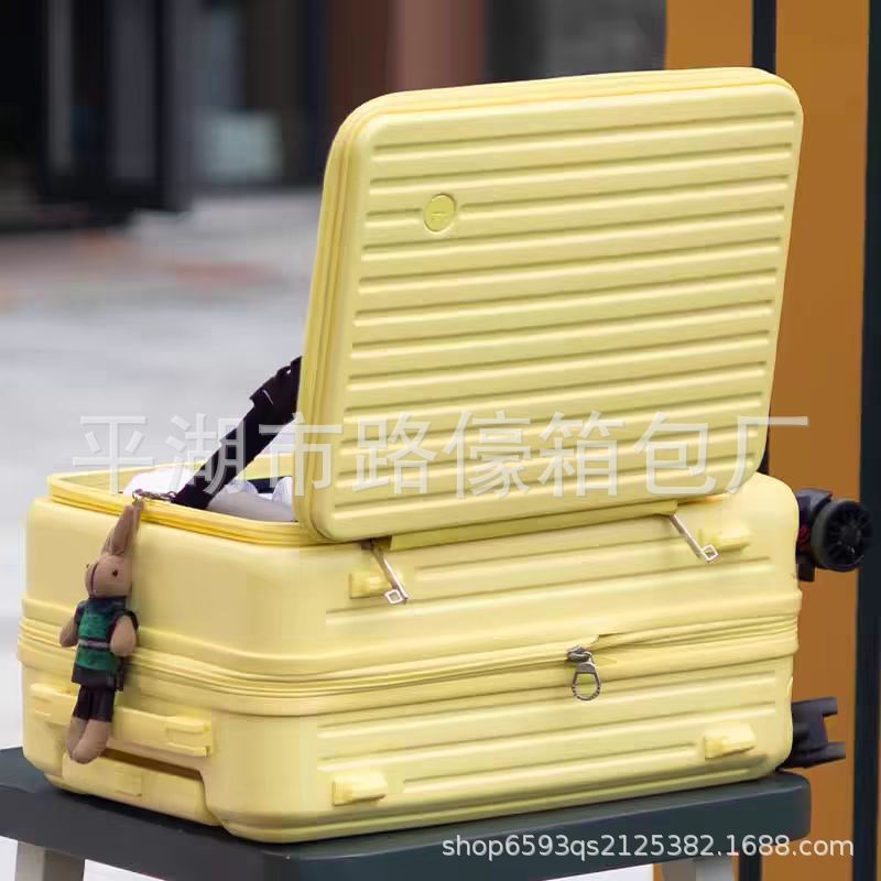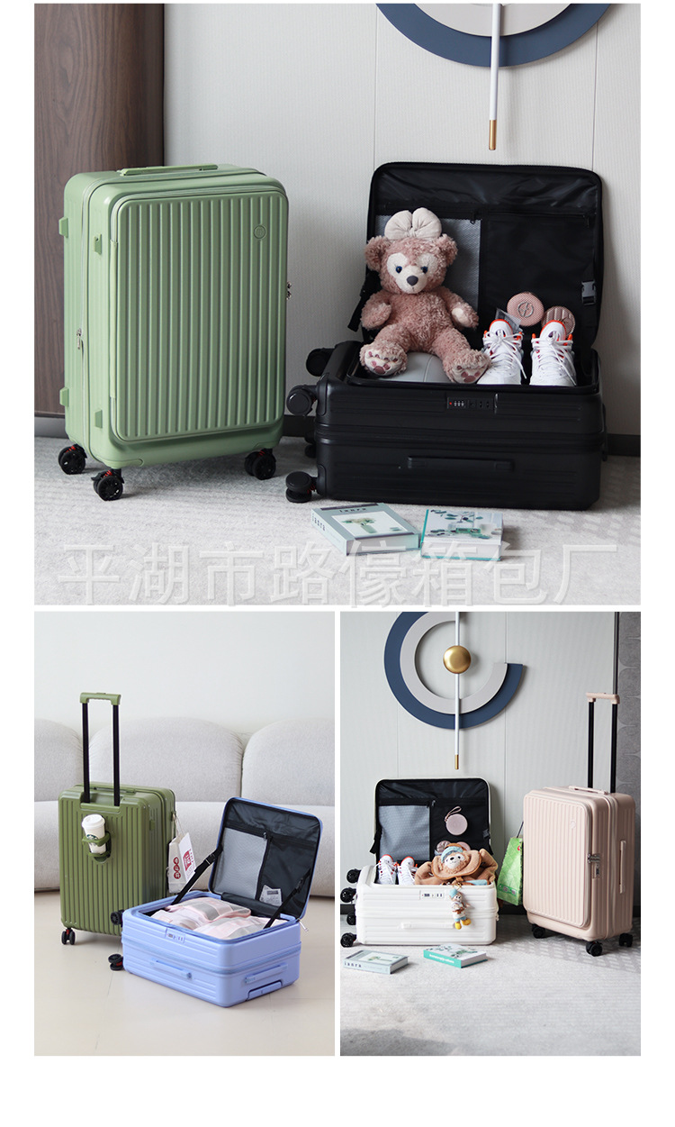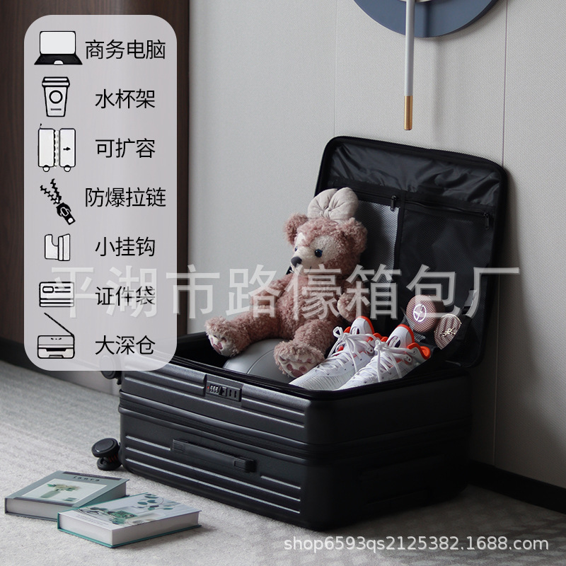 사이드 오프닝 수하물 케이스 여성의 2024 새로운 확장 다기능 트롤리 케이스 26 인치 가방 탑승 수하물 케이스 남성스토어 가기