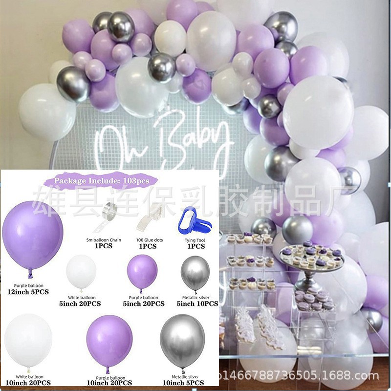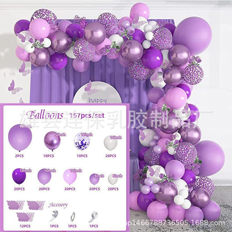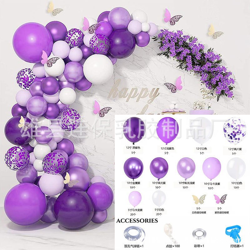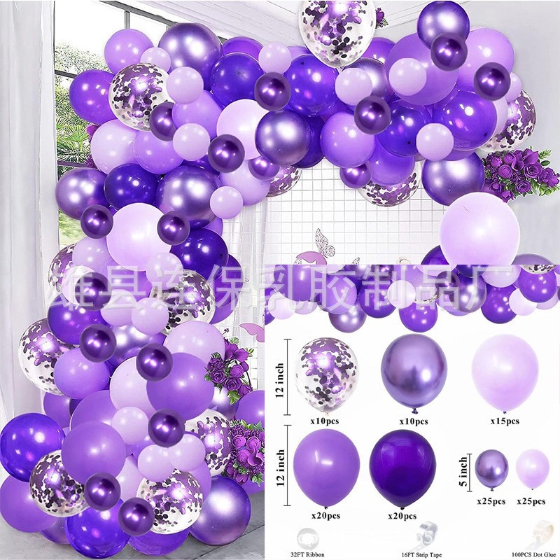 맞춤형 풍선 행사 아치 세트 금속 보라색 풍선 어린이 생일 웨딩 파티 레이아웃 풍선 크로스보더