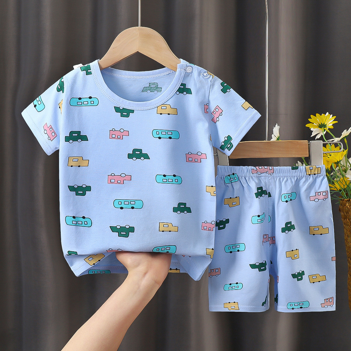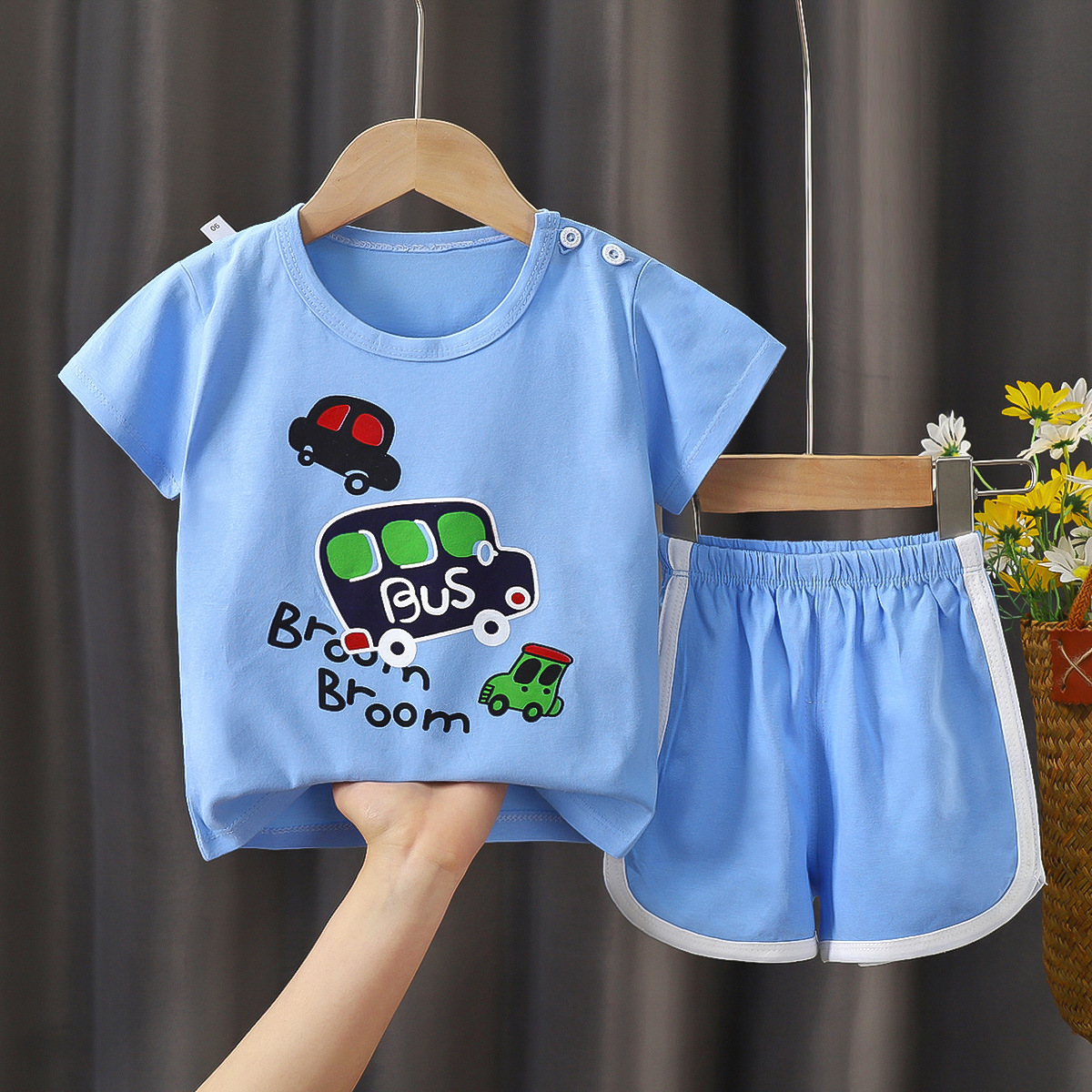 어린이 반팔 반바지 세트 중소형 어린이 여름 아기면 속옷 소년 소녀 둥근 목 티셔츠 도매스토어 가기