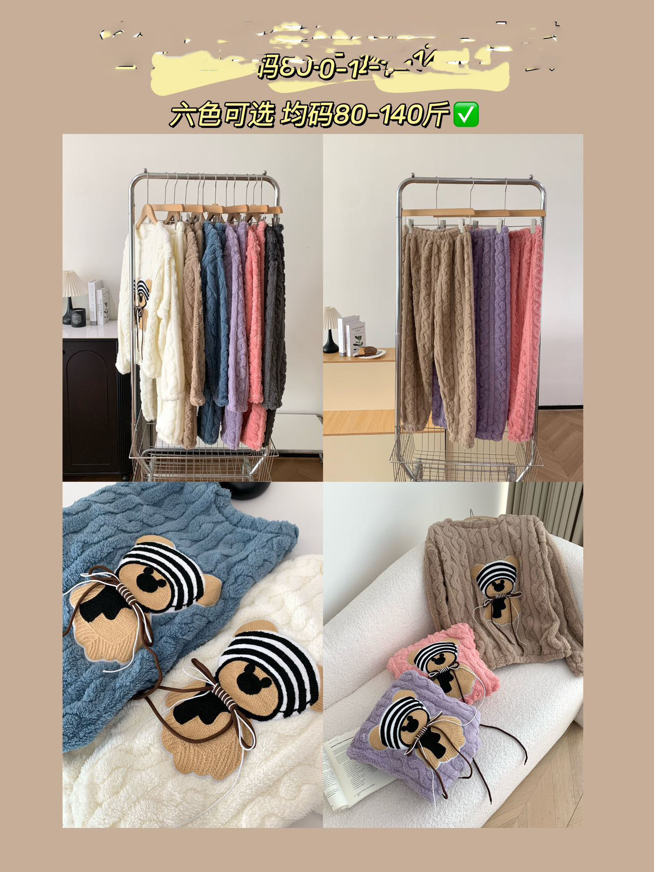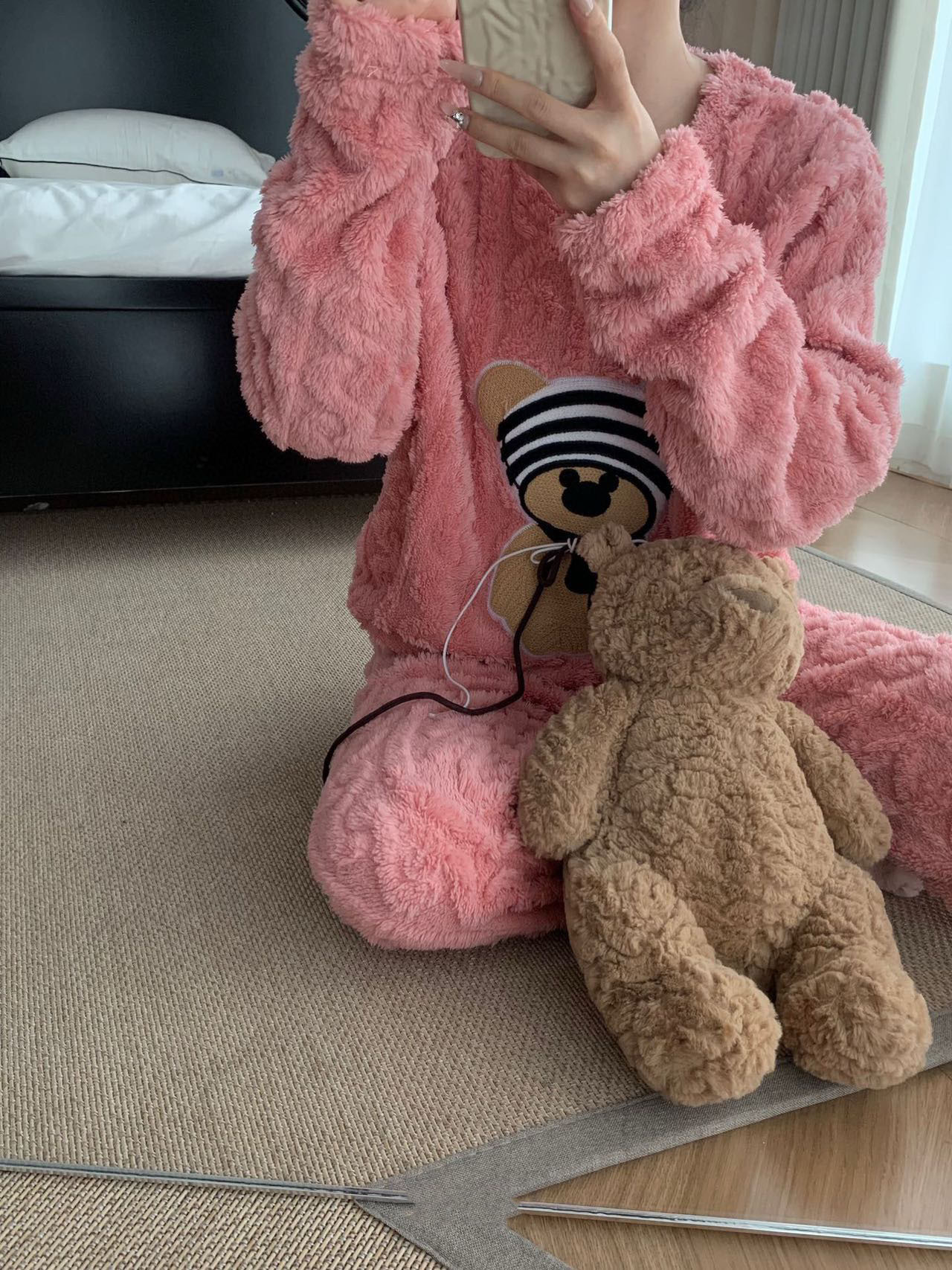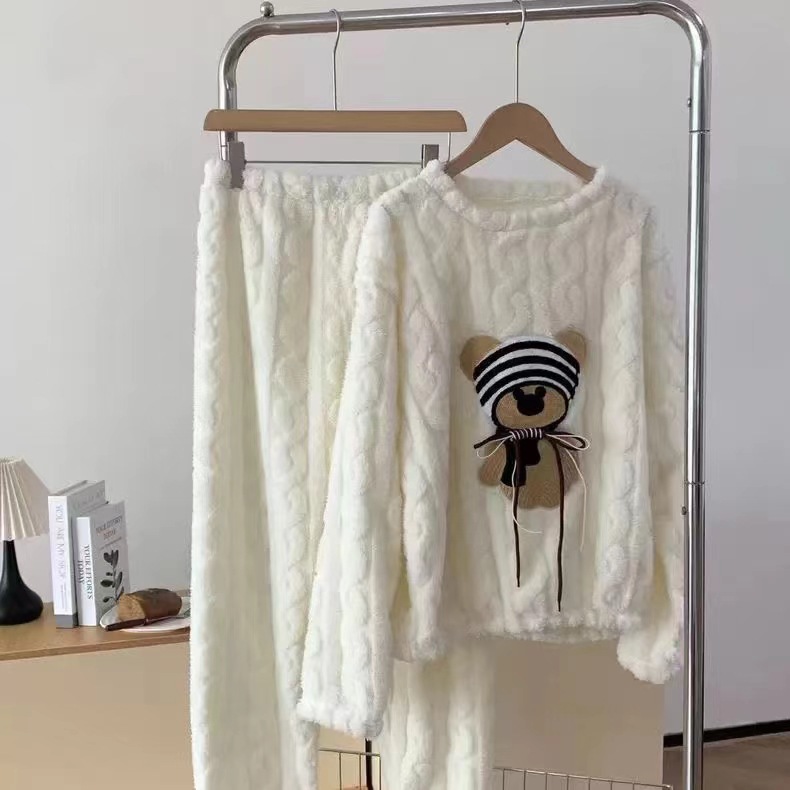 가을, 겨울 새로운 새로운 산호 벨벳 플란넬 만화 귀여운 바보 곰 패션 홈웨어 잠옷 긴팔 바지스토어 가기