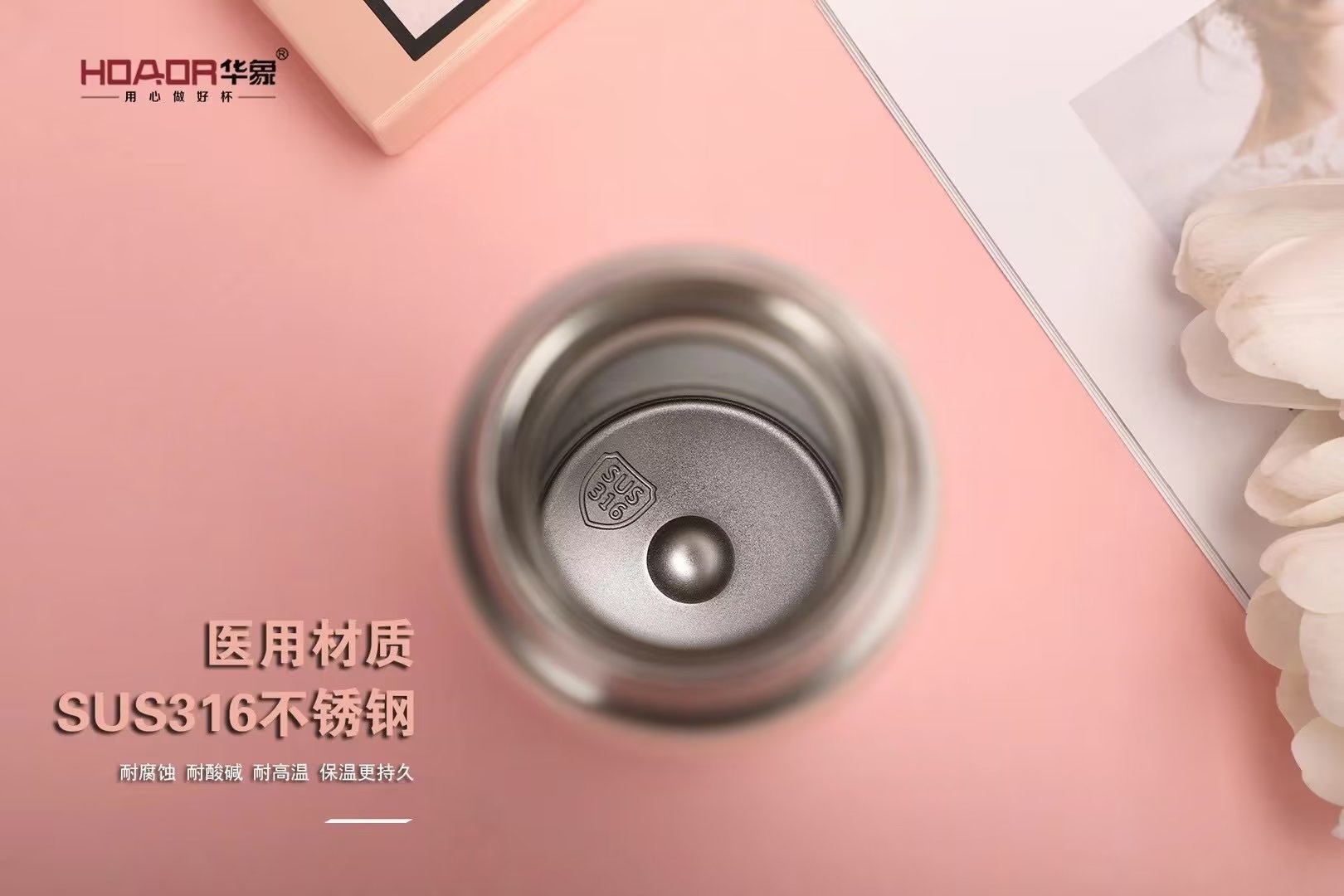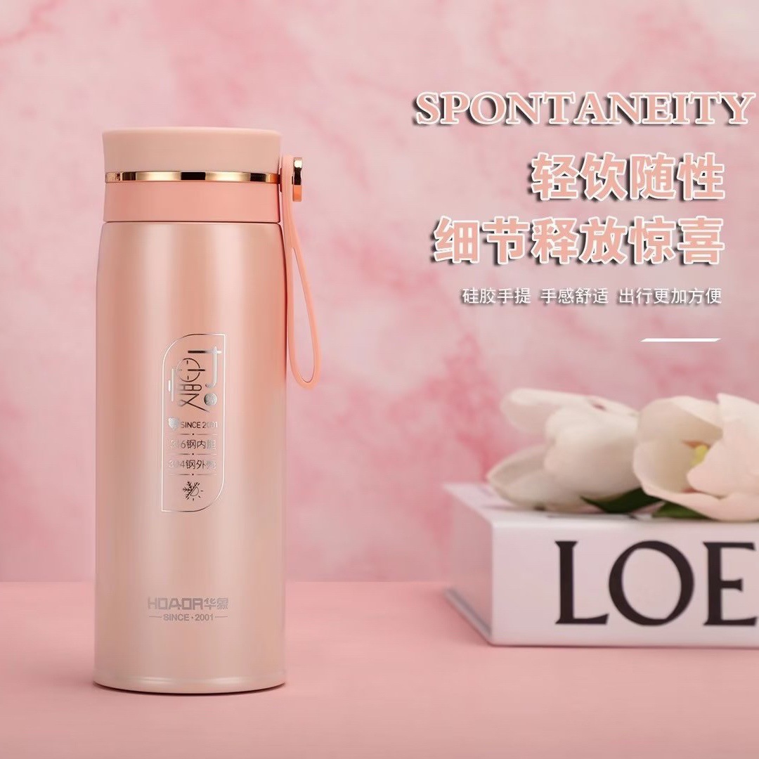 Huaxiang 보온병 컵 학생 간단한 휴대용 소녀 하트 인 귀여운 포켓 컵 316 스테인레스 스틸 티 컵스토어 가기