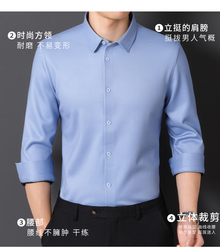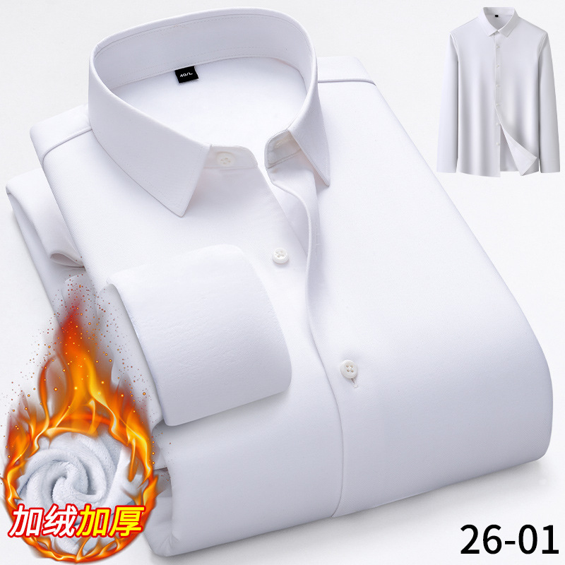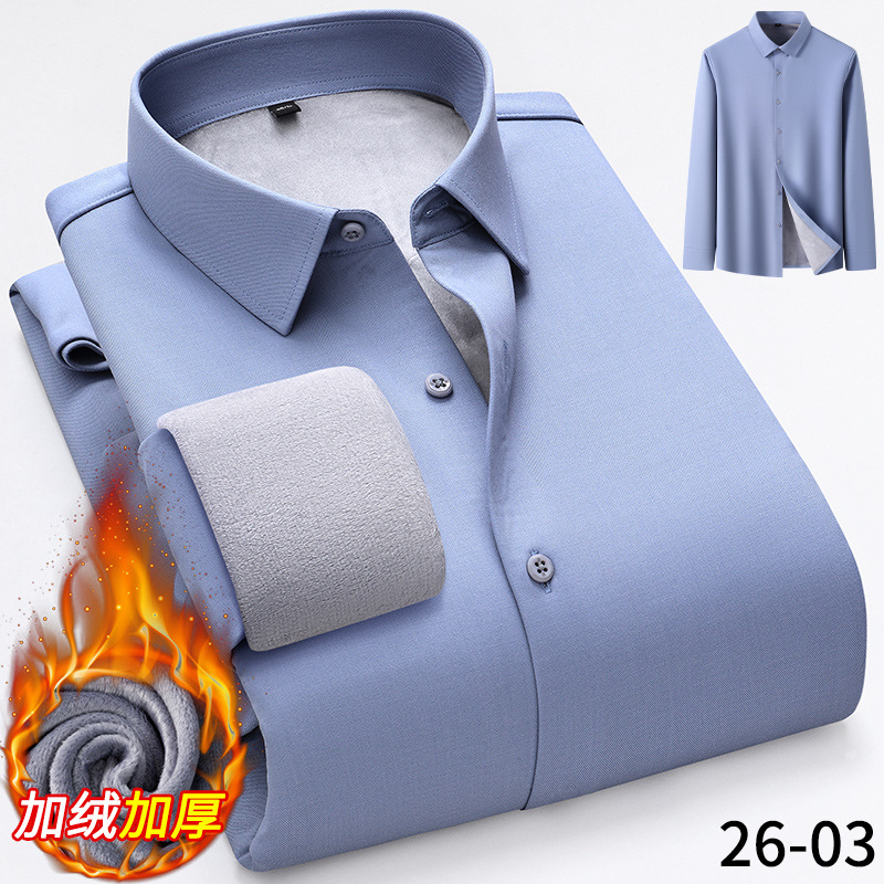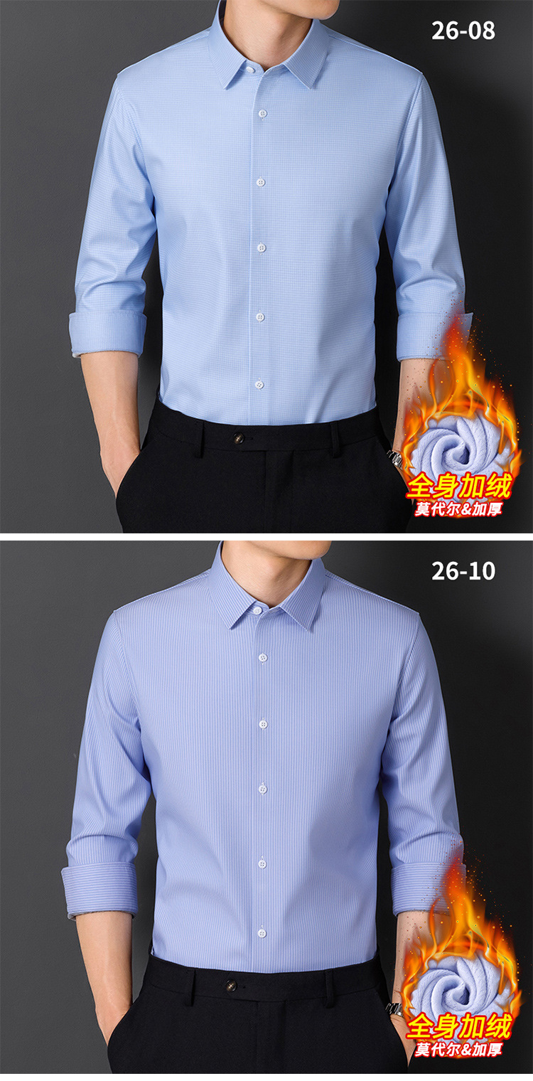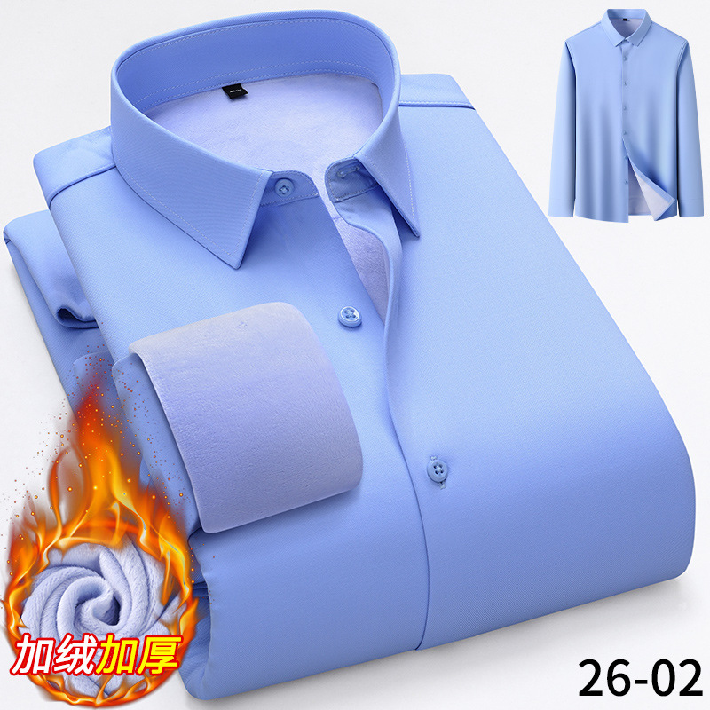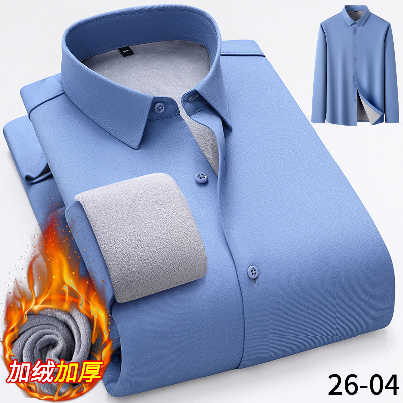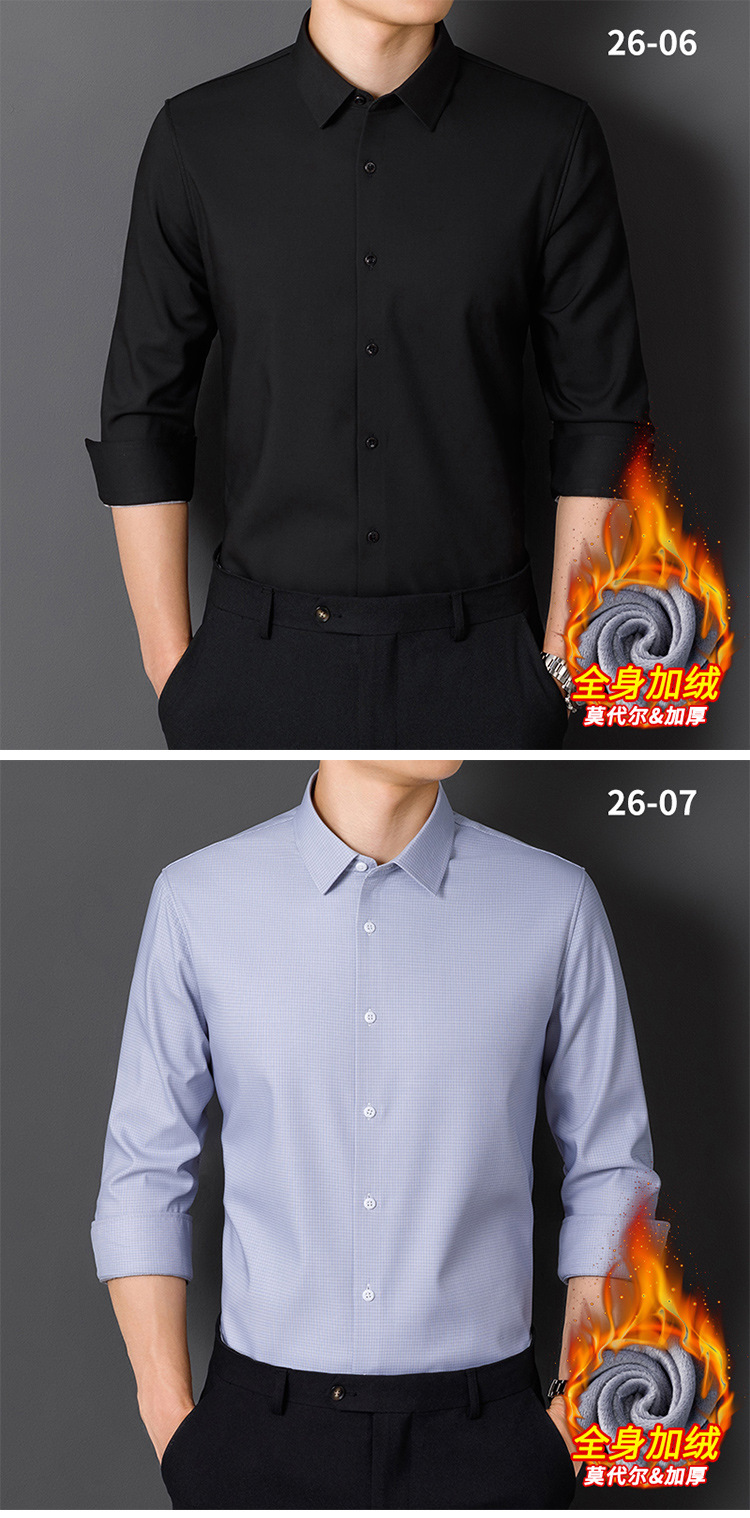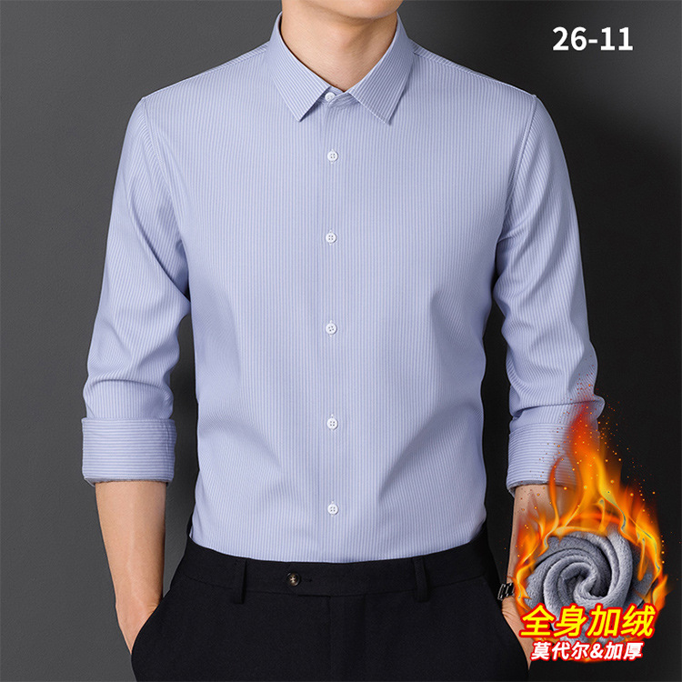 가을과 겨울 모달 남성 긴 소매 원활한 따뜻한 셔츠 단색 기모 캐주얼 비즈니스 셔츠 탄성 도구