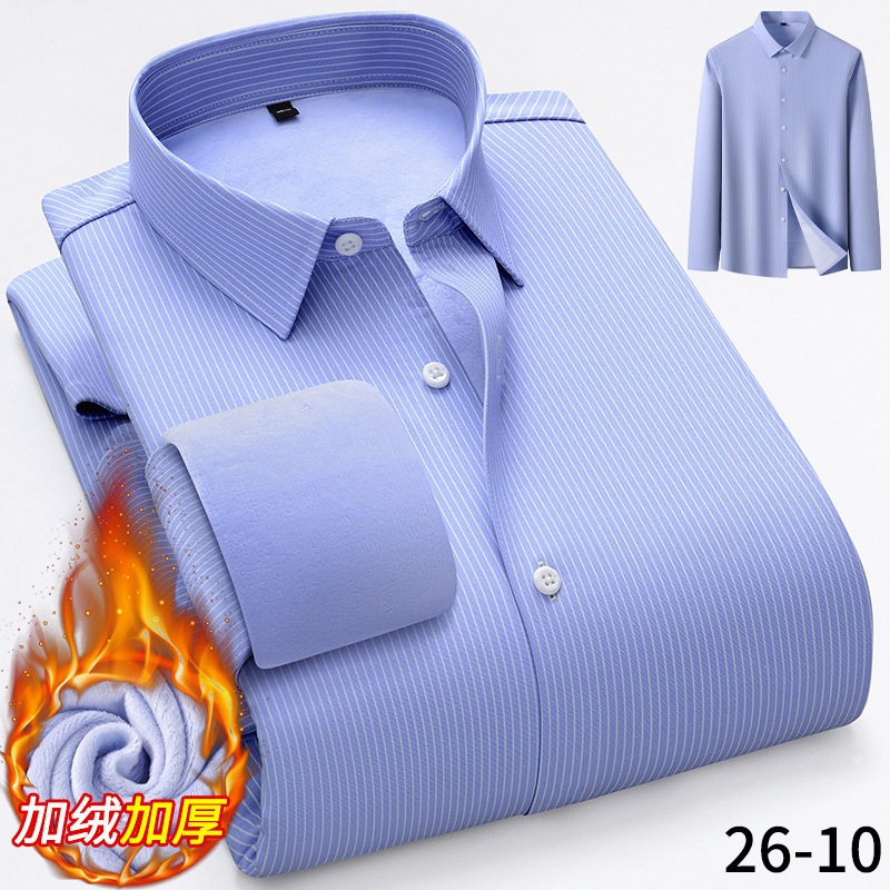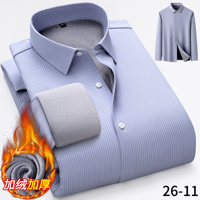 가을과 겨울 모달 남성 긴 소매 원활한 따뜻한 셔츠 단색 기모 캐주얼 비즈니스 셔츠 탄성 도구스토어 가기