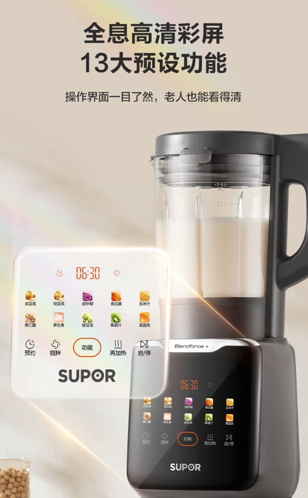 수포 벽 속보 기계 가정용 1.75L 예약 가능한 컬러 스크린 자동 두유 추출기 SPT309S스토어 가기