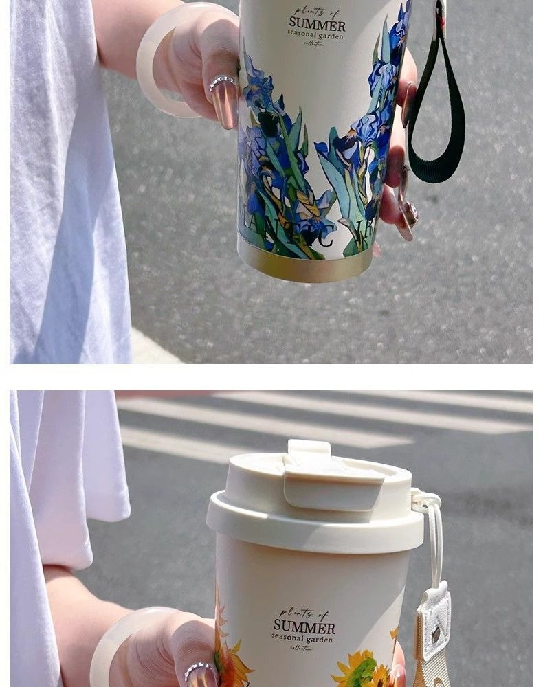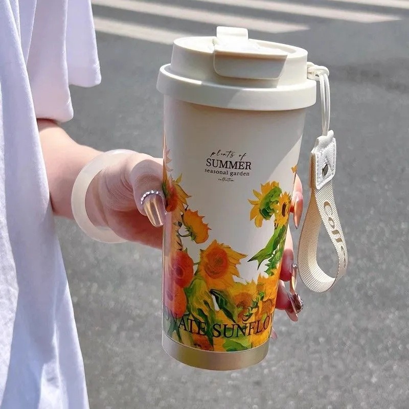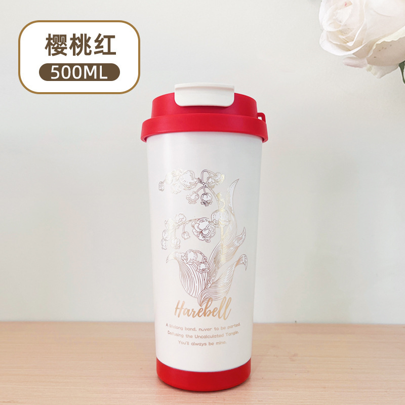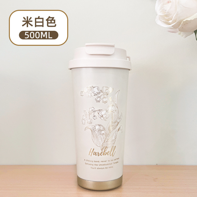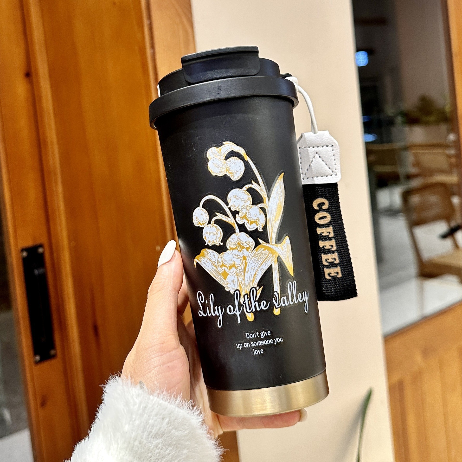 은방울꽃 커피컵 316 스테인리스 차량용 진공 보온 커피컵 고급스러운 디자인 이중 음용 럭셔리 워터컵 휴대용스토어 가기