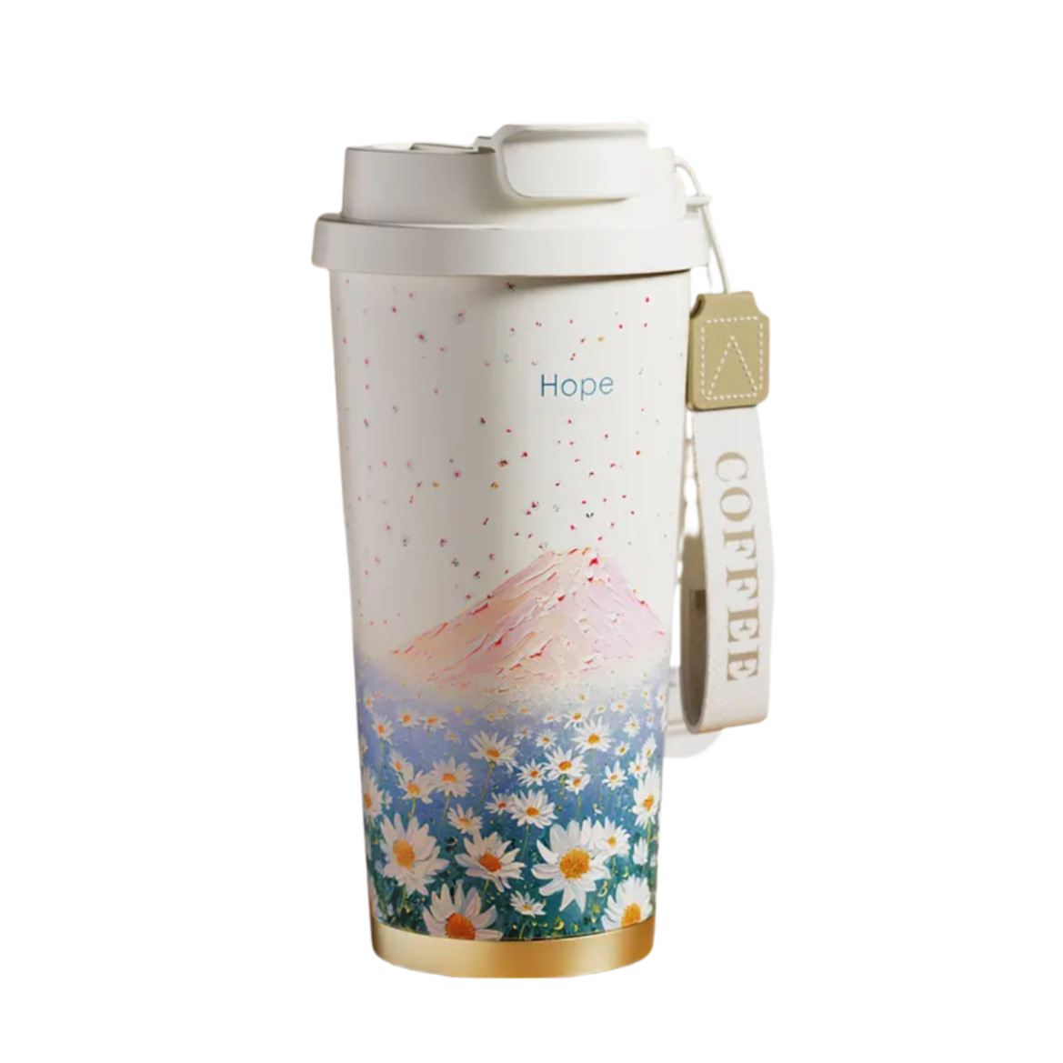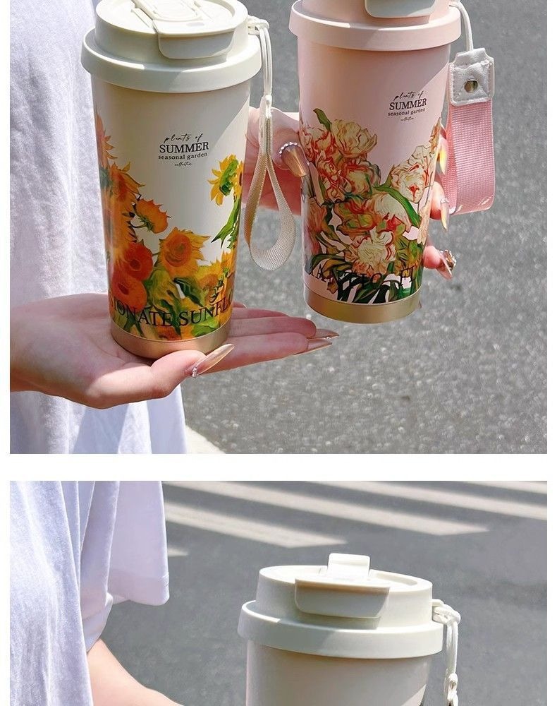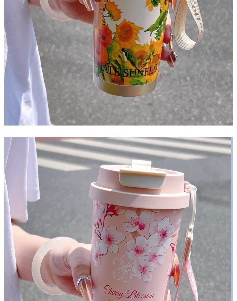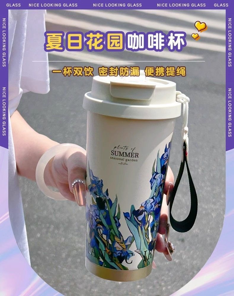 은방울꽃 커피컵 316 스테인리스 차량용 진공 보온 커피컵 고급스러운 디자인 이중 음용 럭셔리 워터컵 휴대용스토어 가기