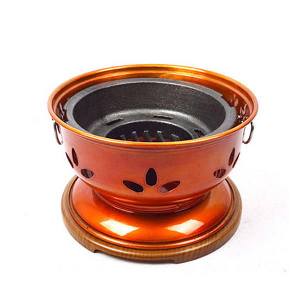 타오르는 주철 숯 분지 연기 배기 탁상용 바베큐 팬에 저항하는 일본식 숯 그릴 그릴 라운드 카본 그릴 그릴 그릴