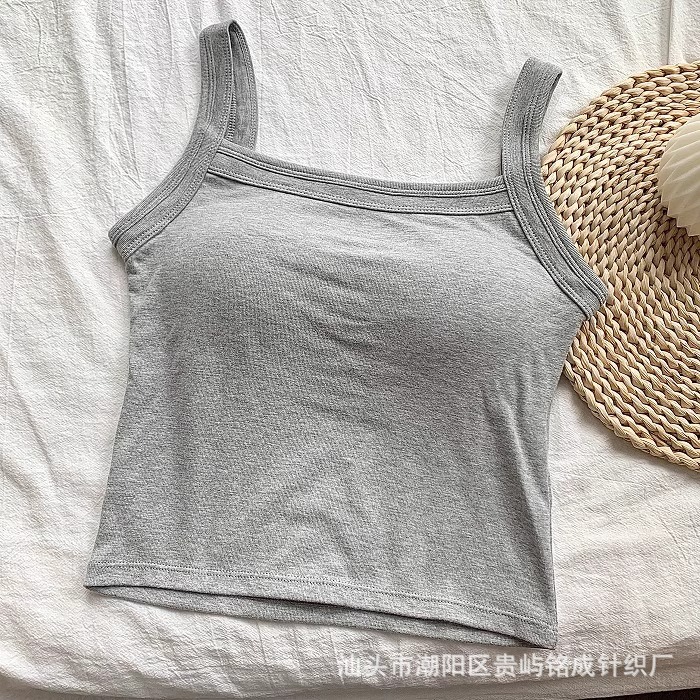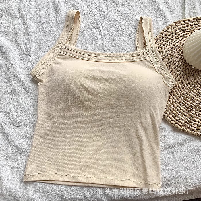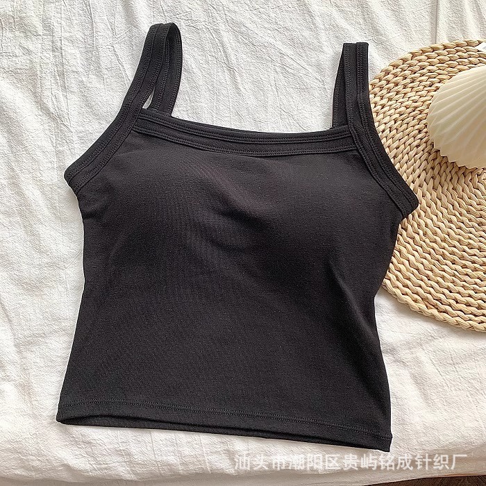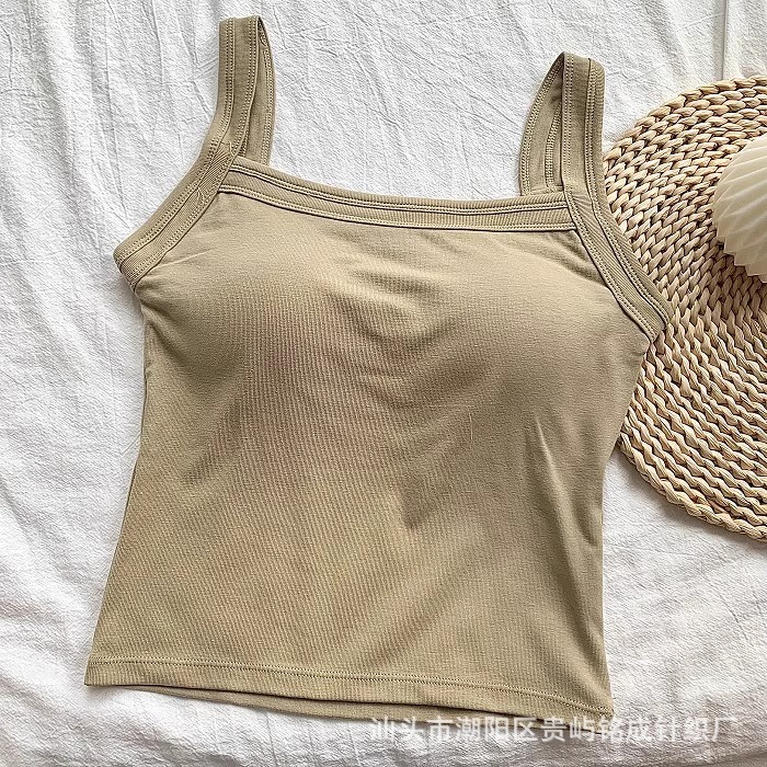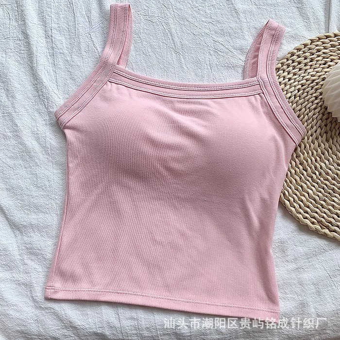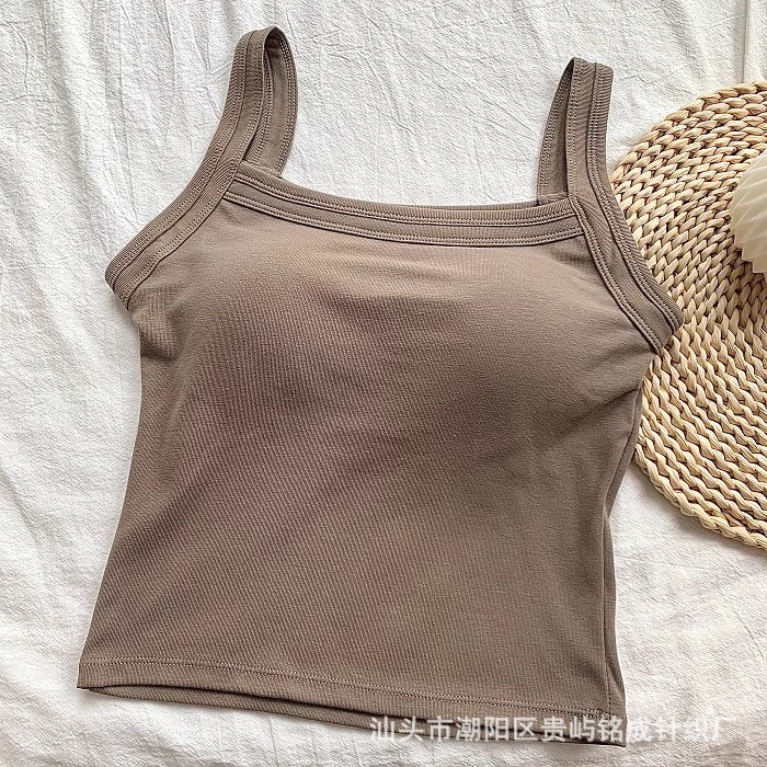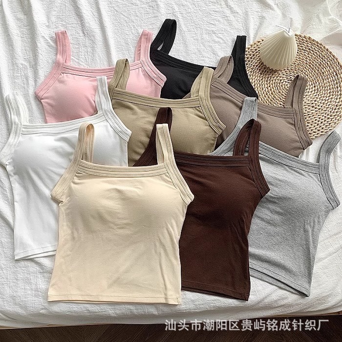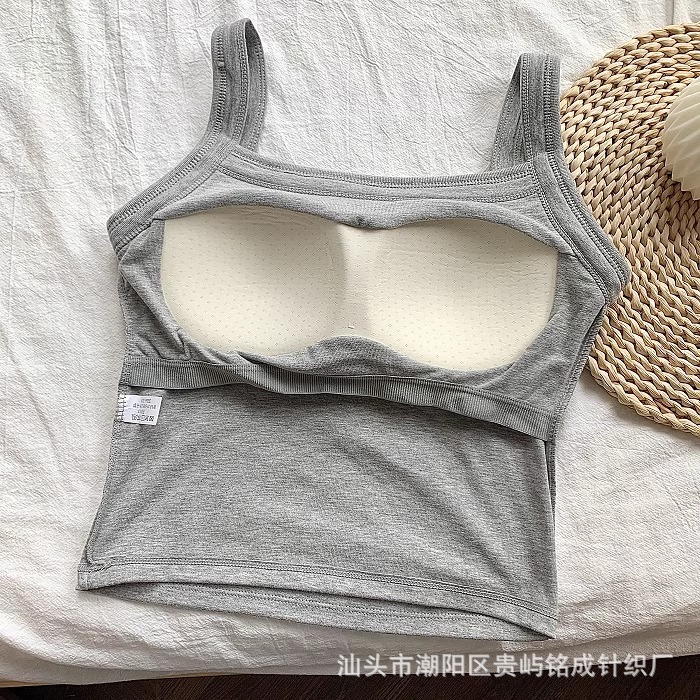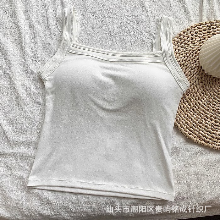 가을 2024 새로운 한국 스타일 기본 통근 가슴 패드 외부와 함께 올 매치 솔리드 컬러 베이스 조끼 여성을위한 아름다운 등 슬링