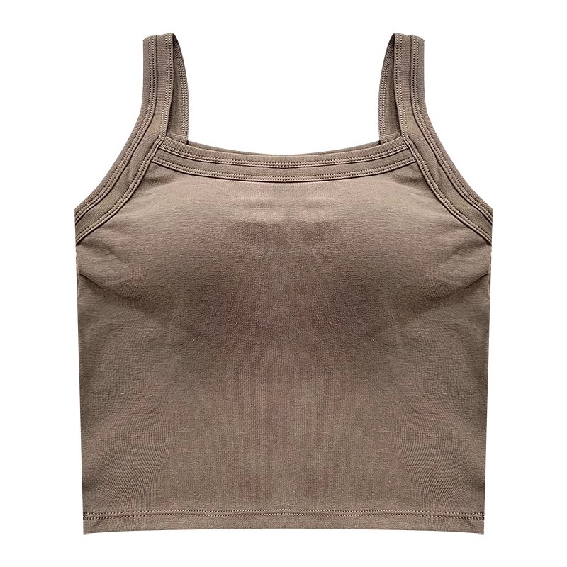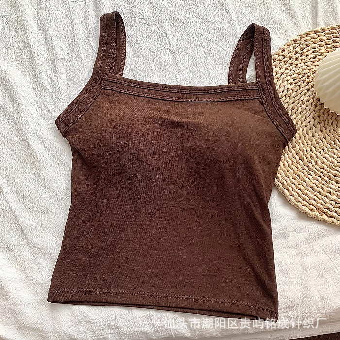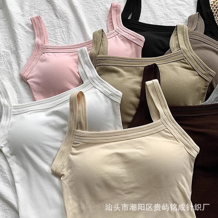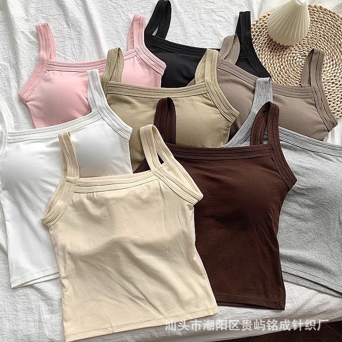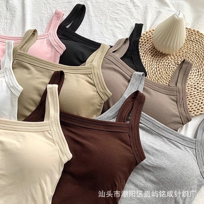 가을 2024 새로운 한국 스타일 기본 통근 가슴 패드 외부와 함께 올 매치 솔리드 컬러 베이스 조끼 여성을위한 아름다운 등 슬링스토어 가기