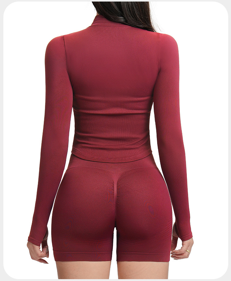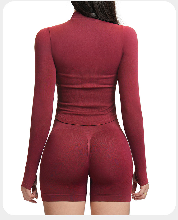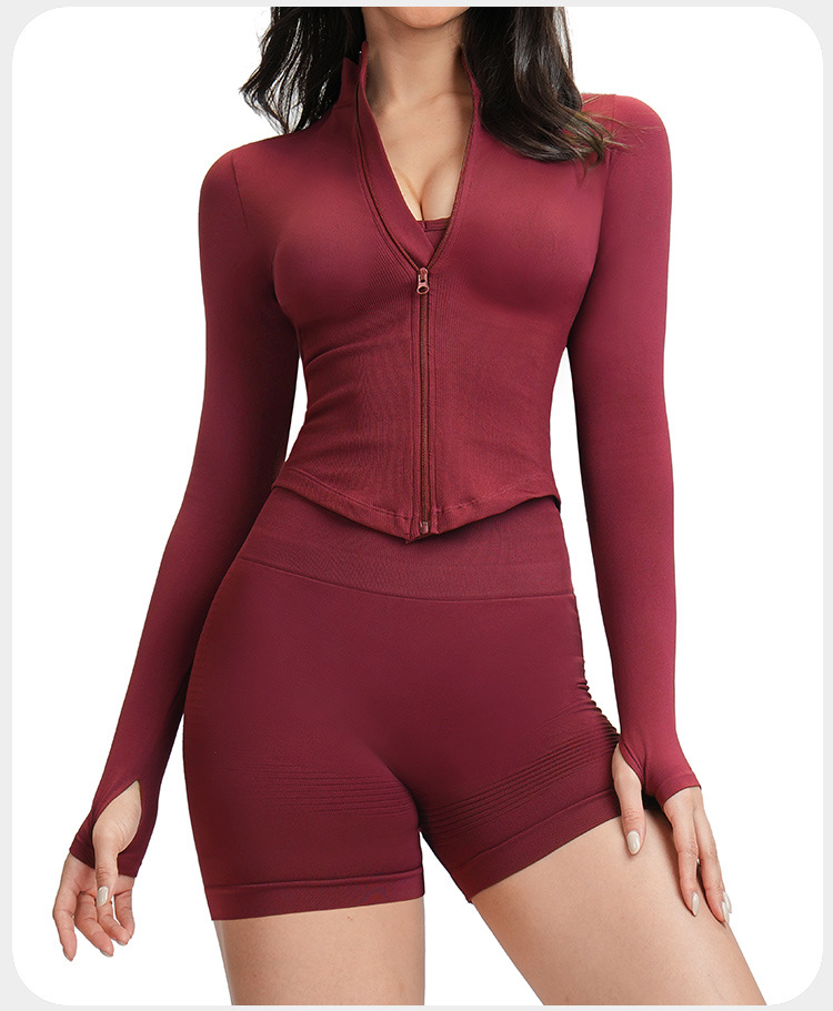 • 브라 + 숏팬츠 + 아우터 3종 세트 - 매실주 레드