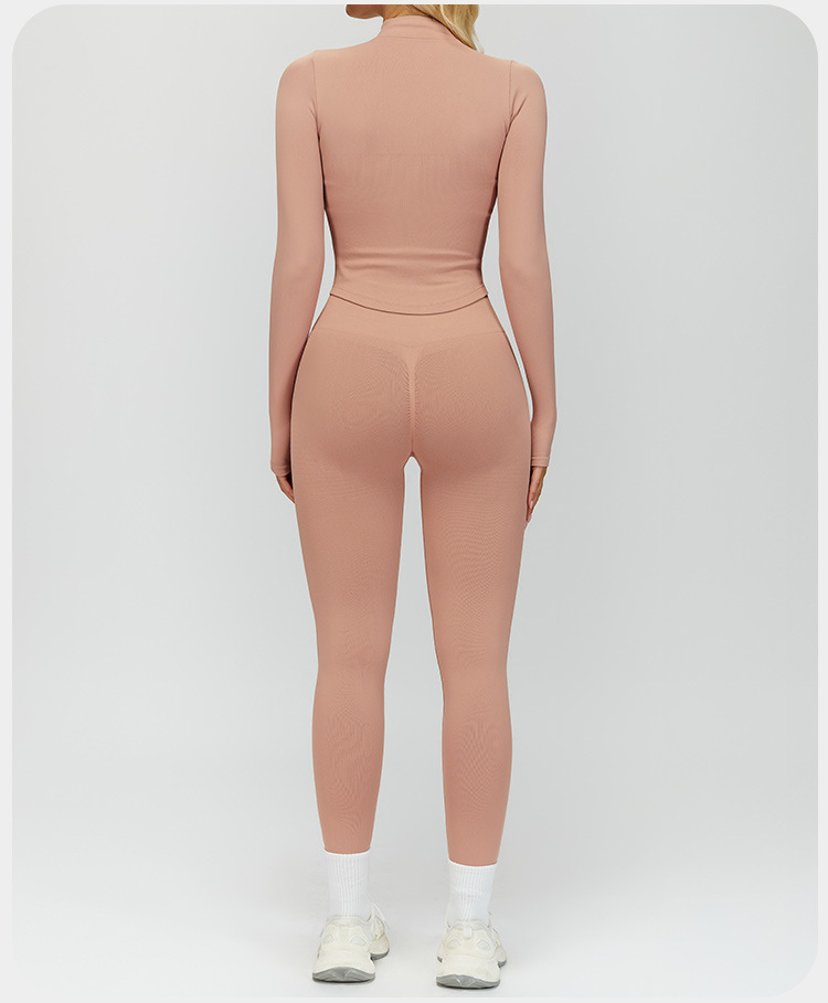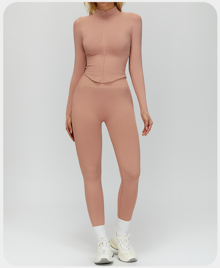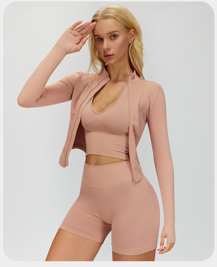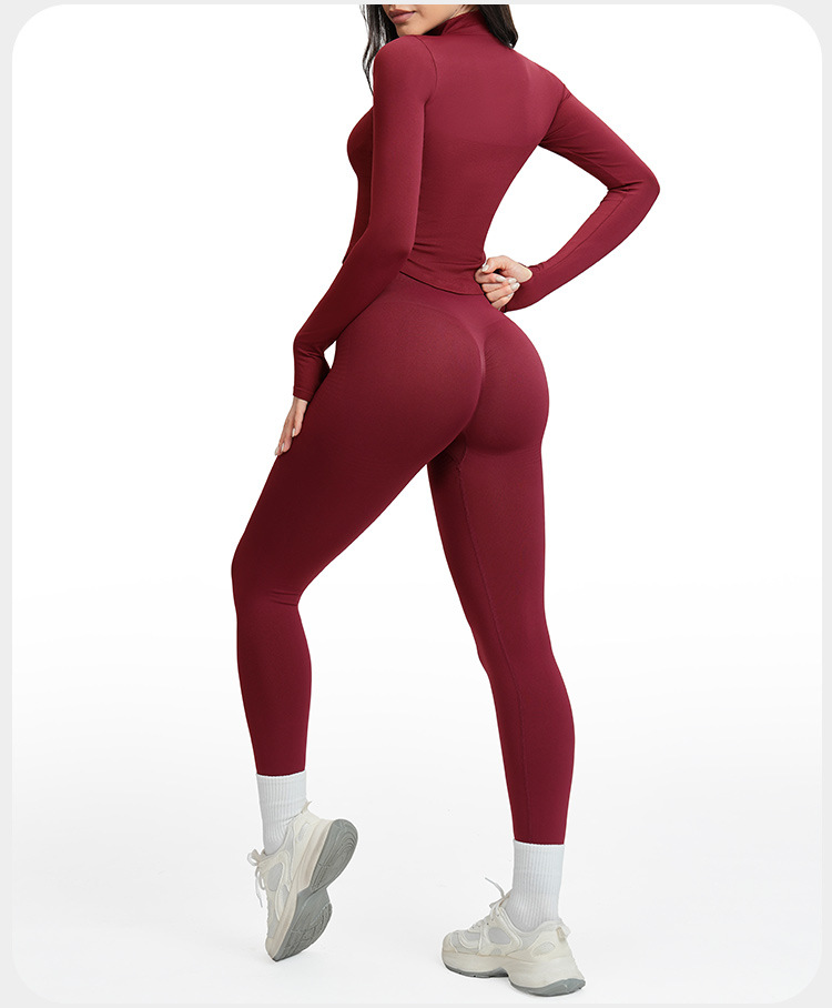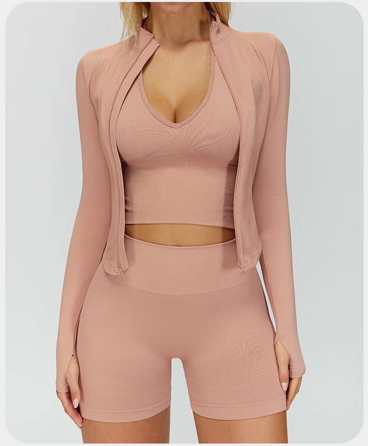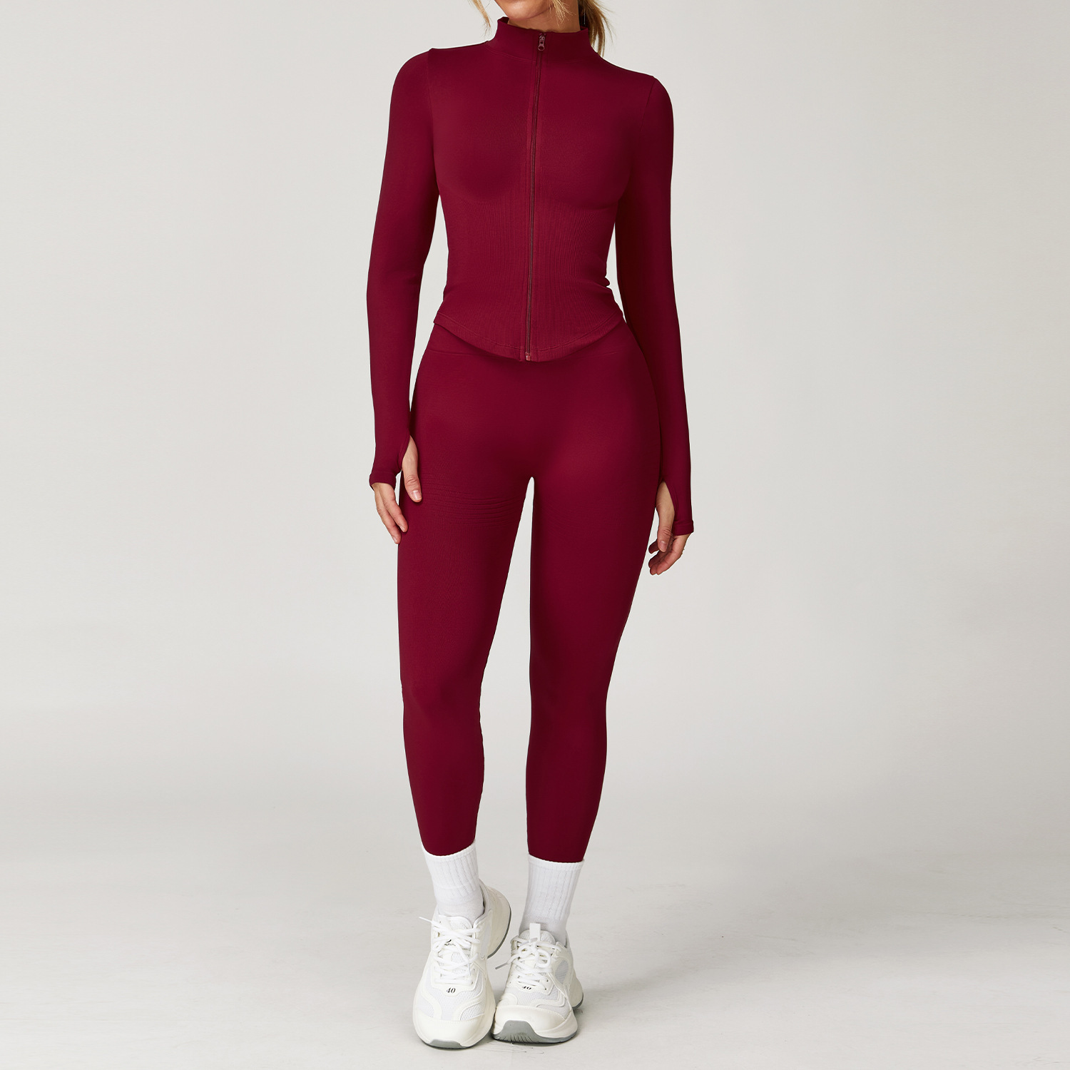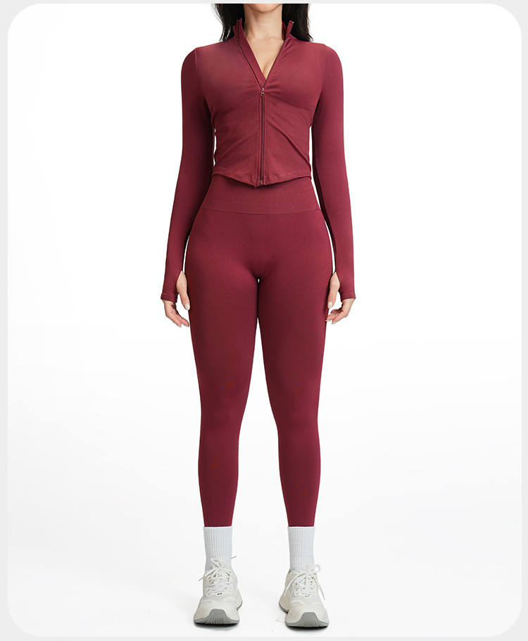 • 브라 + 긴바지 + 아우터 3종 세트 - 매실주색