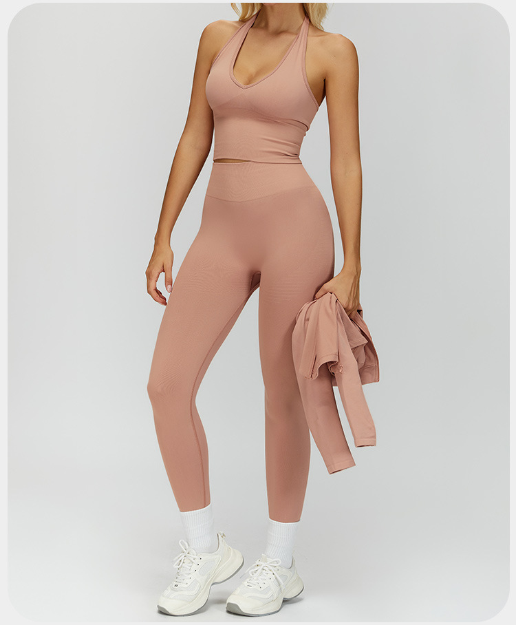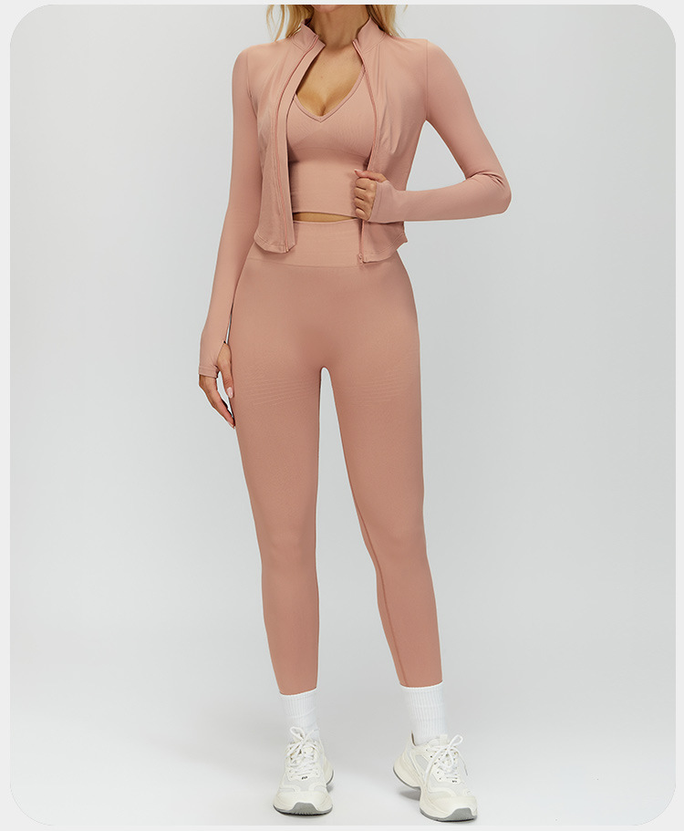 • 브라 + 긴바지 + 아우터 3종 세트 - 레트로 핑크