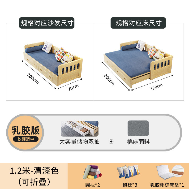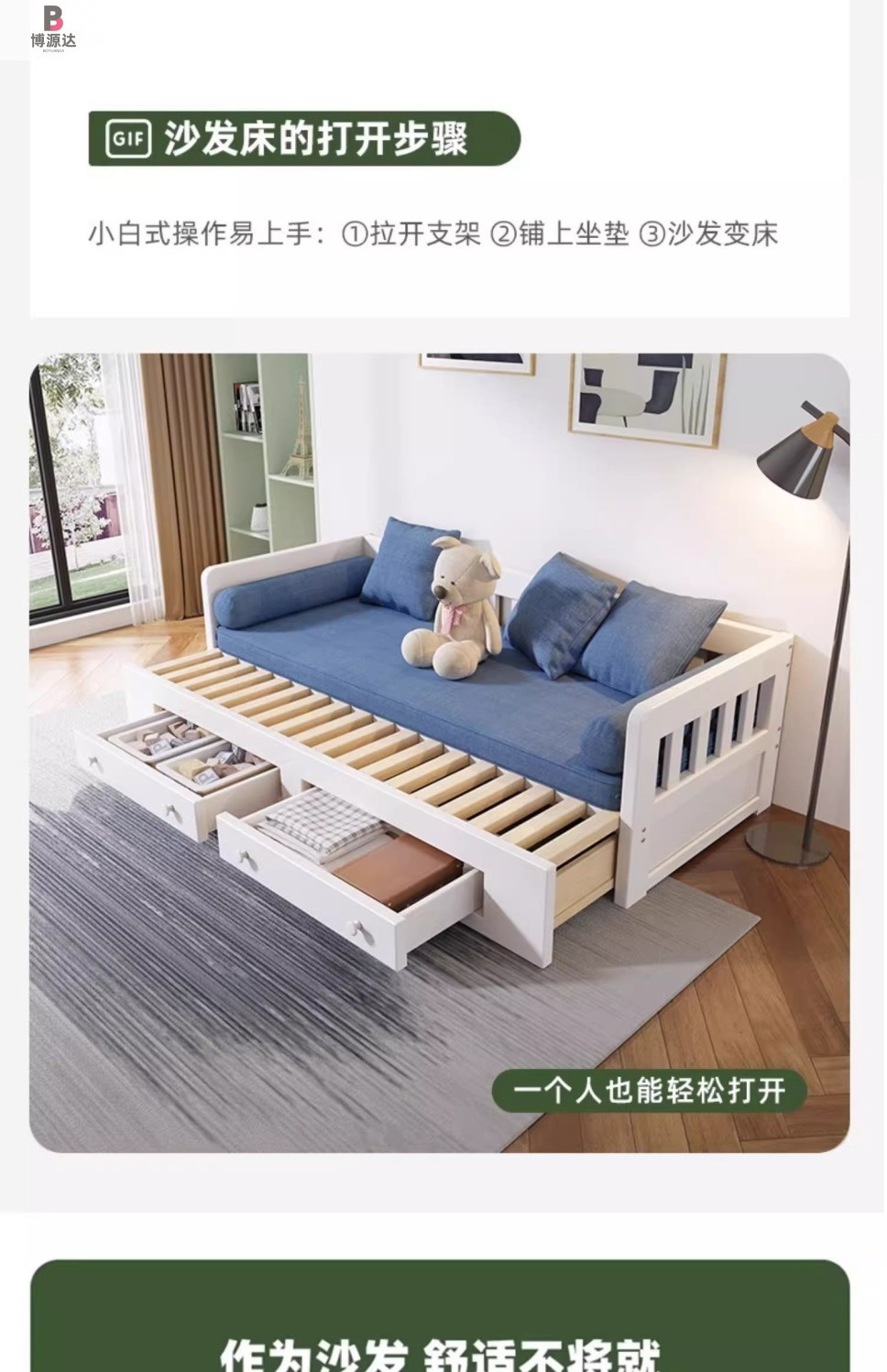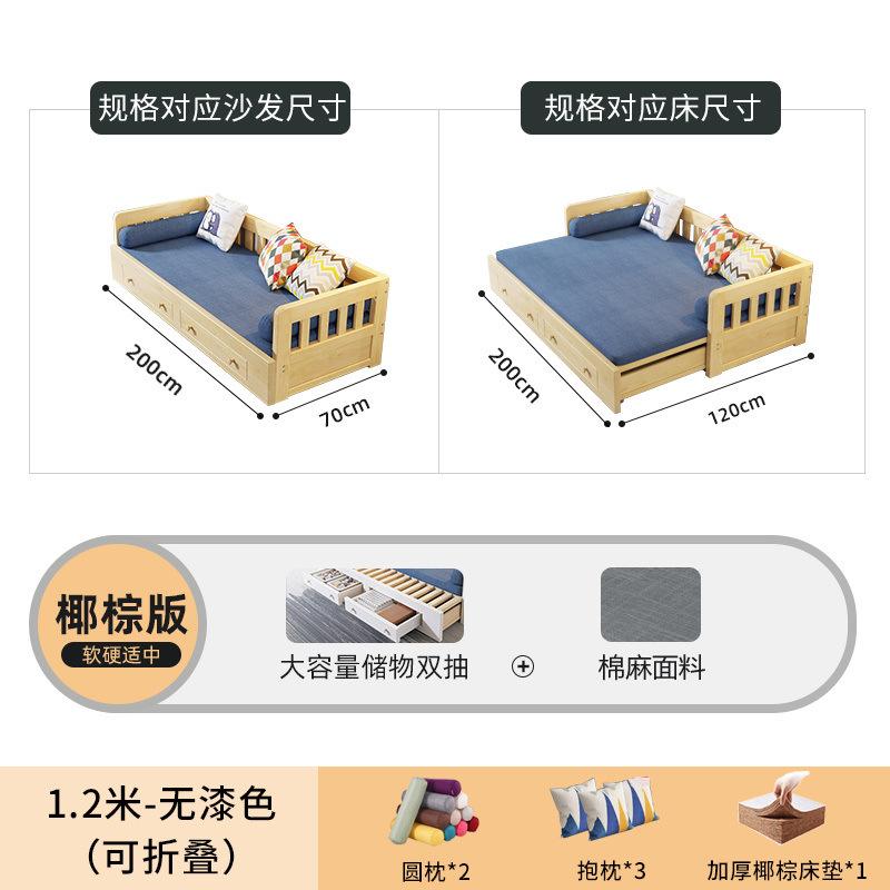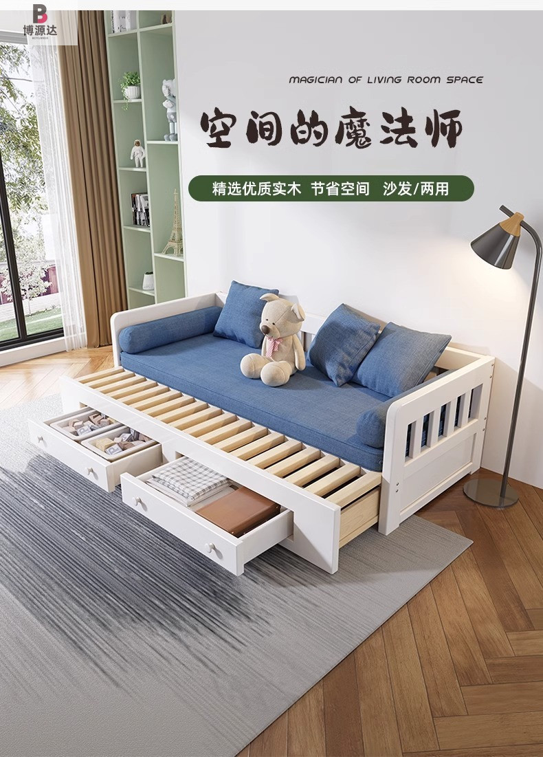 솔리드 우드 드로잉 소파 베드 소형 아파트 이중 목적 접이식 타다미 거실 다기능 싱글 더블 확장 침대스토어 가기