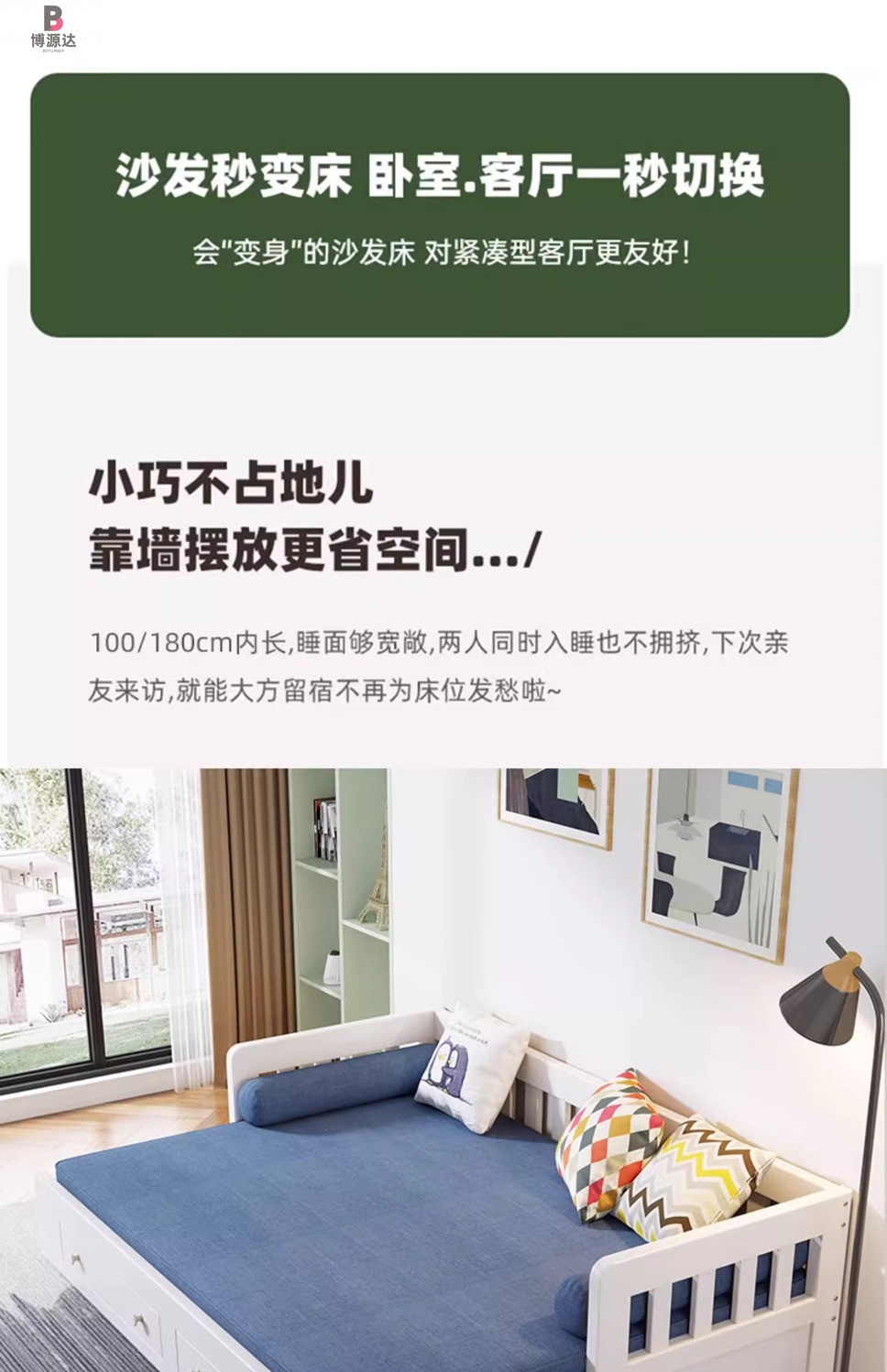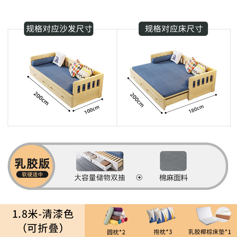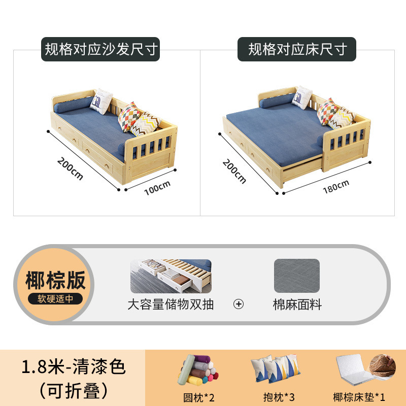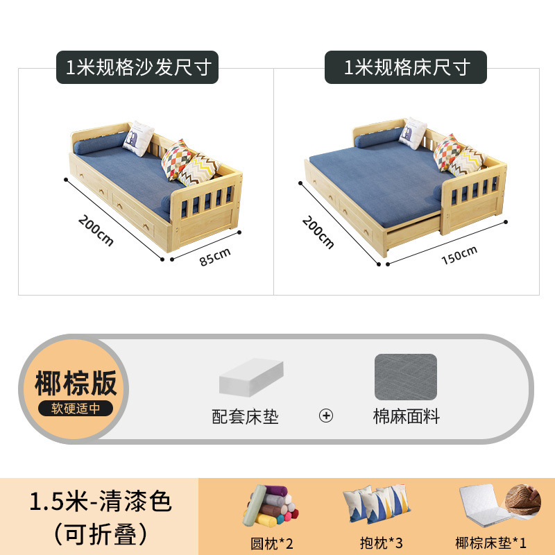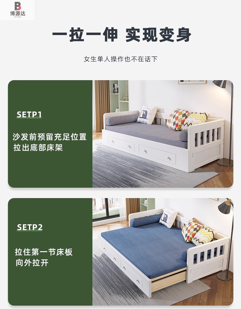 솔리드 우드 드로잉 소파 베드 소형 아파트 이중 목적 접이식 타다미 거실 다기능 싱글 더블 확장 침대스토어 가기
