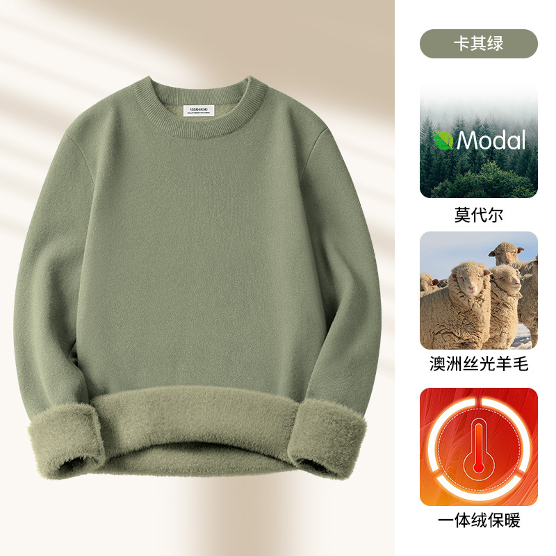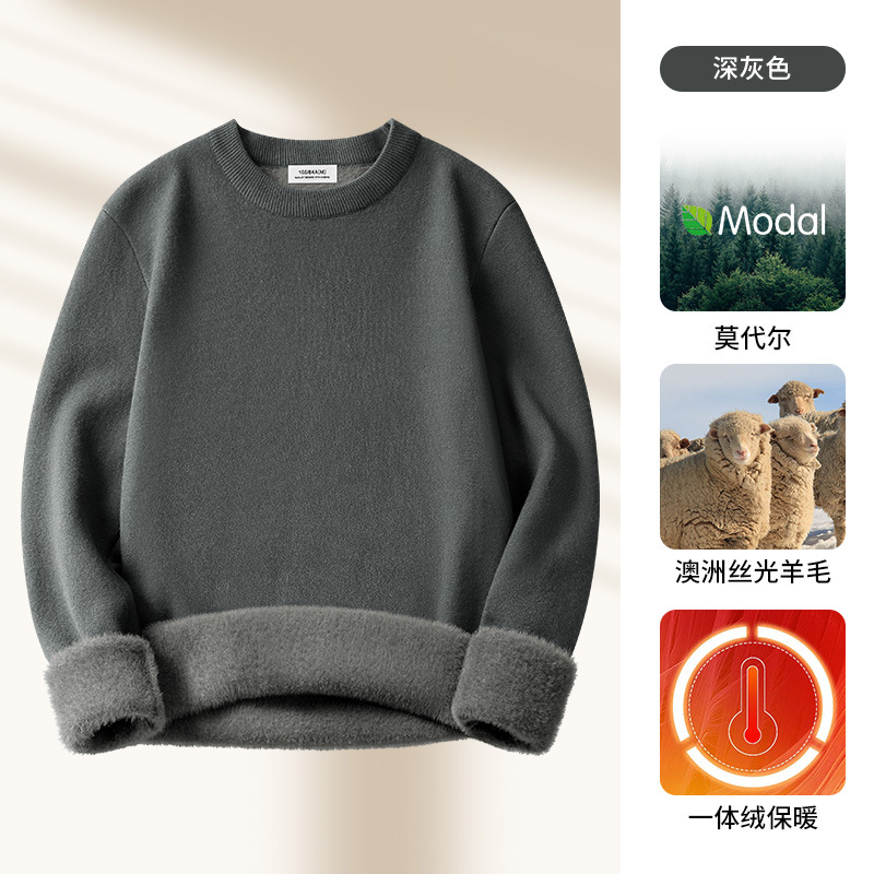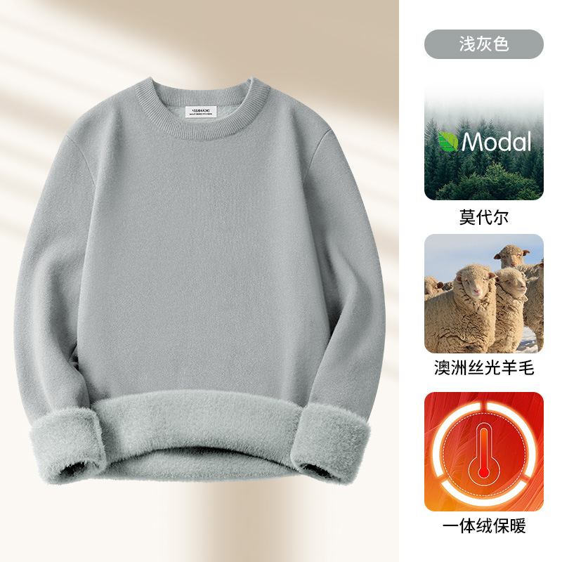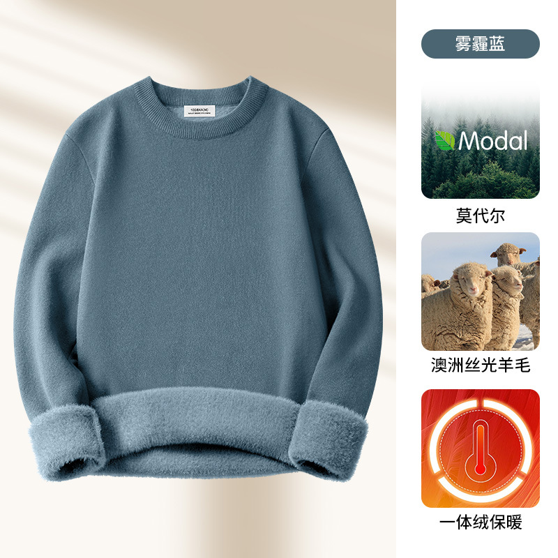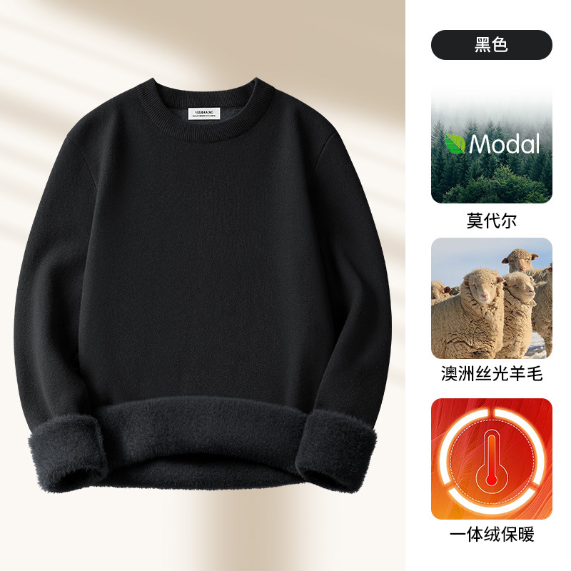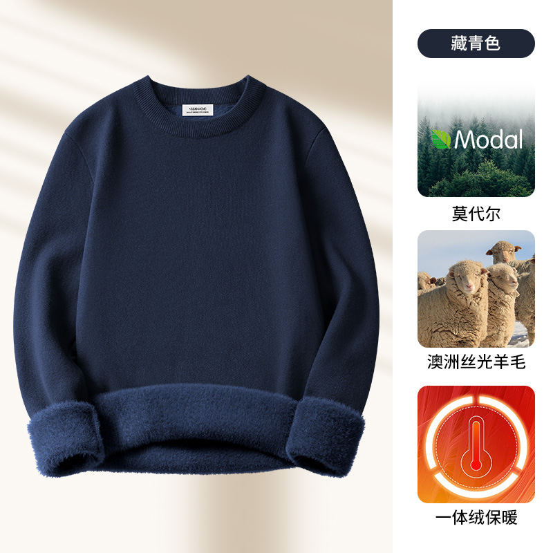 원피스 벨벳 간단한 라운드 넥 남자 스웨터 가을과 겨울 기모 두꺼운 따뜻한 모달 니트 베이스 셔츠