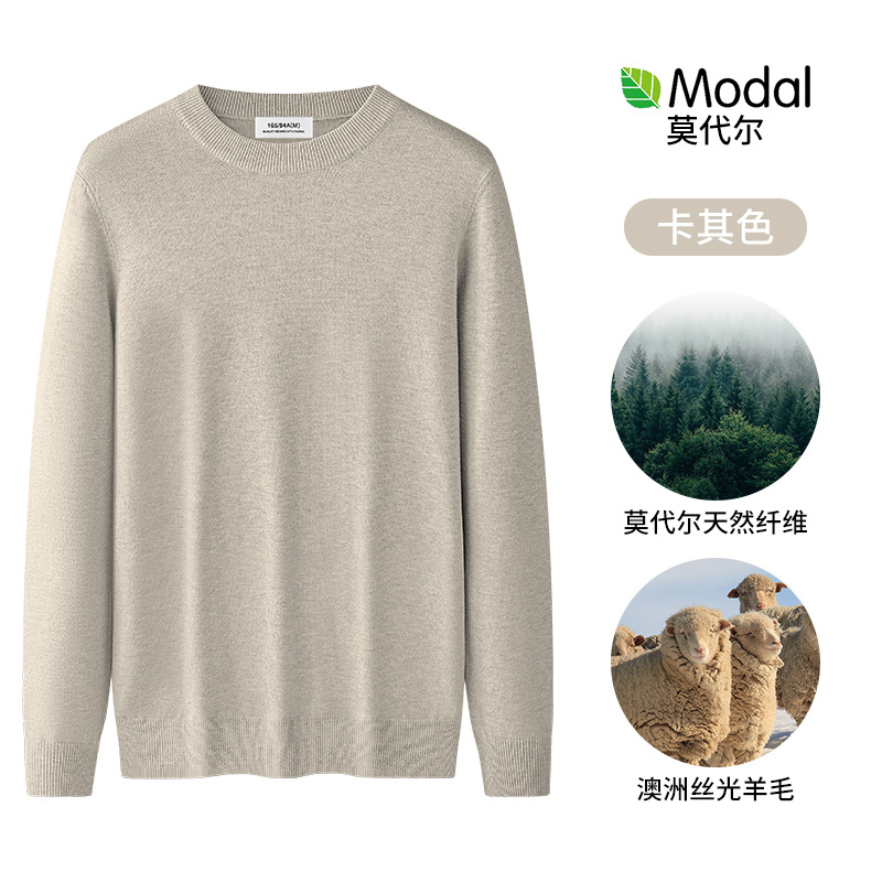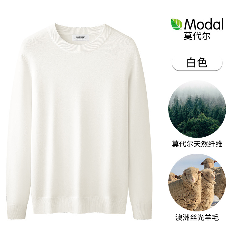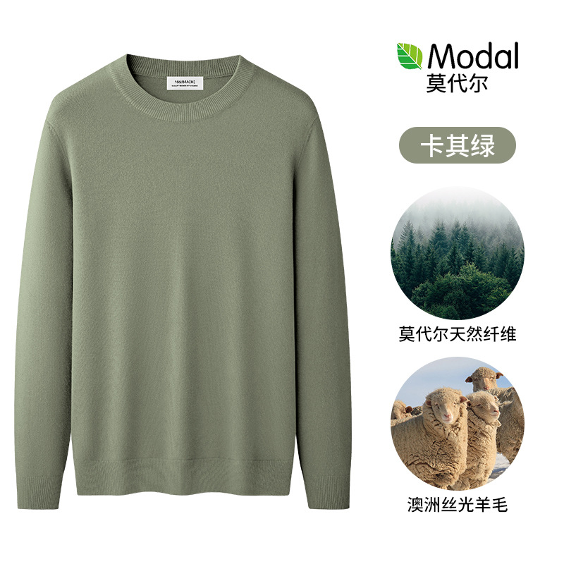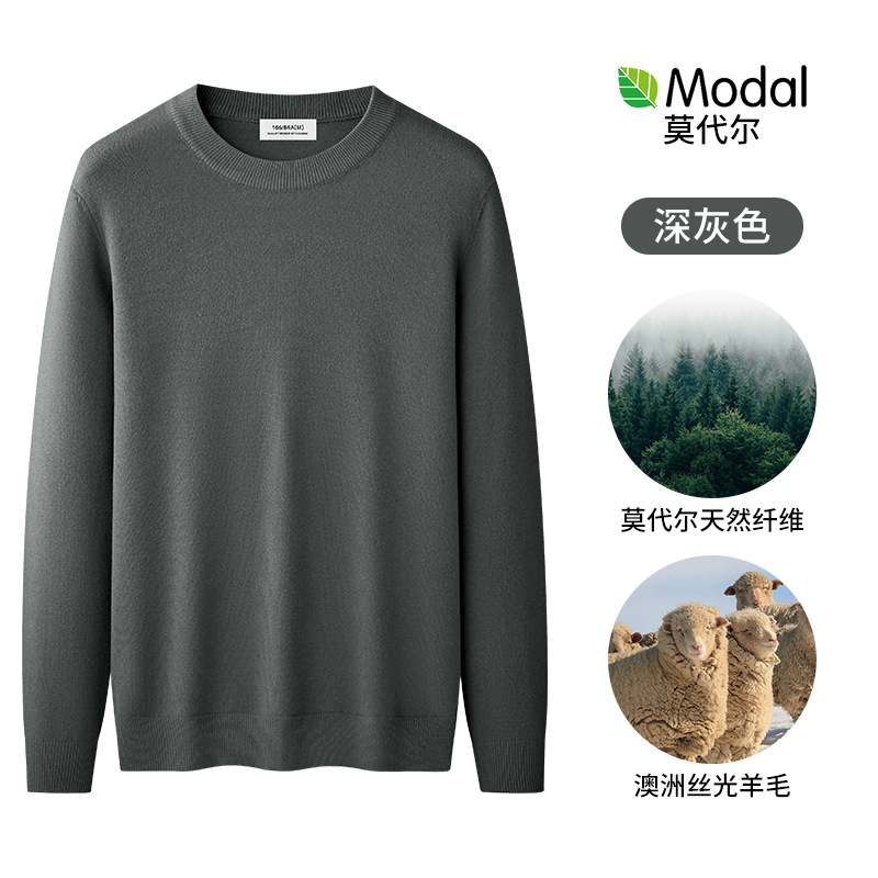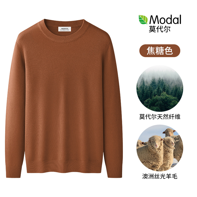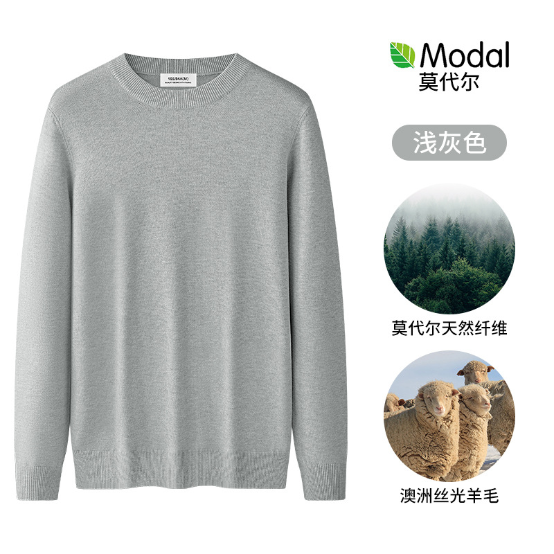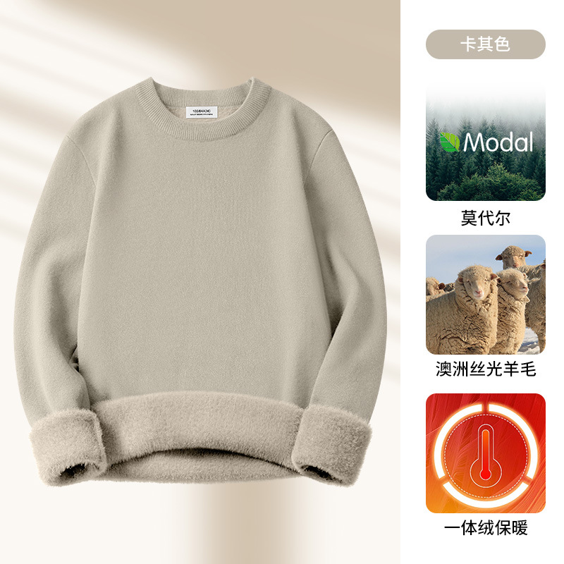 원피스 벨벳 간단한 라운드 넥 남자 스웨터 가을과 겨울 기모 두꺼운 따뜻한 모달 니트 베이스 셔츠