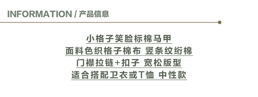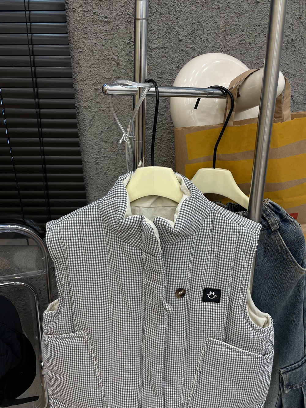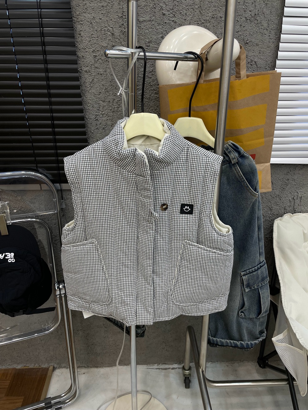 작은 격자 무늬 스마일리 라벨 코튼 조끼 재킷 2024 겨울 새 소년과 소녀 올 매치 코튼 조끼 트렌디 한 외복스토어 가기
