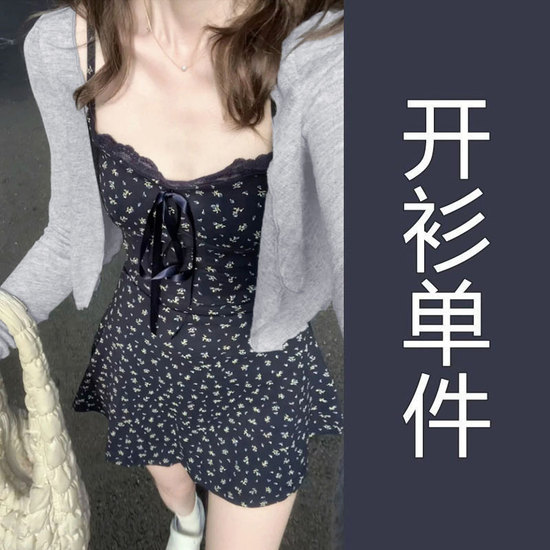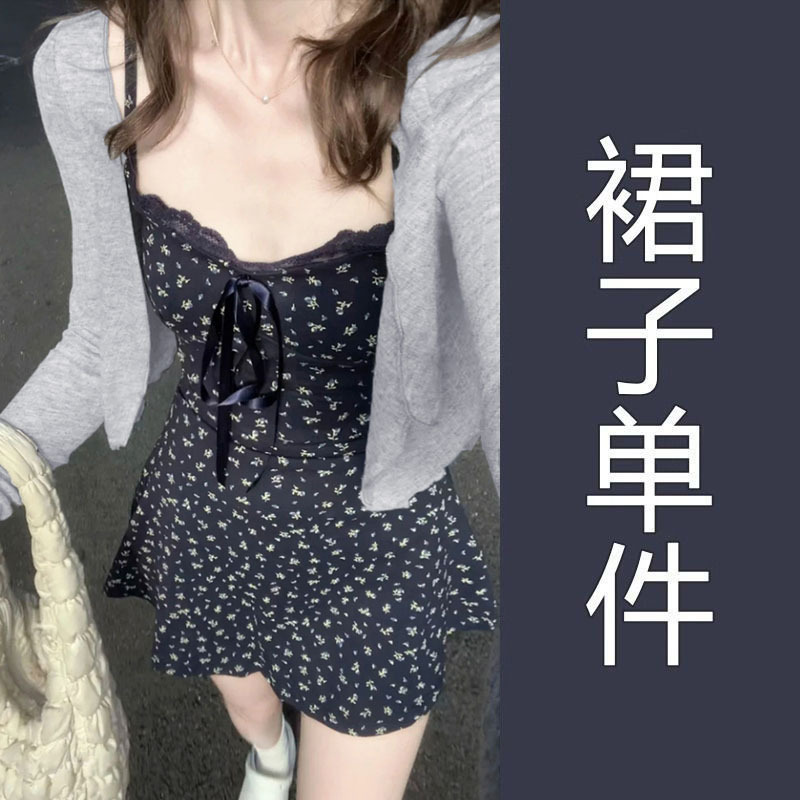 프랑스 블루 꽃 슬링 원피스 여성의 가을 새로운 하이 엔드 센스 작은 달콤한 향신료 소녀 짧은 치마 세트스토어 가기