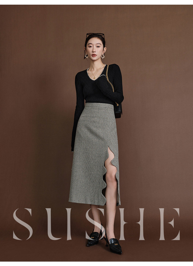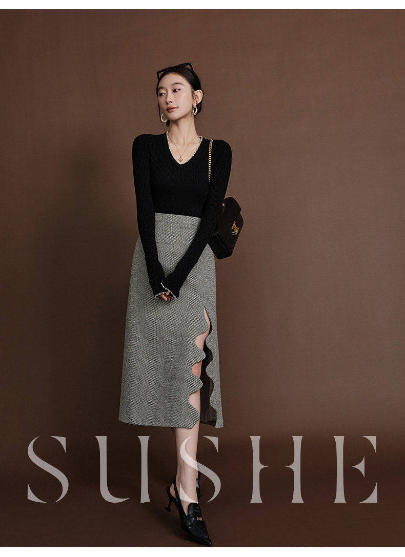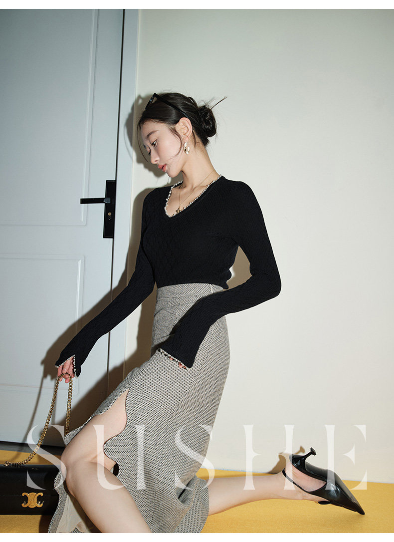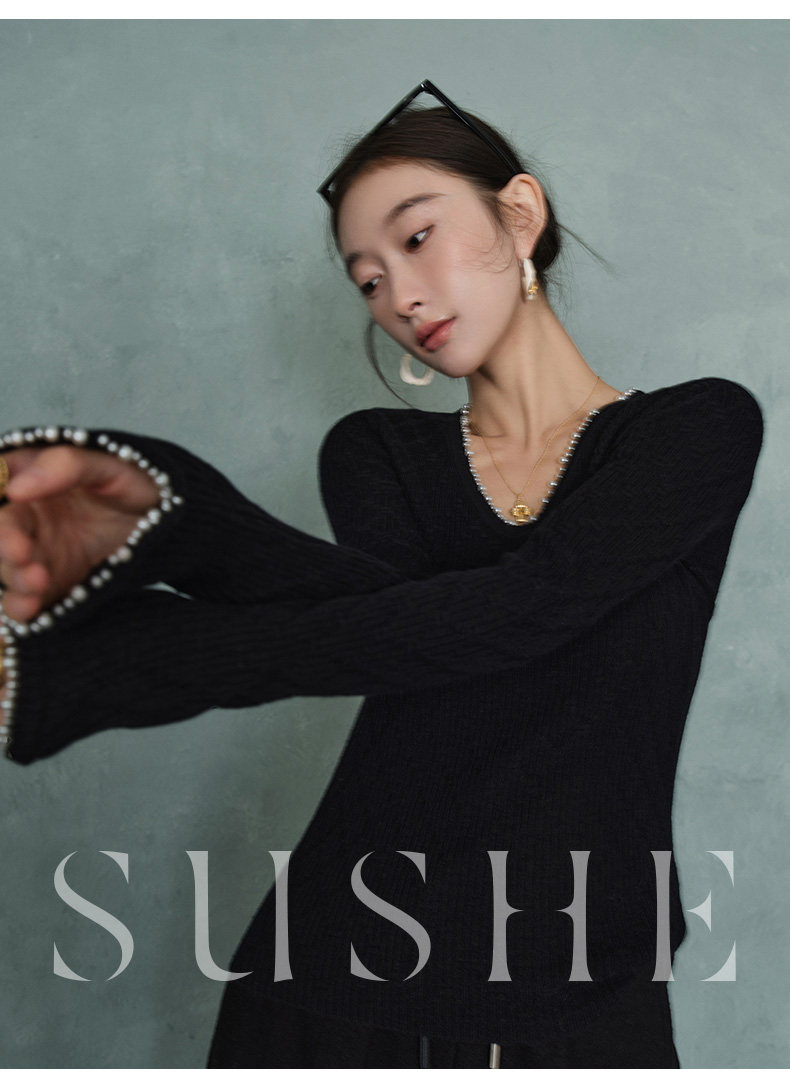진야 의류 공장/2026 진주 블랙 브이넥 이너웨어 레트로 슬림핏 울 니트 여성용 봄스토어 가기